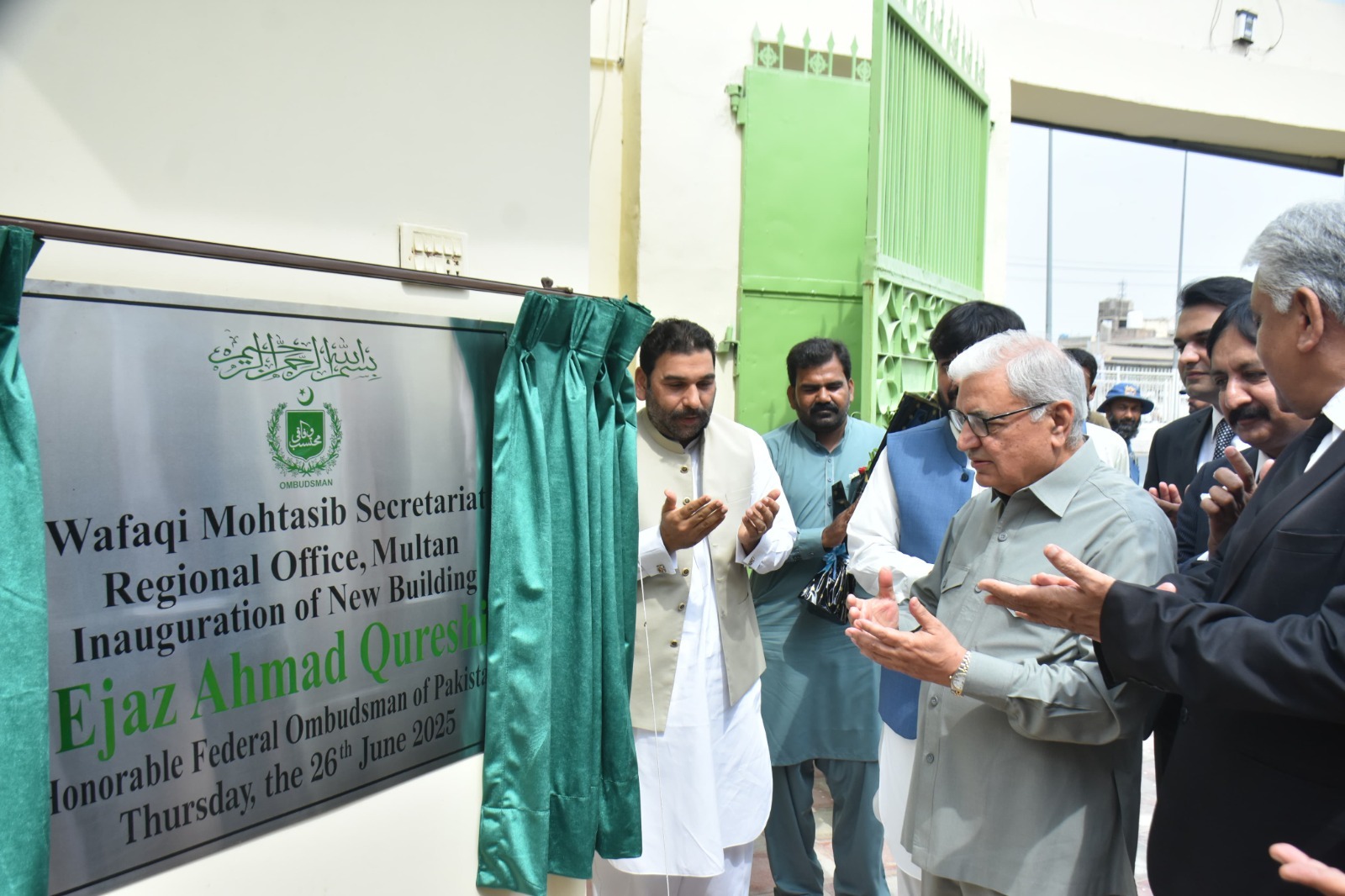 وفاقی محتسب اعجا زاحمد قریشی نے اپنے ادارے کے علا قائی دفتر ملتان کی نئی بلڈ نگ کا افتتاح کر دیا۔ افتتا حی تقریب میں سرکاری افسران، سول سوسائٹی کے اہم افراد اور میڈ یا کے نمائندوں نے بڑ ی تعداد میں شرکت کی۔وفاقی محتسب نے افتتاحی تقریب سے خطاب کر تے ہو ئے سرکاری افسروں پر زور دیا کہ وفاقی محتسب کے فیصلوں پر عملد رآ مد کو یقینی بنائیں تاکہ شکایت کنندگان کو فوری ریلیف مل سکے۔ انہوں نے کہا کہ وفاقی محتسب سیکرٹیریٹ غر یبوں کی عدا لت ہے اور اس ادارے کا مقصد نادار اور پسما ندہ طبقے کی دادرسی کرنا ہے، ہم دو سو سے زائد وفاقی سر کاری اداروں کے خلاف شکایات کے ازالے کے لئے پر عزم ہیں۔ سرکاری افسران کو عوام الناس کی شکایات کے ازالے کے لئے اپنی تمام تر کوششیں بروئے کار لانا چاہئیں۔ وفاقی محتسب نے اپنے دورہ کے دوران وفاقی محتسب کے علا قائی دفا تر ملتان، بہاولپور اور ڈیرہ غا زی خان کے افسران اور وفاقی اداروں کے مقا می سر براہان کے ساتھ ایک اجلا س کی صدا رت بھی کی۔ انہوں نے افسران پر زور دیا کہ وہ عوام کی خد مت کو شعار بنا ئیں اور وفاقی محتسب کے فیصلوں پر عملد رآمد کو یقینی بنائیں، بصورت دیگر ہمیں اپنے اختیارات استعمال کر نا پڑ یں گے۔ وفاقی محتسب نے اپنے خطاب کے دوران بتا یا کہ سال 2024 ء کے دوران عوامی شکایات میں ریکا رڈ اضا فہ ہوا، جس کی وجہ یہ ہے کہ وفاقی محتسب کے ادارے کی پہنچ اور رسا ئی میں مسلسل اضا فہ ہو رہا ہے، انہوں نے کہا کہ گز شتہ چند ما ہ میں مظفرآباد(آزاد جموں و کشمیر)، گلگت بلتستان، میر پور خاص، ساہیوال اور ڈیرہ غا زی خان میں نئے علاقائی دفا تر قا ئم کئے گئے ہیں جس کے بعد ملک بھر کے26 شہروں میں یہ ادارہ عوام النا س کو سہولیات فرا ہم کر رہا ہے۔ افتتاحی تقریب میں وفاقی سرکاری اداروں کے مقا می سربراہان کے علا وہ میڈیا اور سول سوسا ئٹی کے کثیر افراد نے شر کت کی۔ وفاقی محتسب نے میڈ یا سے گفتگو کر تے ہو ئے کہا کہ گذشتہ برس دولا کھ 26 ہزار372 شکایات آئیں اور دو لا کھ 23ہزار198 شکا یات کے فیصلے کئے گئے، 93.21 فیصد فیصلوں پر عملد رآ مد بھی ہو گیا۔انہوں نے کہا کہ عوام الناس کو ان کے گھر کی دہلیز پر انصا ف فراہم کر نے کے لئے ملک بھر میں 126کھلی کچہر یاں منعقد کی گئیں۔او سی آ ر پروگرام کے تحت 171 دورے کئے گئے، سر کا ری اداروں کے نظا م کی اصلا ح اور خد مات کو بہتر بنانے کے لئے وفاقی محتسب کی معائنہ ٹیموں نے سرکاری محکموں کے 79دورے کئے۔انہوں نے بتا یا کہ ہمارے انسوسٹی گیشن افسران ملک کے دور دراز علاقوں میں خودجاکر کھلی کچہر یاں منعقد کر کے عوام الناس کو ان کے گھر کے قر یب انصاف فراہم کررہے ہیں۔ وفاقی محتسب سیکر ٹیر یٹ غریبوں کی عدالت ہے جس کا مقصد نادار اور پسما ندہ طبقے کی شکا یات کی داد رسی کرناہے۔ وفاقی محتسب نے کہا کہ ہمارے افسران کی انتھک محنت، کھلی کچہریوں، معا ئنہ ٹیموں کے مختلف سرکا ری اداروں کے دوروں اور تنازعات کے غیررسمی حل جیسے پروگراموں کے باعث ہر سال عام لوگوں کی شکایات کی دادرسی میں اضافہ ہورہاہے۔انہوں نے بتا یا کہ وفاقی محتسب میں بیرون ملک پاکستانیوں اور بچوں کی شکایات کے لئے الگ سے شکایات کمشنرز مقرر کئے گئے ہیں۔