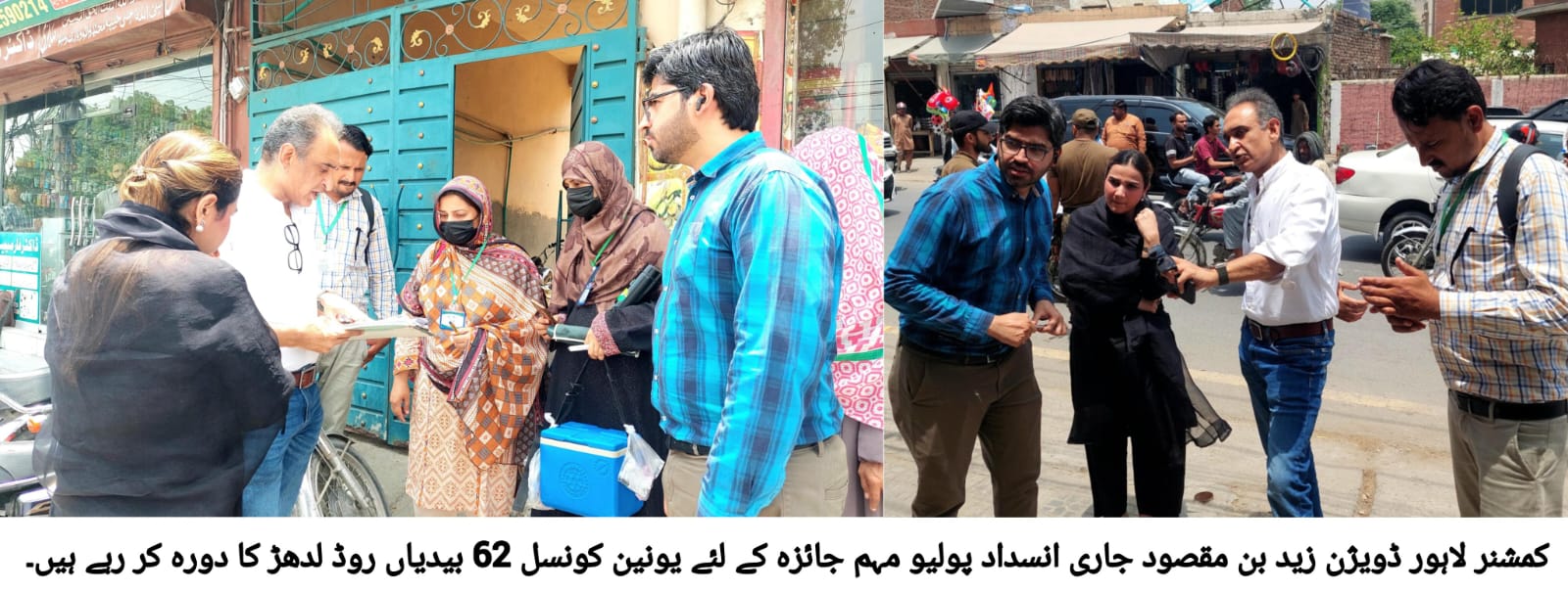 کمشنر لاہور زید بن مقصود نے جاری انسداد پولیو مہم کے حوالے سے یونین کونسل 62 بیدیاں روڈ لدھڑ کا دورہ کیا۔ کمشنر لاہور نے فیلڈ انسداد پولیو ٹیموں کی فیلڈ کارکردگی کیلئے ریکارڈ رجسٹر و انسداد پولیو مائکروپلان کے مطابق ابتک کی انٹریز و حاضری شیٹ کو چیک کیا۔ انہوں نے شدید گرمی سے بچاؤ کیلئے فیلڈ ٹیموں کوضلعی انتظامیہ کی جانب سے مہیا کردہ سہولیات پر اطمینان کا اظہار کیا ۔انہوں نے فیلڈ ٹیموں کے ہمراہ پولیو ویکسینز وائلز اور ان کے باکسز کے ٹمپریچر کو خصوصی طورپر چیک کیا۔ کمشنر لاہور نے کہا ہے کہ جاری پولیو مہم میں لاہور میں 5 سال کی عمر تک کے 22 لاکھ 30ہزار134 بچوں کو پولیو قطرے پلانے کا ہدف ہے، 5825 موبائیل پولیو ٹیمز، 371فکسڈ ٹیمز متحرک ہیں اور 214ٹرانزٹ پوائنٹس کو ٹارگٹ کیا جارہا ہے۔کمشنر لاہور نے والدین اور شہریوں سے اپیل کرتے ہوئے کہا ہے کہ پولیو فیلڈ ٹیمیں جانفشانی سے ہر دروازے پر دستک دے رہی ہیں، شہری اور والدین مکمل تعاون کریں، 5 سال تک کی عمر کے بچوں کو پولیو قطرے پلوانا والدین کا فرض ہے۔ انہوں نے کہا ہے پولیو زندگی بھر کی معزوری ہے، زندگی بھر کے پولیو مرض سے نجات کے لئے دو پولیو قطرے ہر بچے کیلئے ضروری ہیں، اپنے بچوں کا تحفظ ہماری اولین ترجیح ہے، زندگی بھر کے پولیو مرض سے نجات بچوں کی نہیں والدین کی اولین ذمہ داری ہے۔