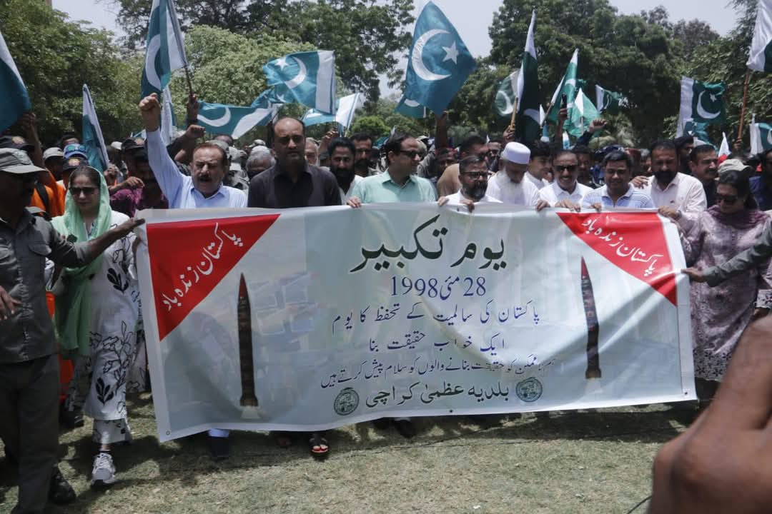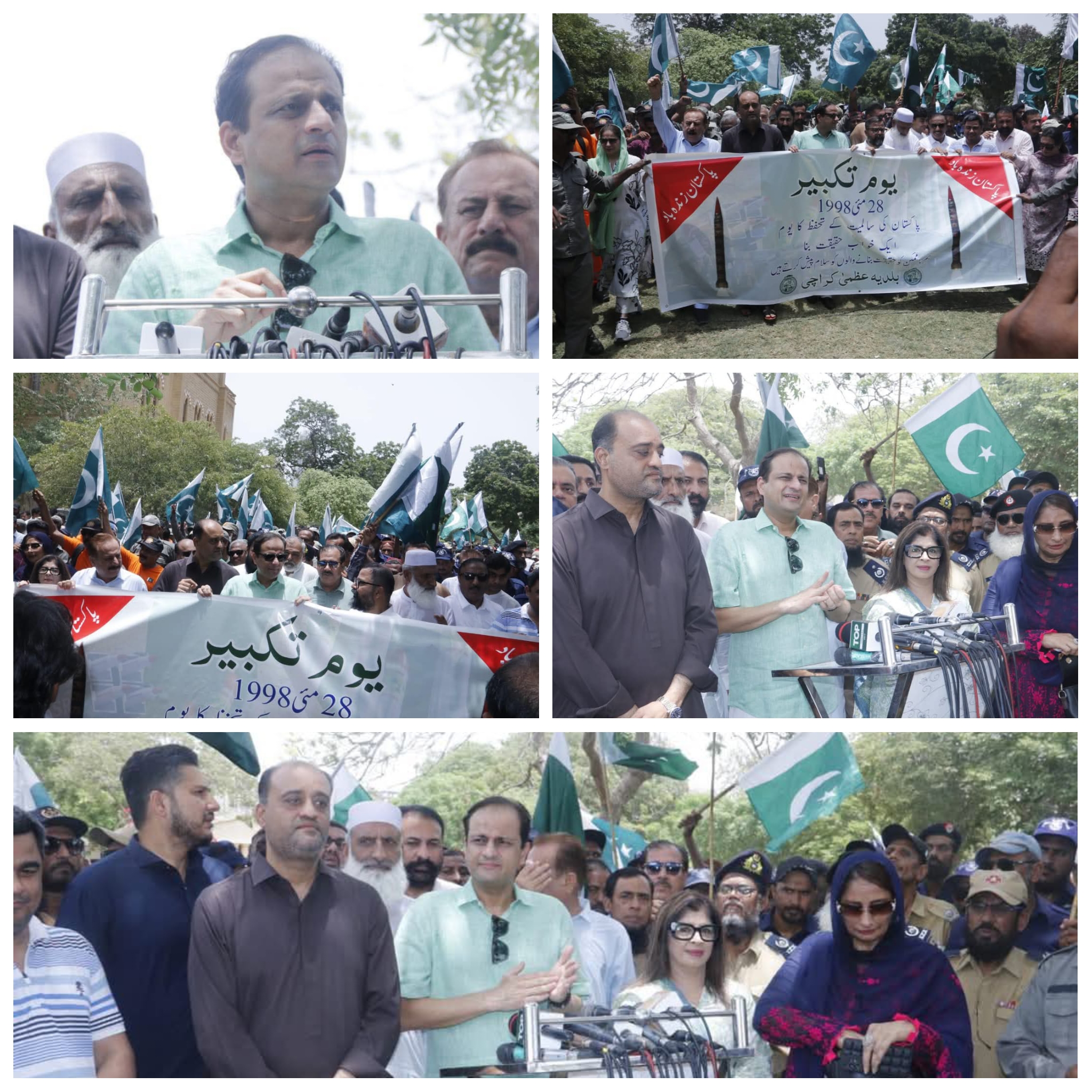 کراچی میٹروپولیٹن کارپوریشن کے زیرِ اہتمام یومِ تکبیر ریلی کا انعقاد کیا گیا، جس کی قیادت میئر کراچی بیرسٹر مرتضیٰ وہاب اور ڈپٹی میئر سلمان عبداللہ مراد نے فریئر ہال سے کی۔