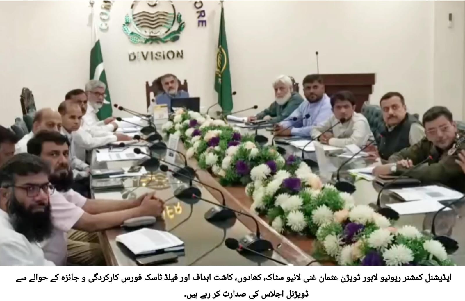 کمشنر لاہور ڈویژن زید بن مقصود کی زیر ہدایت لائیوسٹاک، کھادوں، کاشت اہداف اور فیلڈ ٹاسک فورس کے حوالے سے ڈویژنل اجلاس منعقد ہوا۔ ایڈیشنل کمشنر ریونیو لاہور ڈویژن عثمان غنی نے اجلاس کی صدارت کی اور شیخوپورہ، ننکانہ، قصور اور لاہور میں گندم پیداوار کے اعداد وشمار کا جائزہ لیا۔ اجلاس میں محکمہ زراعت اور لائیو سٹاک کے افسران نے بریفنگ دی۔ محکمہ زراعت نے بریفنگ دیتے ہوئے کہا ہے کہ لاہور ڈویژن میں گندم پیداوار کا ہدف سو فیصد حاصل کیا گیا ہے، زراعت کی ترقی کیلئے وزیراعلی پنجاب کےوژن کےتحت لاہور ڈویژن میں 821 ٹریکٹرز کسانوں کو ملیں گے۔