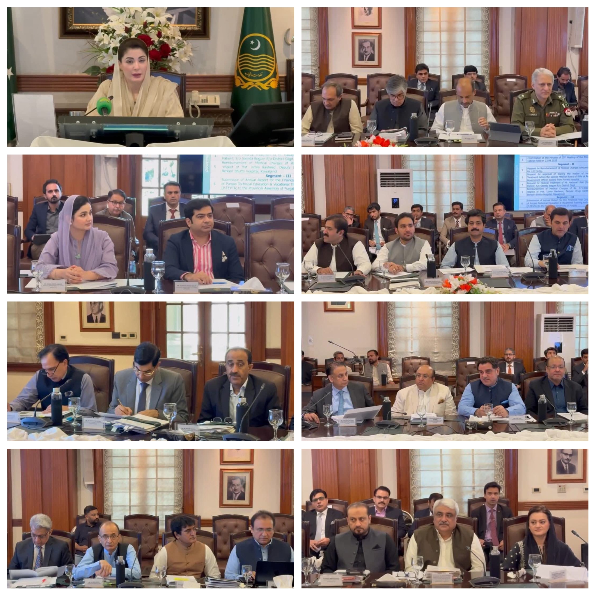 پنجاب میں پرسنلائزڈ وینیٹی پلیٹس (PVP) کے اجراء کی منظوری / ریزرو پرائس اور ٹرانسفر فیس کی منظوری دی گئی۔ صوبائی کابینہ نے پنجاب میں الیکٹرک گاڑیوں کی رجسٹریشن کی منظوری دی۔ محکمہ ایکسائز ٹیکسیشن اینڈ نارکوٹیکس کے افسران/اہلکاران اور مخبروں کے لئے انعامی نظام کی منظوری دی گئی۔ پنجاب پرائس کنٹرول آف ایسینشل کموڈیٹیز ایکٹ 2024ء میں ترامیم کی منظوری دی گئی۔ اجلاس میں معدنی وسائل کے شعبے کے ریگولیٹری فریم ورک میں ہم آہنگی کے لئے مائنز اینڈ منرلز ایکٹ 2025ء کی منظوری دی گئی۔ پنجاب انفارمیشن ٹیکنالوجی بورڈ اور ہائر ایجوکیشن ڈیپارٹمنٹ کے درمیان تکنیکی معاونت کے لئے سروس لیول ایگریمنٹ کی منظوری دی گئی۔ پنجاب پرائمری اینڈ سیکنڈری ہیلتھ کیئر سروسز بل 2025ء کی منظوری دی گئی۔ پنجاب انسٹیٹیوٹ آف مینٹل ہیلتھ، لاہور کے بورڈ آف مینجمنٹ کی تحلیل اور پنجاب میڈیکل اینڈ ہیلتھ انسٹی ٹیوشنز ایکٹ 2003ء کے تحت ایڈمنسٹریشن کمیٹی کی تشکیل کی منظوری دی گئی۔ کابینہ نے ڈائریکٹوریٹ جنرل مانیٹرنگ اینڈ ایویلیوایشن، پلاننگ اینڈ ڈویلپمنٹ بورڈ، لاہور کے افسران کے لئے مانیٹرنگ اینڈ ایویلیوایشن الاؤنس کی منظوری دی۔ پنجاب ہارٹیکلچر اتھارٹی ایکٹ 2024ء کی منظوری دی گئی۔ لاہور کو ماحولیاتی طور پر پائیدار بنانے کے لئے گرین ایریاز کی ڈویلپمنٹ کے ذریعے سموگ کے تدارک کے اقدامات کی منظوری دی گئی۔ اوقاف، ٹرسٹ اور کوآپریٹو سوسائٹیز کے انتظام کے لئے قانونی فریم ورک ایکٹ 2024ء کی منظوری دی گئی۔ رحیم یار خان میں واٹر لاگنگ اور زمین کے کٹاؤ کے مسائل کے حل کے منصوبے کی منظوری دی گئی۔ لکھوڈیر لینڈ فل کے اخراجات کو کاربن کریڈٹس میں تبدیل کرنے کی سکیم کی منظوری دی گئی۔کابینہ نے پنجاب عوامی آگاہی اور معلومات کی ترسیل ایکٹ 2025ء کی منظوری دی۔ پنجاب فلم سنسر بورڈ کی از سر نوتشکیل کی منظوری دی گئی۔ سپیشلائزڈ ہیلتھ کیئر و میڈیکل ایجوکیشن ڈیپارٹمنٹ کے تحت چلنے والے انسٹی ٹیوٹ آف پبلک ہیلتھ، لاہور کے لئے بورڈ آف مینجمنٹ کی تشکیل کی منظوری دی گئی۔ سپیشلائزڈ ہیلتھ کیئر و میڈیکل ایجوکیشن ڈیپارٹمنٹ کے تحت گوجرانوالہ میڈیکل کالج، گوجرانوالہ اور ساہیوال میڈیکل کالج، ساہیوال کے لئے بورڈز آف مینجمنٹ کی تشکیل کی منظوری دی گئی۔ اجلاس میں پنجاب کے ٹرشری کئیر ہسپتالوں میں فرنیچر اور سامان کی خریداری کے لئے فنڈز کی فراہمی کی منظوری دی گئی۔ فیڈرل بورڈ آف ریونیو (FBR) اور ریونیو اتھارٹیز کے درمیان ڈیٹا شیئرنگ کے لئے مفاہمتی یادداشت (MoU) کی منظوری دی گئی۔ پنجاب ڈیفائنڈ کنٹریبیوشن پنشن سکیم کے نفاذ اور پنشن فنڈ منیجر معاہدے کی منظوری دی گئی۔ پنجاب سبسیڈری ٹریژری رولز میں ترامیم کی منظوری دی گئی۔ ریٹائرمنٹ کے بعد دوبارہ تقرری یا ملازمت کی صورت میں پنشن کی منظوری دی گئی۔ کابینہ نے گرانٹ اِن ایڈ پالیسی 2025ء کے تحت تجاویز کے جائزے کے لئے کابینہ کمیٹی کی تشکیل کی منظوری دی۔ پنجاب میں گاڑیوں پر لگانے کے لئے ریٹرو ریفلیکٹڈ نمبر پلیٹس کی فراہمی کی منظوری دی گئی۔ پنجاب انوائرمنٹ پروٹیکشن اتھارٹی کے ملازمین کے لئے خصوصی الاؤنس کی منظوری دی گئی۔ پنجاب ڈیلیگیشن آف فنانشل پاورز رولز 2016ء کے تحت سیکریٹری محتسب پنجاب کے عہدے کو فرسٹ شیڈول پارٹ-I میں شامل کرنے کی منظوری دی گئی۔ مالی سال 2024-25 ء میں فیلڈ سٹاف کے لئے برانڈڈ کسٹمائزڈ موٹر سائیکلوں کی خریداری کیلئے سپلیمنٹری گرانٹ کی منظوری دی گئی۔ رمضان بازاروں 2022 ء کی بقایا ادائیگیوں کی ادائیگی کے لئے سپلیمنٹری گرانٹ کی منظوری دی گئی۔ عدالتی حکم کے مطابق ڈگری شدہ رقم کی ادائیگی کے لئے فنڈز کی فراہمی کی منظوری دی گئی۔ اجلاس میں پنجاب پبلک پروکیورمنٹ رولز 2014 ء میں ترامیم کی منظوری دی گئی۔ عالمی بینک کی معاونت سے چلنے والے منصوبے پنجاب کلین ایئر پروگرام (PCAP) کی منظوری دی گئی۔ محکمہ زراعت اور ہیوی انڈسٹریز ٹیکسلا / مارگلہ ہیوی انڈسٹریز لمیٹڈ کے مابین 20 کوماتسو بلڈوزرز کے کنٹریکٹ کی بحالی کی منظوری دی گئی۔ محکمہ زراعت اور گرین ک