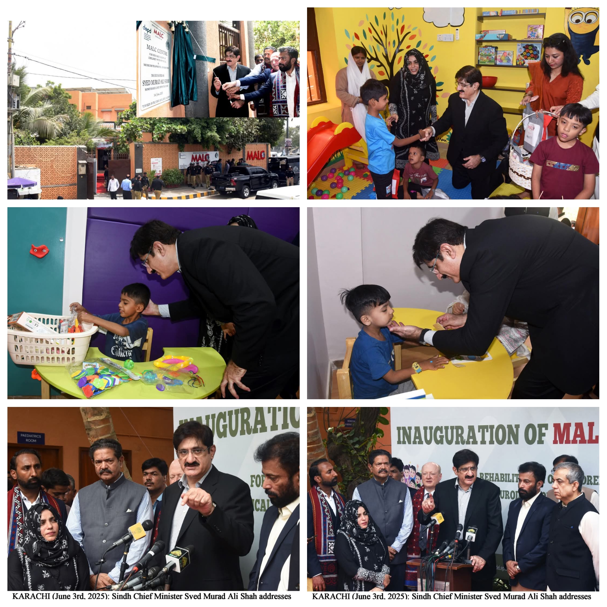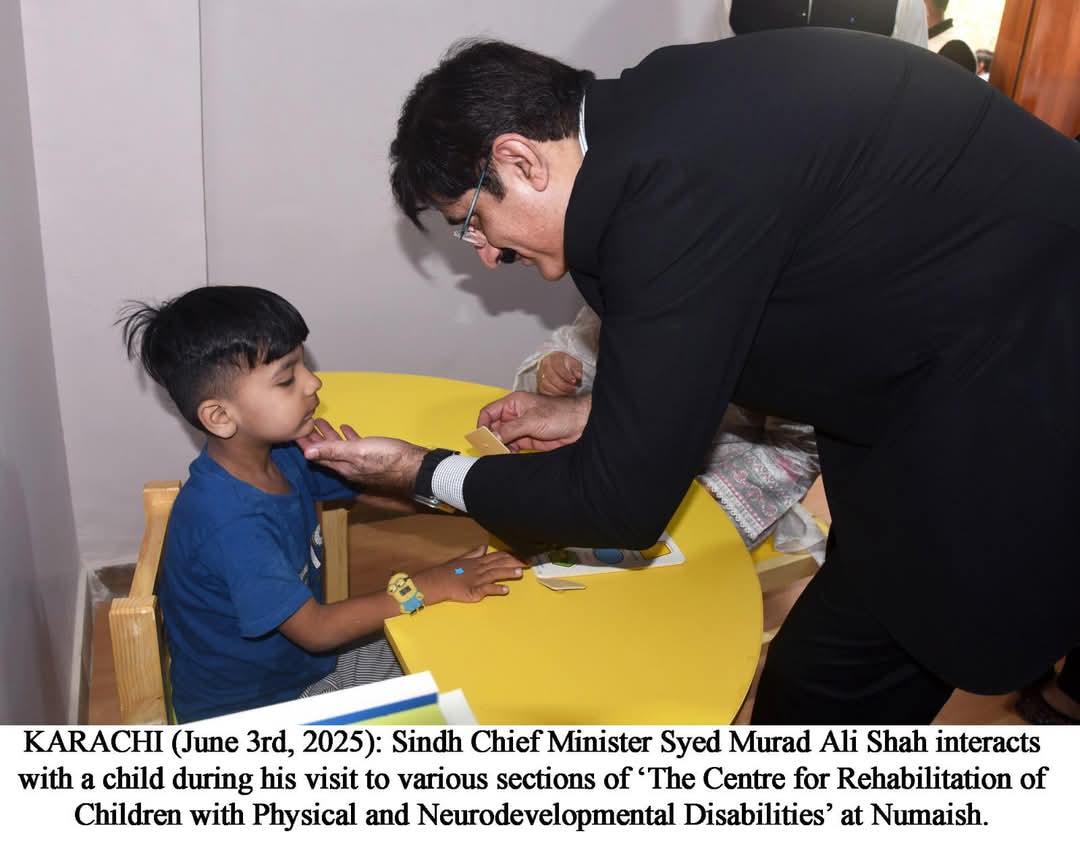 وزیراعلیٰ سندھ سید مراد علی شاہ نے جسمانی اور اعصابی نشوونما میں مسائل کا شکار بچوں کی بحالی کے لیے قائم مرکز کا افتتاح کردیا۔ یہ مرکز میری ایڈیلیڈ لیپروسی سینٹر (ایم اے ایل سی) اور محکمہ بااختیاری برائے معذور افراد حکومت سندھ (ڈی ای پی ڈی) کی مشترکہ کاوش ہے۔وزیراعلیٰ کا کہنا تھا کہ یہ مرکز امید کی ایک کرن ہے اور اُن بچوں کے لیے ہماری اجتماعی وابستگی کا مظہر ہے جو جسمانی یا اعصابی چیلنجز کا سامنا کر رہے ہیں جن میں آٹزم اور ڈاؤن سنڈروم جیسے امراض بھی شامل ہیں۔ انہوں نے مزید کہا کہ ہمارا وژن بالکل واضح ہے کہ ان بچوں کو دیکھ بھال، علاج اور مواقع فراہم کیے جائیں تاکہ وہ ایک باوقار اور بھرپور زندگی گزار سکیں۔وہ آج جسمانی اور اعصابی نشوونما کے مسائل سے دوچار بچوں کے لیے بحالی مرکز کے افتتاح کے بعد میڈیا سے گفتگو کر رہے تھے۔ اس موقع پر محکمہ بااختیاری برائے معذور افراد (ڈی ای پی ڈی) کے سیکریٹری طہٰ احمد فاروقی، وزیراعلیٰ کے خصوصی معاون راجویر سنگھ سوڈھا تنیو، جرمنی کے قونصل جنرل ڈاکٹر روڈیگر لوٹس، جرمن لیپروسی اینڈ ٹی بی ریلیف ایسوسی ایشن (جی ایل آر اے) کے گلوبل ہیلتھ ایڈوائزر ڈاکٹر انیل فاسٹینو، میری ایڈیلیڈ لیپروسی سینٹر (ایم اے ایل سی) کے چیف ایگزیکٹو آفیسر مروین فرانسس، ایم اے ایل سی گورننگ بورڈ کے نائب صدر انور الحق حیدری، خزانچی عظیم حسین صدیقی اور بورڈ کے رکن عابد حسین بھی موجود تھے۔مراد علی شاہ نے کہا کہ یہ مرکز ایک ہی چھت تلے ایک جامع اور مکمل طور پر مربوط سہولیات کا مجموعہ فراہم کرتا ہے جو مختلف شعبوں کے ماہرین پر مشتمل ایک پرعزم ٹیم کی جانب سے مہیا کی جا رہی ہیں۔ ان خدمات میں شامل ہیں