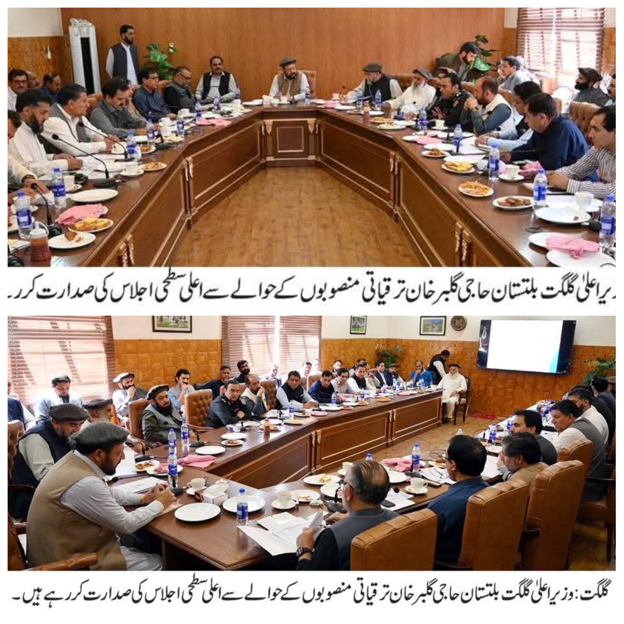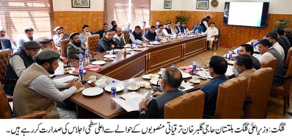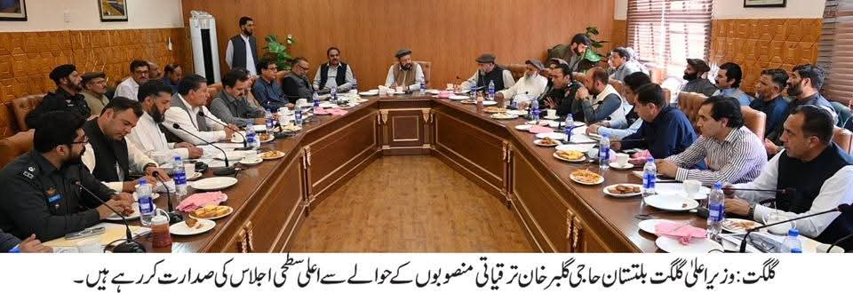 چلاس۔ وزیر اعلٰی گلگت بلتستان حاجی گلبر خان نے چلاس کیمپ آفس میں ترقیاتی منصوبوں کے حوالے سے منعقدہ اعلٰی سطحی اجلاس کے موقع پر گفتگو کرتے ہوئے کہا کہ آفسران ذمہ داری اور خلوص کے ساتھ اپنے فرائض سرانجام دیں تاکہ گلگت بلتستان کی تعمیر و ترقی اور خوشحالی کے سفر کو تیزی سے آگے بڑھایا جا سکے۔ ہماری ترجیح وسائل کا منصفانہ تقسیم عوام کی معیار زندگی کو بہتر بنانا اور دور دراز علاقوں کی ترقی اور پسماندہ علاقوں کی احساس محرومی دور کرنا ہے۔ وزیر اعلٰی نے