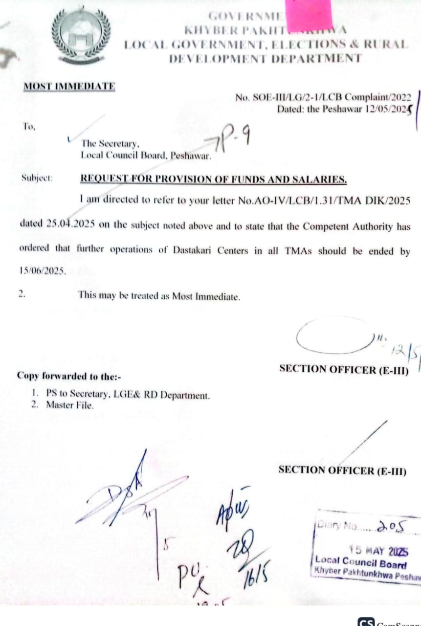 صوبہ کی تحصیل میونسپل ایڈمنسٹریشنز اور سابق ضلع کونسلز کے دستکاری سنٹرز سے قوم کی بچیاں دستکاری کی مصنوعات سیکھنے میں مددگار ثابت ھوتے رہے ہیں جس سے بچیوں کو سلائی ، کڑھائی، ایمبرائیڈری جیسے ھنر سے بچیاں مستفید ھوتی رہی ہیں۔ لوکل گورنمنٹ ایمپلائز فیڈریشن خیبرپختونخوا کے عہدیداران نے حکومتی احکام کو غیر منصفانہ، غیر آئینی ، غیر مجازانہ اور بچیوں کے بنیادی ائینی حقوق کے منافی قرار دیکر حکومتی احکام کو مسترد کرتے ھوئے دستکاری سکولز کے خاتمے کے احکام کو بلا تاخیر واپس لینے اور سنٹرز کو بحال جرنے کا مطالبہ کیا ھے۔ فیڈریشن رہنماؤں نے کہا اگر حکومت نے فوری آرڈرز واپس کرنے تاخیر کی تو فیڈریشن آئندہ کا لائحہ عمل طے کرے گی جس کی تمام تر ذمہ داری حکومت پر عائد ھو گی۔