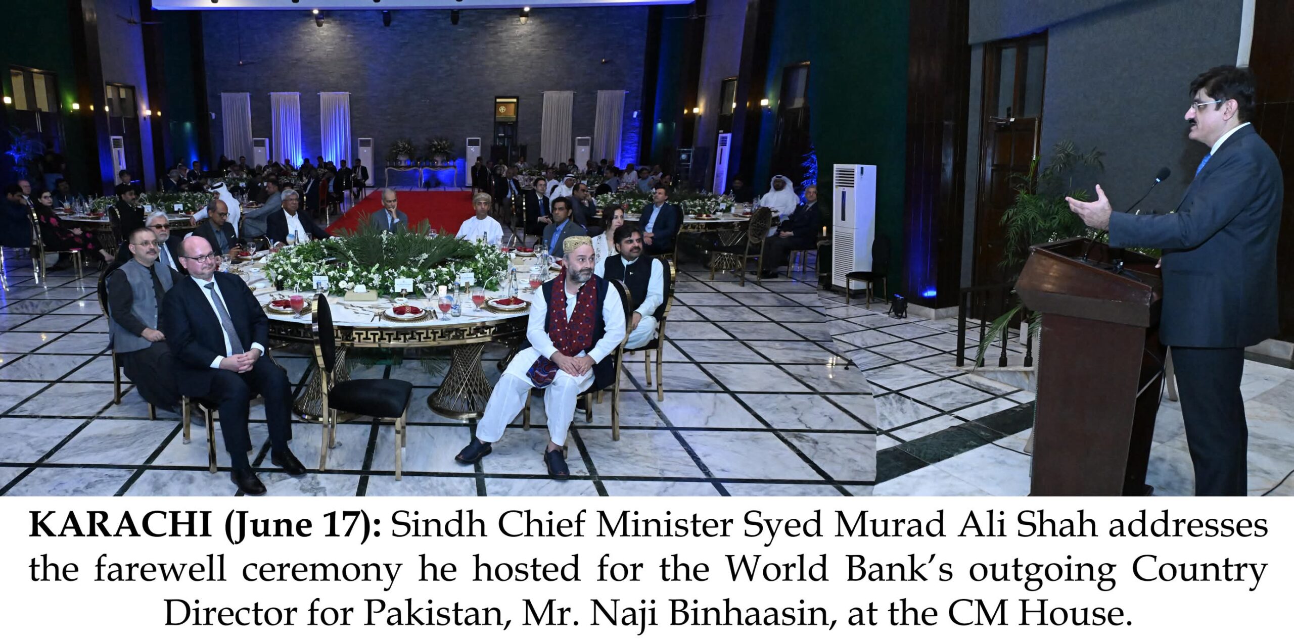 وزیراعلیٰ سندھ سید مراد علی شاہ نے پاکستان میں عالمی بینک کے سبکدوش ہونے والے کنٹری ڈائریکٹر مسٹر ناجی بن حسّین کے اعزاز میں وزیراعلیٰ ہاؤس میں شاندار الوداعی تقریب کا انعقاد کیا۔ مسٹر ناجی اپنی پانچ سالہ موثر مدتِ ملازمت مکمل کر رہے ہیں۔تقریب میں صوبائی وزراء، مشیران، خصوصی معاونین، چیف سیکریٹری، متعلقہ محکموں کے سیکریٹریز، غیر ملکی سفارتکاروں اور معروف صنعت کاروں نے شرکت کی۔مسٹر بن حسّین نے تقریب میں پاکستانی روایتی لباس شلوار قمیض اور سیاہ ویسٹ کوٹ زیب تن کر رکھی تھی۔ ان کی قیادت اور عزم کو خاص طور پر 2022 میں سندھ میں تباہ کن سیلاب کے دوران ان کے مثالی کردار کے لیے سراہا گیا۔تقریب کے دوران عالمی بینک اور حکومت سندھ کی شراکت سے جاری منصوبوں پر مبنی ایک ڈاکومنٹری بھی دکھائی گئی۔اس موقع پر خطاب کرتے ہوئے وزیراعلیٰ سندھ سید مراد علی شاہ نے کہا کہ یہ موقع ایک خوشگوار اور یادگار لمحہ ہے جو نہ صرف ایک معزز شخصیت کو الوداع کہنے کے لیے ہے بلکہ مسٹر بن حسّین کی قیادت میں عالمی بینک کے ساتھ نتیجہ خیز شراکت کا جشن بھی ہے۔انہوں نے کہا کہ عالمی بینک کے تعاون سے سندھ کے لاکھوں عوام کو فائدہ پہنچا۔ وزیراعلیٰ نے 2022 کے سیلاب کے دوران مسٹر بن حسّین کی بروقت اور مؤثر حکمت عملیوں کو خراج تحسین پیش کیا جنہوں نے متاثرہ افراد کو فوری مدد فراہم کی۔ انہوں نے اس موقع پر چیئرمین بلاول بھٹو زرداری کی خصوصی توجہ اور رہنمائی کا بھی ذکر کیا جس کے باعث سیلاب متاثرین کی بحالی ممکن ہوئی۔وزیراعلیٰ سندھ مراد علی شاہ نے بتایا کہ سندھ کا عالمی بینک کے ساتھ مالیاتی تعاون 3.96 ارب ڈالر تک پہنچ چکا ہے جس میں سرمایہ کاری کا دائرہ کار ماحولیاتی بحالی، سماجی تحفظ، انفرااسٹرکچر کی بحالی اور ڈیجیٹل جدت پر مشتمل ہے۔وزیراعلیٰ نے سیلاب زدگان کےلیے گھروں کی تعمیر کے سندھ فلڈ ایمرجنسی ہاؤسنگ ریکنسٹرکشن پراجیکٹ جیسے نمایاں منصوبے پر زور دیا جو دنیا کا سب سے بڑا رہائشی منصوبہ ہے اور 21 لاکھ گھروں کی تعمیر کے ذریعے ڈیڑھ کروڑ سے زائد افراد کو فائدہ پہنچا رہا ہے۔انہوں نے بتایا کہ دیگر اہم منصوبوں میں کراچی ٹرانسفارمیشن اسٹریٹجی، کراچی نیبرہڈ امپروومنٹ پراجیکٹ، کراچی واٹر اینڈ سیوریج سروسز امپروومنٹ پراجیکٹ اور کراچی موبیلیٹی پراجیکٹ شامل ہیں جن کا مقصد پاکستان کے معاشی مرکز میں طرز زندگی کو بہتر بنانا ہے۔مراد علی شاہ نے بتایا کہ عالمی بینک نے 2026 سے 2035 تک کا کنٹری پارٹنرشپ فریم ورک بھی منظور کرلیا ہے جس کے تحت پاکستان کو متوقع طور پر 20 ارب ڈالر کی امداد ملے گی۔ یہ امداد سندھ کی ترجیحات سے ہم آہنگ شعبوں جیسے غذائی قلت کا خاتمہ، تعلیم، ماحول کی بہتری اور جامع سرمایہ کاری پر مرکوز ہوگی۔انہوں نے مسٹر بن حسّین کی خدمات پر گہرے تشکر کا اظہار کرتے ہوئے کہا کہ وہ ایک مضبوط نظام، بااختیار کمیونٹیز اور پائیدار امید کا ورثہ چھوڑ کر جا رہے ہیں جو آنے والے برسوں میں سندھ کی ترقی میں اہم کردار ادا کرے گا۔اپنے الوداعی خطاب میں مسٹر ناجی بن حسّین نے حکومت سندھ کے عزم اور خود وزیراعلیٰ مراد علی شاہ کی ذاتی نگرانی کو سراہا جس کے باعث عالمی بینک کے منصوبے کامیابی سے ہمکنار ہوئے۔