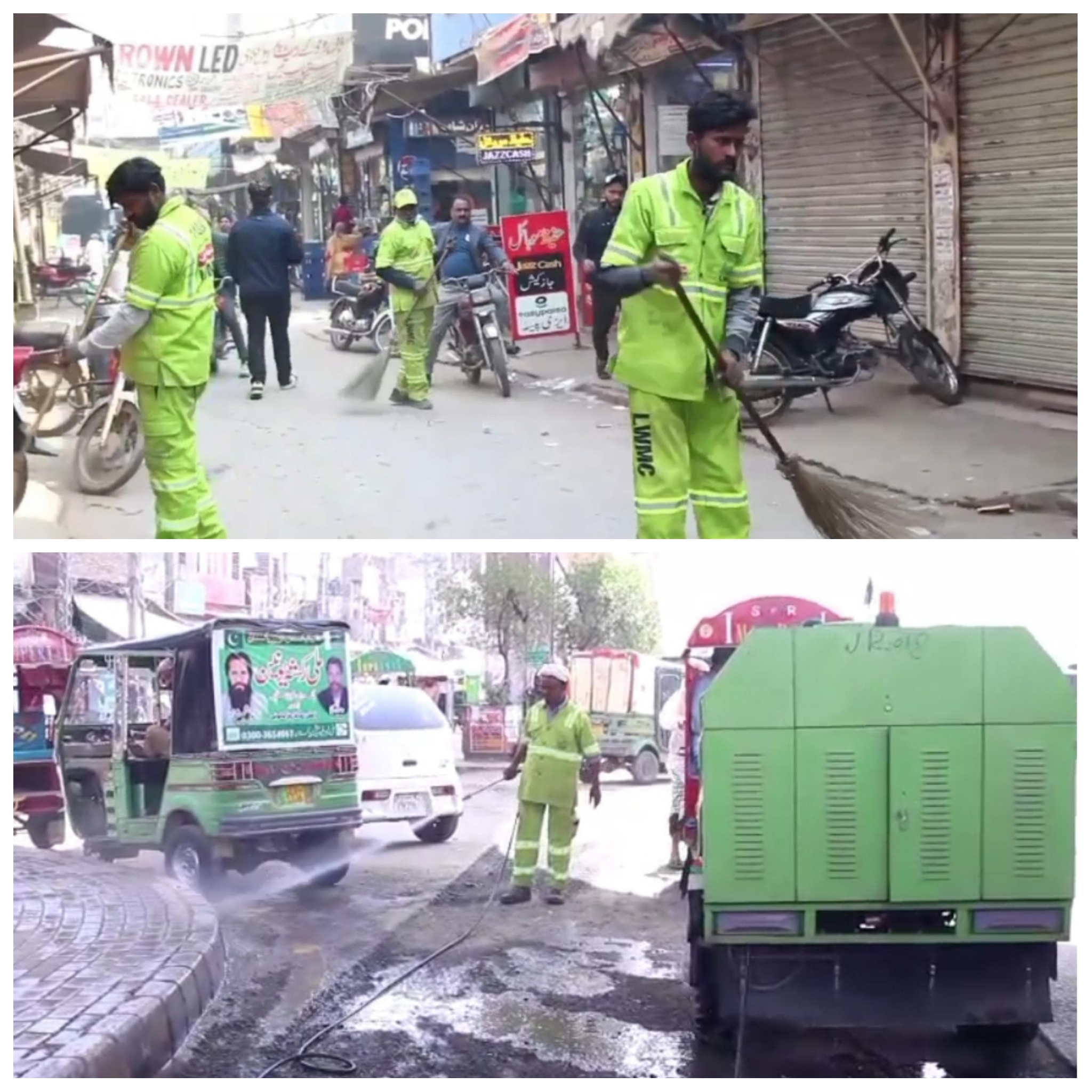 ایل ڈبلیو ایم سی شہرِ لاہور کے ہر ہر گھر،گلی محلے کو ویسٹ فری کرنے کے ساتھ ساتھ صاف ماحول کی فراہمی ممکن بنانے کیلئے بھی پرعزم ہے۔اس مقصد کی تکمیل کے لیے چیف ایگزیکٹو آفیسر لاہور ویسٹ مینجمنٹ کمپنی کی ہدایت پرایل ڈبلیو ایم سی کی آپریشن ٹیمیں شہر بھر میں ویٹ سویپنگ اور پانی کا چھڑکاؤ یقینی بنا رہی ہیں جبکہ شہر کی 40سے زائد اہم شاہراہوں پر سکریپنگ اور واشنگ آپریشن کے ساتھ ساتھ خصوصی صفائی ایکٹیویٹیز جاری ہیں،