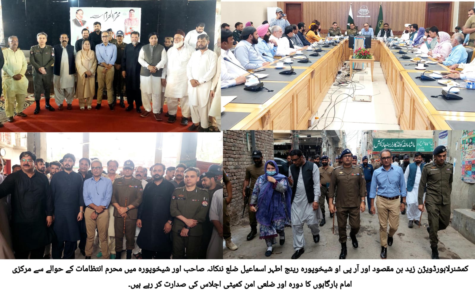کمشنر لاہور ڈویژن زید بن مقصود نے آر۔پی۔او شیخوپورہ رینج اطہر اسماعیل کے ہمراہ ضلع شیخوپورہ اور ضلع ننکانہ صاحب کا دورہ کیا۔ کمشنر لاہور ڈویژن زید بن مقصود کی زیر صدارت ضلع شیخوپورہ و ضلع ننکانہ صاحب میں محرم انتظامات کے حوالے سے ضلع انتظامیہ کے اجلاس منعقد ہوئے۔ اجلاس میں ڈی سی شیخوپورہ، ڈی سی ننکانہ صاحب اور ڈی پی او ز شیخوپورہ و ننکانہ صاحب نے محرم انتظامات بارے بریفنگ دی۔