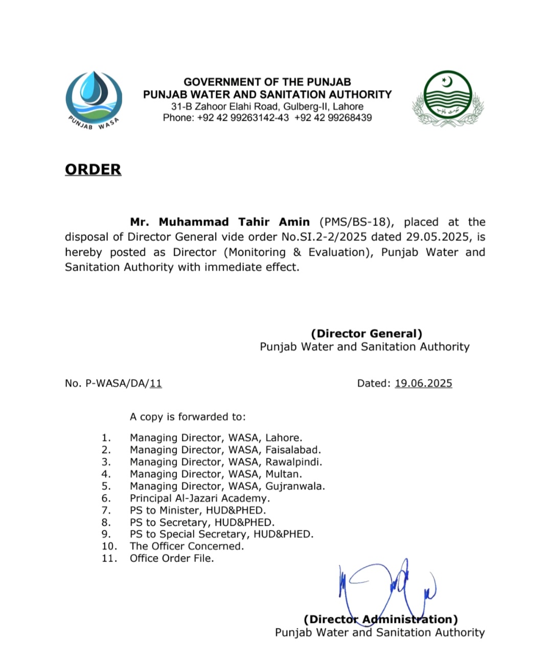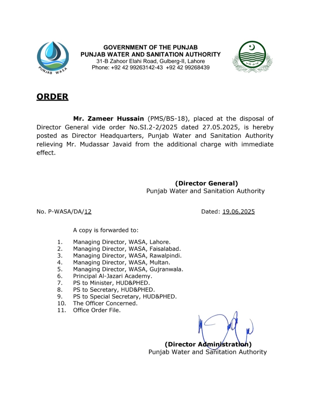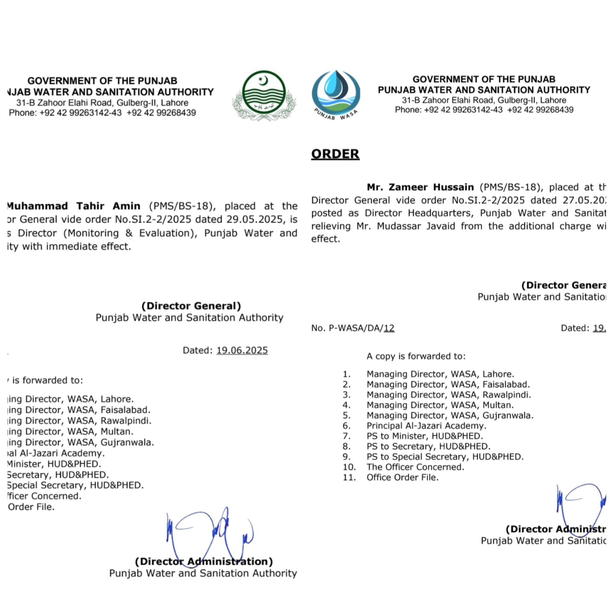 پنجاب واٹر اینڈ سینیٹیشن اتھارٹی میں دو نئے ڈائریکٹرز کی تقرریوں کے احکامات جاری کئے گئے ہیں۔ڈائریکٹر جنرل کی جانب سے جاری نوٹیفکیشن