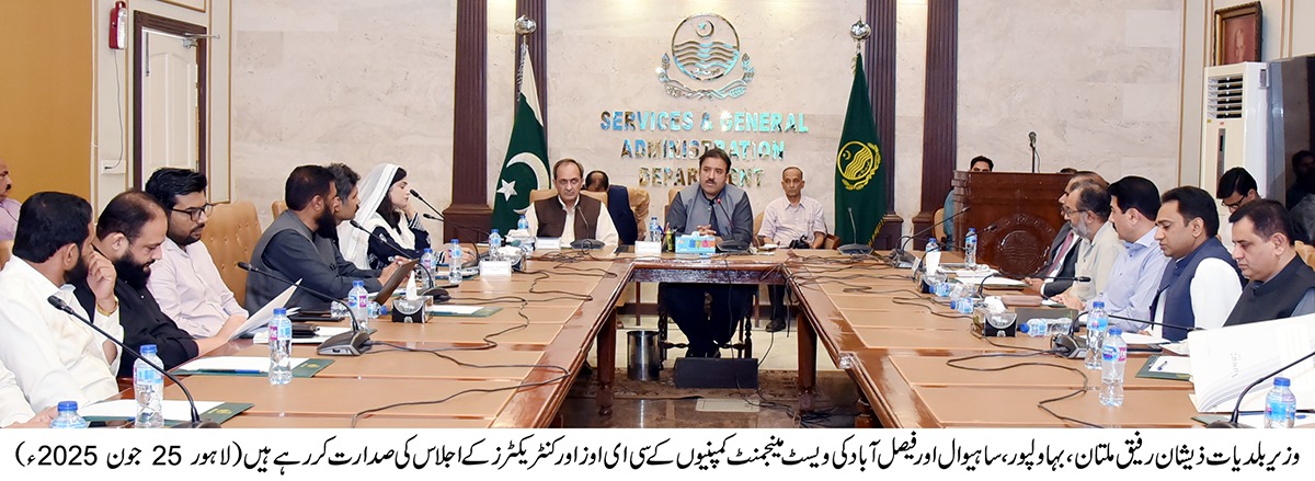 پنجاب کی 10 ویسٹ مینجمنٹ کمپنیوں کی کارکردگی کا سہ ماہی جائزہ مکمل کر لیا گیا ہے۔ پہلے مرحلے میں لاہور اور سیالکوٹ جبکہ دوسرے مرحلے میں راولپنڈی، سرگودھا، گوجرانوالہ اور ڈی جی خان کمپنی کا جائزہ مکمل کیا جا چکا ہے۔ تیسرے اور آخری مرحلے میں ملتان، ساہیوال، بہاولپور اور فیصل آباد کے سی ای اوز اور کنٹریکٹرز کا اجلاس وزیر بلدیات ذیشان رفیق کی زیر صدارت سول سیکرٹریٹ میں ہوا۔ سیکرٹری لوکل گورنمنٹ شکیل احمد میاں اور سپیشل سیکرٹری آسیہ گل نے بھی شرکت کی۔ اجلاس کے دوران چاروں ڈویژنوں میں صفائی کی صورتحال اور درپیش چیلنجز پر غور کیا گیا۔