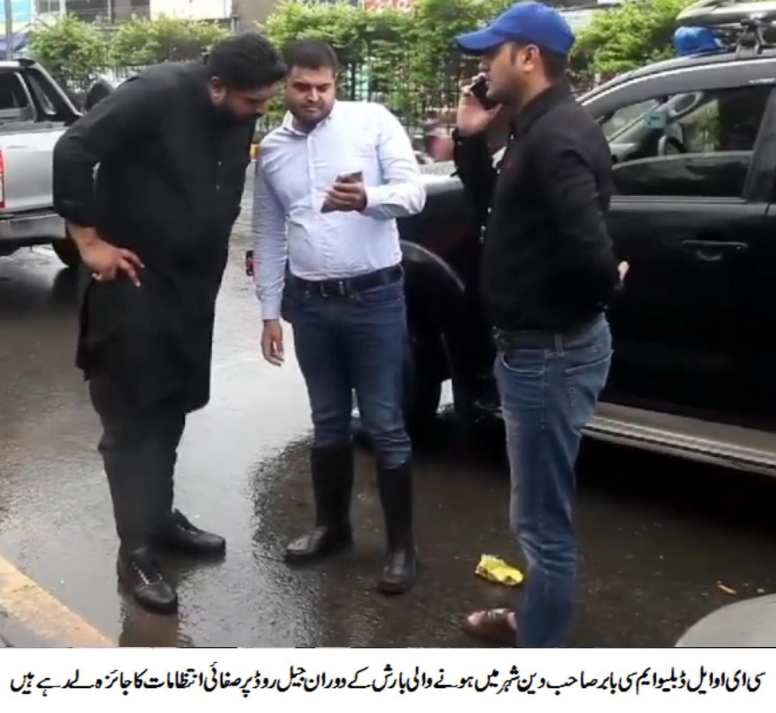 وزیرِ اعلیٰ پنجاب مریم نواز شریف کے ویژن ستھرا پنجاب پر عملدرآمد یقینی بنانے کے لیے شہر میں موسلا دھار بارش میں بھی ایل ڈبلیو ایم سی کے افسران اور عملہ صفائی آپریشن پر مامور رہا۔سی ای او بابر صاحب دین نےشہرکے مختلف علاقوں کا دورہ کر کےخود شاہراؤں کی کلیئرنس کا جائزہ لیا۔