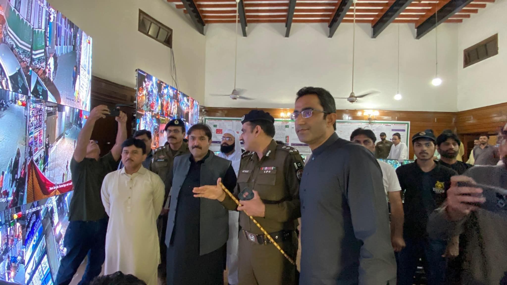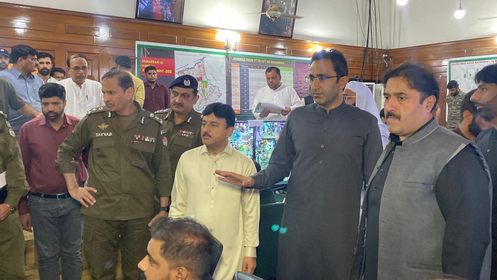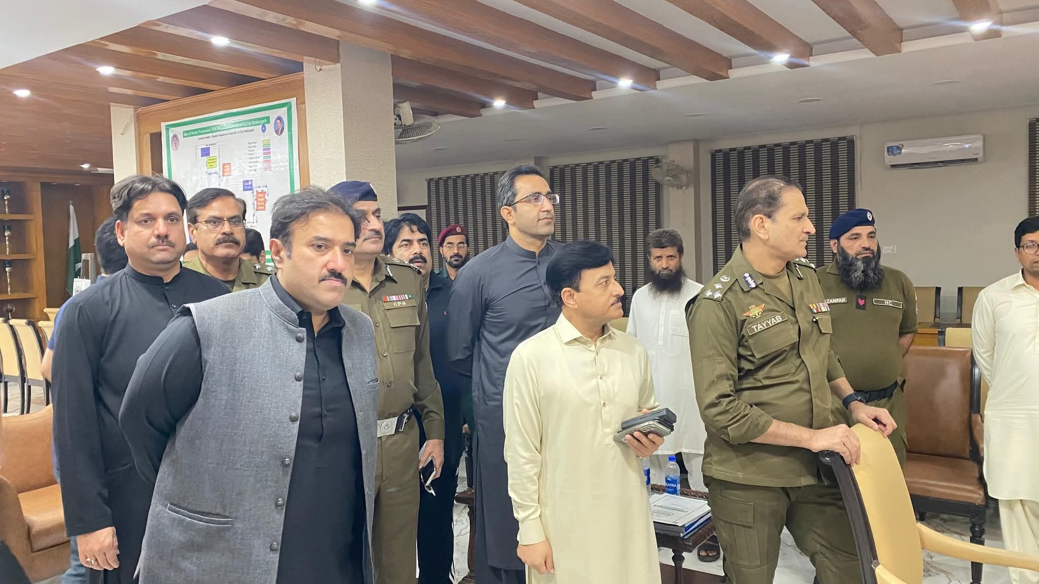کمشنر سید نوید حیدر شیرازی، آر پی او طیب حفیظ چیمہ، ڈی سی نوید احمد و دیگر ہمراہ ہیں۔