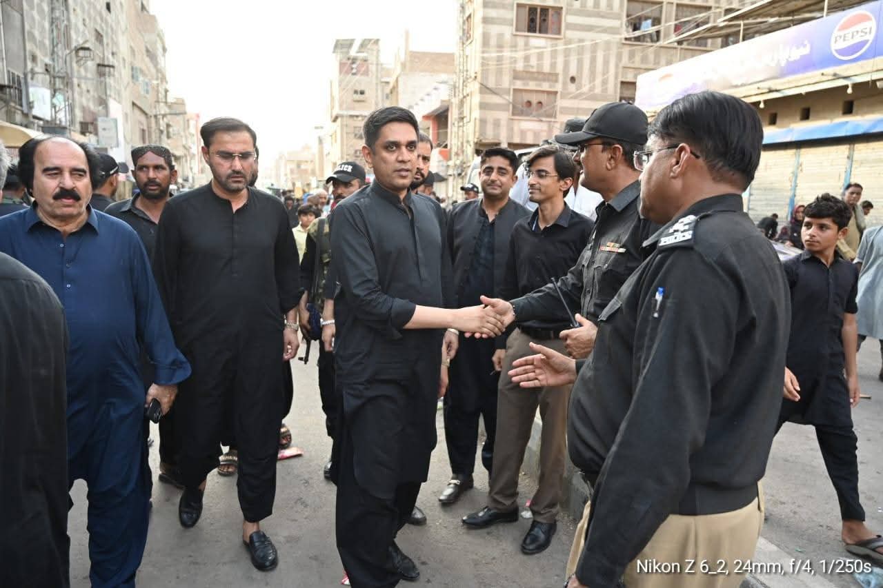 میئر سکھر ارسلان اسلام شیخ نے یوم عاشورہ کے موقع پر 10ویں محرم الحرام کے مرکزی ماتمی جلوس کے سلسلے میں گھنٹہ گھر کا دورہ کیا،