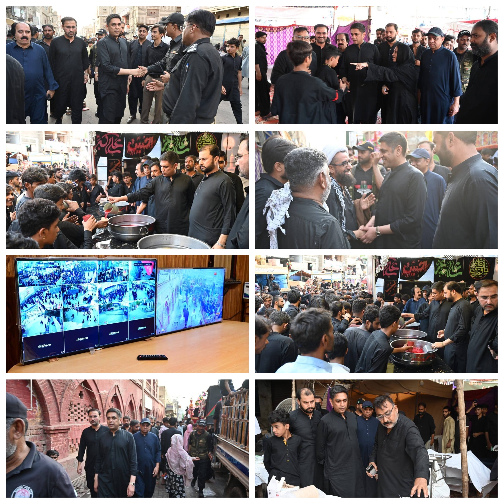 پولیس کنٹرول روم، سیکیورٹی و حفاظتی انتظامات، میڈیکل کیمپ اور دیگر بلدیاتی سہولیات کا جائزہ لیا اور سبیل امام حسین علیہ السلام پر انے والے زائرین کو سبیل پلائی