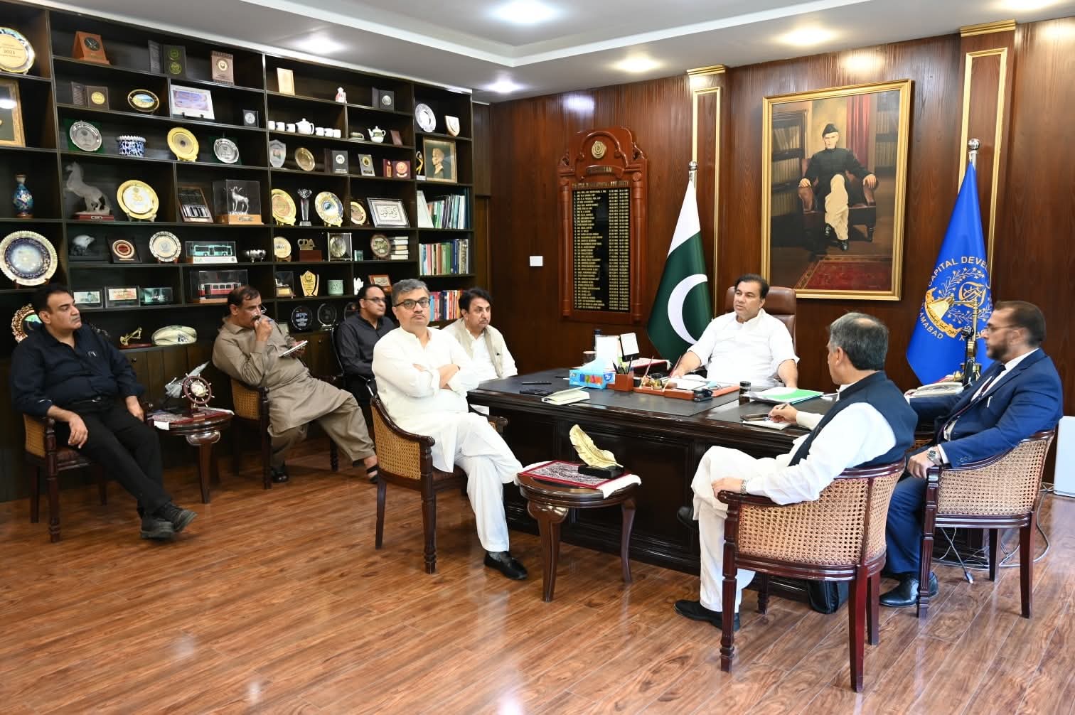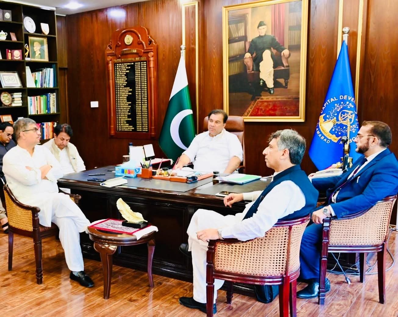 چیئرمین سی ڈی اے اور چیف کمشنر اسلام آباد محمد علی رندھاوا کی زیر صدارت سی ڈی اے ہیڈکوارٹرز میں ایک اہم اجلاس منعقد ہوا۔ اجلاس میں سی ڈی اے بورڈ کے ممبر ایڈمن و اسٹیٹ طلعت محمود، ممبر انجینئرنگ سید نفاست رضا، ممبر پلاننگ ڈاکٹر خالد حفیظ، ڈی جی ورکس، ڈی جی ای اینڈ ایم، ڈپٹی ڈی جی انفورسمنٹ، ڈائریکٹر ڈی ایم اے اور دیگر سینئر افسران نے شرکت کی۔اجلاس میں اسلام آباد کو مزید خوبصورت بنانے کیلئے بیوٹیفکیشن پلان پر عملدرآمد، پیڈسٹرین برجز کی اوور ہالنگ، مینٹیننس، خوبصورت لائٹس کی تنصیب، بلیو ایریا میں قائم پارکنگ پلازہ کو فعال بنانے کے علاوہ اسلام آباد کے شہریوں کیلئے سپورٹس کی سہولیات میں مزید اضافہ کرنے پر تبادلہ خیال کیا گیا۔چیئرمین سی ڈی اے نے تمام پیڈسٹرین برجز کا سروے کرنے، اوور ہالنگ، مینٹیننس، اور خوبصورت لائٹس کی تنصیب کرنے کی ہدایت کی۔ انہوں نے کہا کہ بلیو ایریا میں پارکنگ پلازہ کا تمام کام جلد از جلد مکمل کر کے اسے فعال بنایا جائے تاکہ بلیو ایریا میں آنے والے شہریوں کو پارکنگ کی بہترین سہولیات فراہم کی جائیں۔چیئرمین سی ڈی اے نے کہا کہ اسلام آباد میں تمام بڑے اور چھوٹے پارکس خصوصاً ایف نائن پارک اور لیک ویو پارک میں سہولیات میں مزید اضافہ کرنے اور جدید لائٹس نصب کرنے کی ہدایت کی۔ انہوں نے اسلام آباد میں ماحول دوست لگانے، سیاست کے فروغ کے علاوہ کیبل کار، تھیم پارک اور فئیر ویل کے منصوبوں کی فزیبلٹی رپورٹس جلد از جلد تیار کرنے کی ہدایت کی۔چیئرمین سی ڈی اے نے کہا کہ شہر میں ٹریفک کے مسائل کے حل کیلئے جہاں نئی شاہرات اور انڈر پاسسز کی تعمیر کی جارہی ہے وہاں ایکسپریس وے، مارگلہ روڈ، کلب روڈ، پارک روڈ اور فیصل ایونیو کو نہ صرف اپ گریڈ کیا جارہا ہے بلکہ ان شاہراہوں پر لین مارکنگ، فٹ پاتھ کی مرمت، میڈین اسٹرپس، گرین بیلٹس اور رائٹ آف وے کو خوبصورت بنانے پر خصوصی توجہ دی جارہی ہے۔ انہوں نے کہا کہ تمام بڑے راؤنڈ آباؤٹس کی تزئین و آرائش اور اربن فاریسٹ کے منصوبوں کو پانی اور زمین کی آلودگی کم کرنے کیلئے ترجیح دی گئی ہے۔اجلاس میں بتایا گیا کہ تزئین و آرائش اور شاہراہوں کو خوبصورت بنانے کے اس منصوبے کے تحت ماڈل شاہراہوں پر ہارٹیکلچر اور لینڈ سکیپنگ کے کام کے ساتھ ساتھ مناسب جگہوں پر موسمی پھول لگائے جارہے ہیں۔ اسی طرح ان شاہراہوں پر خوبصورت پلانٹرز اور لکڑی کی تختیوں کا استعمال کیا جارہا ہے جسے شہریوں کی جانب سے خوب پزیرائی مل رہی ہے۔ اسی طرح ان شاہراہوں پر جدید لائٹنگ کا انتظام بھی یقینی بنایا جا رہا ہے۔
