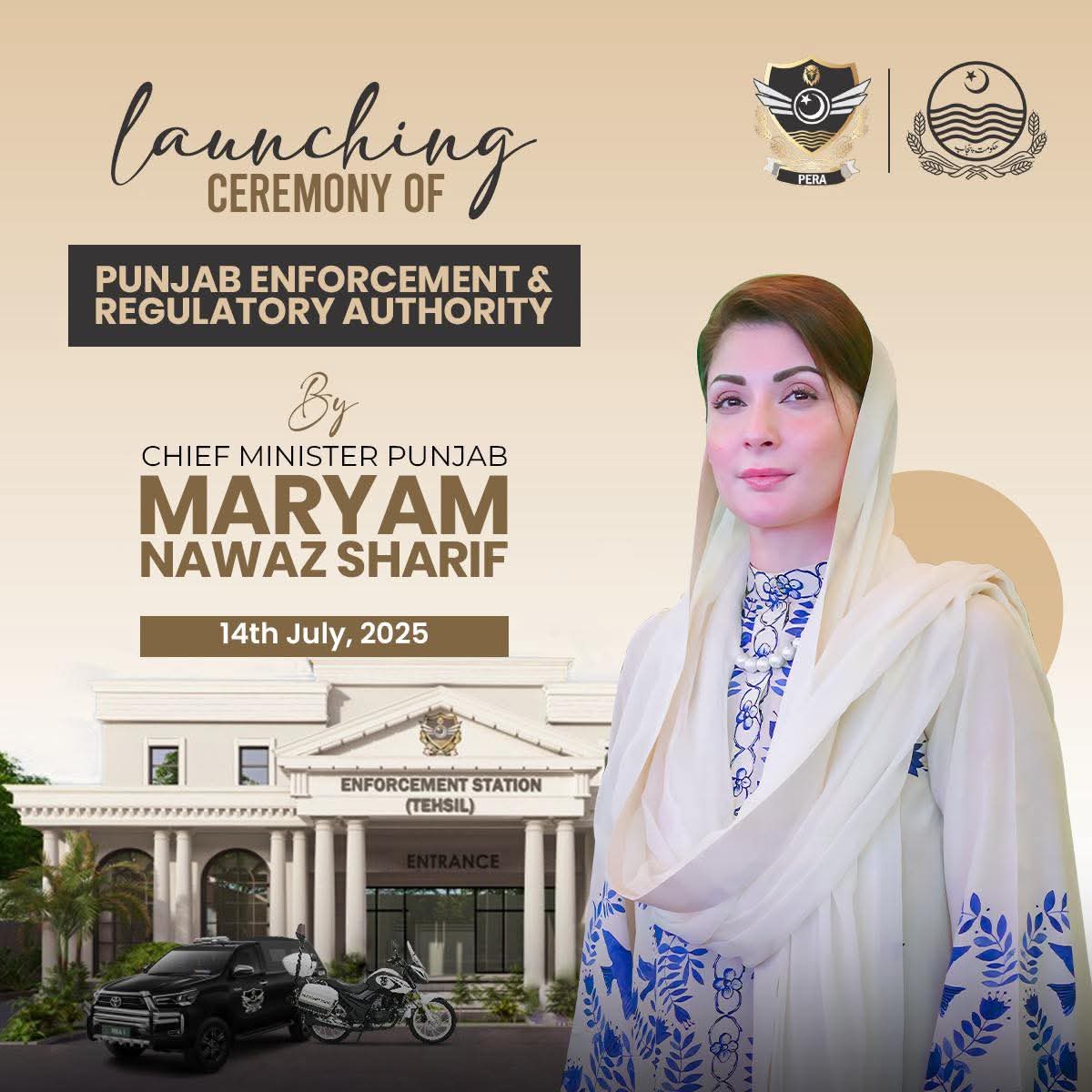 وزیراعلیٰ پنجاب مریم نواز شریف نے پاکستان کی پہلی پنجاب انفورسمنٹ اینڈ ریگولیٹری اتھارٹی لانچ کر دی ہے۔ پنجاب انفورسمنٹ اینڈ ریگولیٹری اتھارٹی اگلے ہفتے سے لاہور ڈویڑن میں پوری طرح سرگرم عمل ہوگی۔ پنجاب بھر میں پیرا دسمبر تک لانچ کر دی جائے گی۔ ایکسپوسنٹر لاہور میں پروقار تقریب کا انعقاد کیا گیا جس میں وزیراعلیٰ مریم نوازشریف نے بطور مہمان خصوصی شرکت کی۔