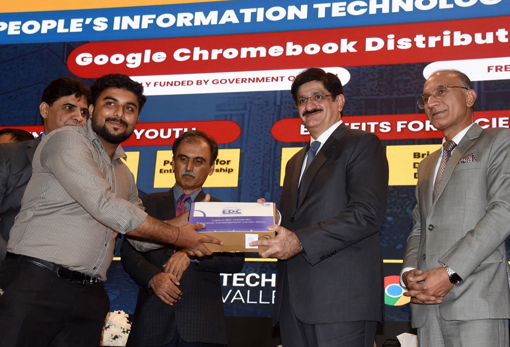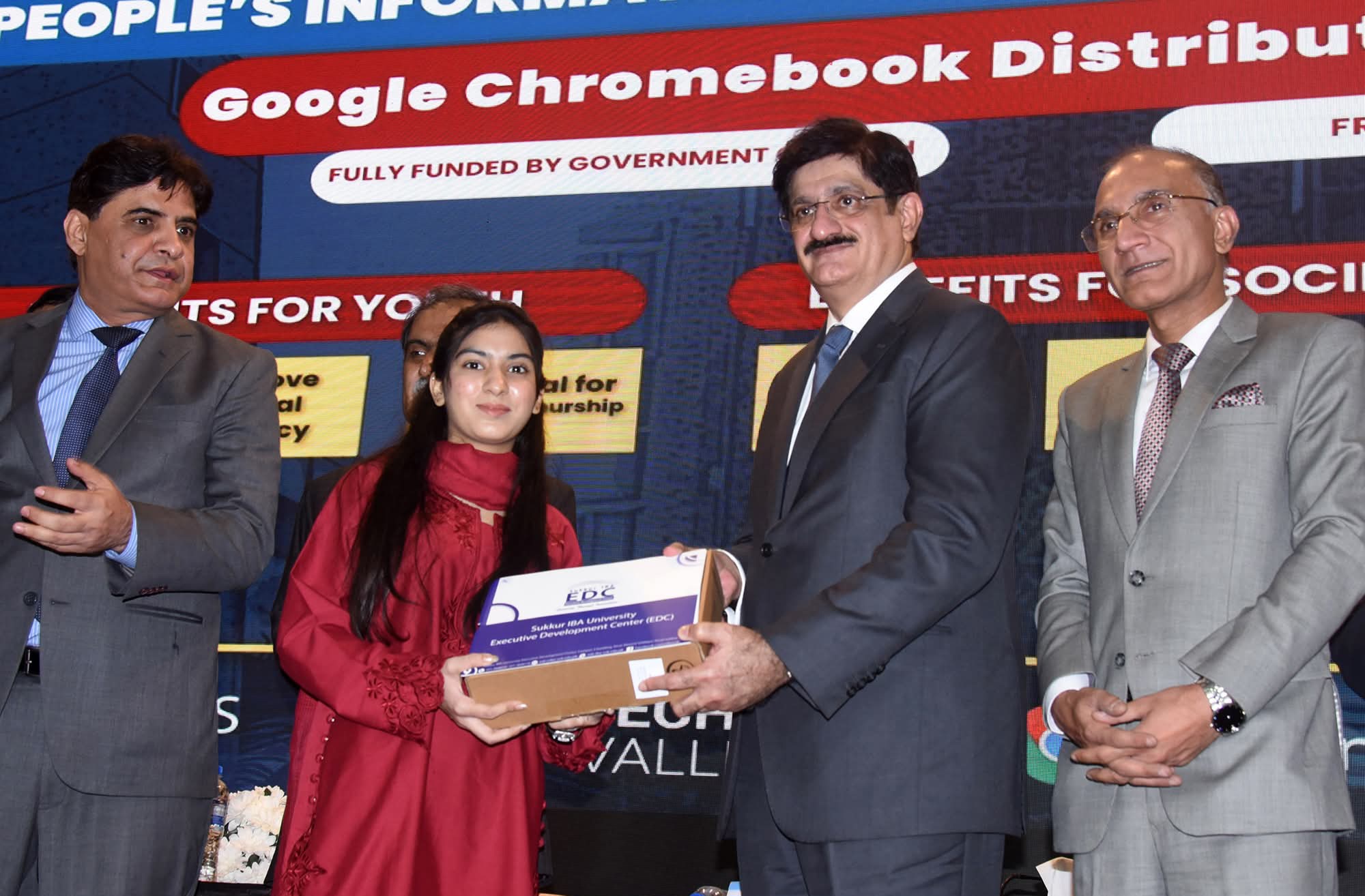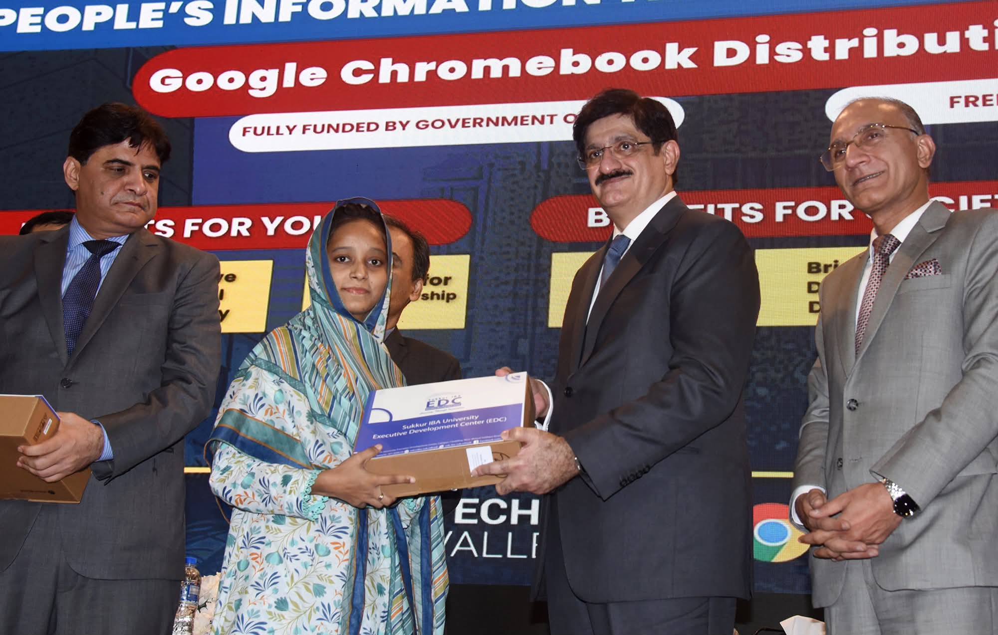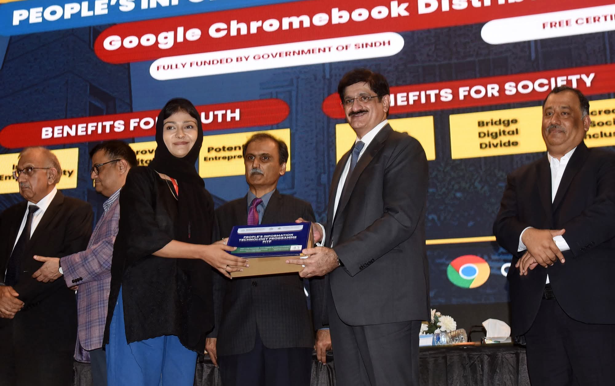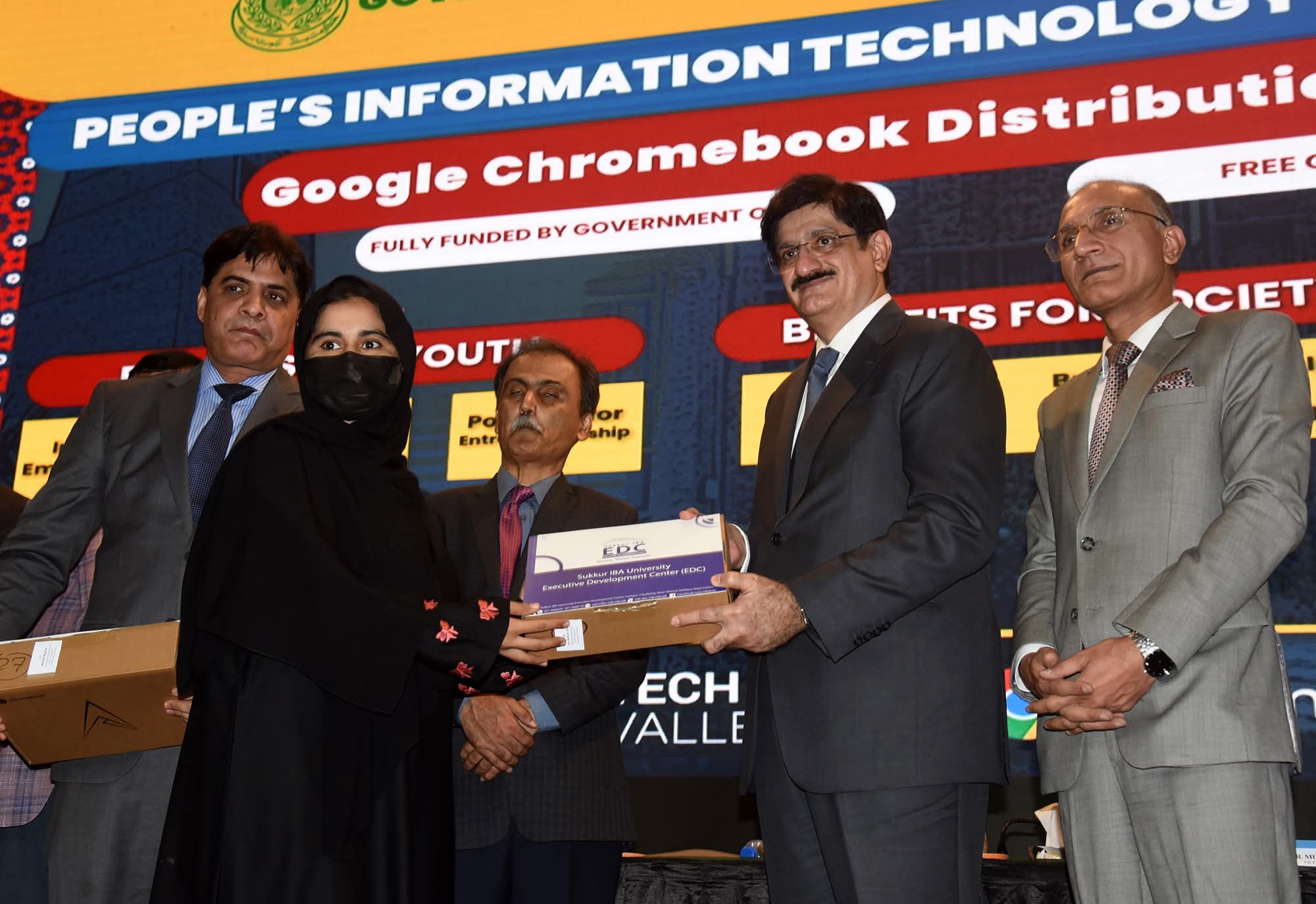 سکھر آئی بی اے میں حاضری (70 فیصد)، امتحانی نمبر (20 فیصد) اور فری لانسنگ/آن لائن آمدنی (10 فیصد) – 86 طلبہ منتخب؛ 14 باقی ہیں۔کروم بک حاصل کرنے والے طلبہ کے لیے تربیت اپریل 2025 میں گوگل کے پاکستان میں شراکت دار ٹیک ویلی کے ذریعے کرائی جائے گی جس کے بعد مئی 2025 میں ایوارڈ کی تقاریب منعقد ہوں گی جہاں وزیراعلیٰ یا متعلقہ وزیر سرٹیفکیٹس اور کروم بکس تقسیم کریں گے۔