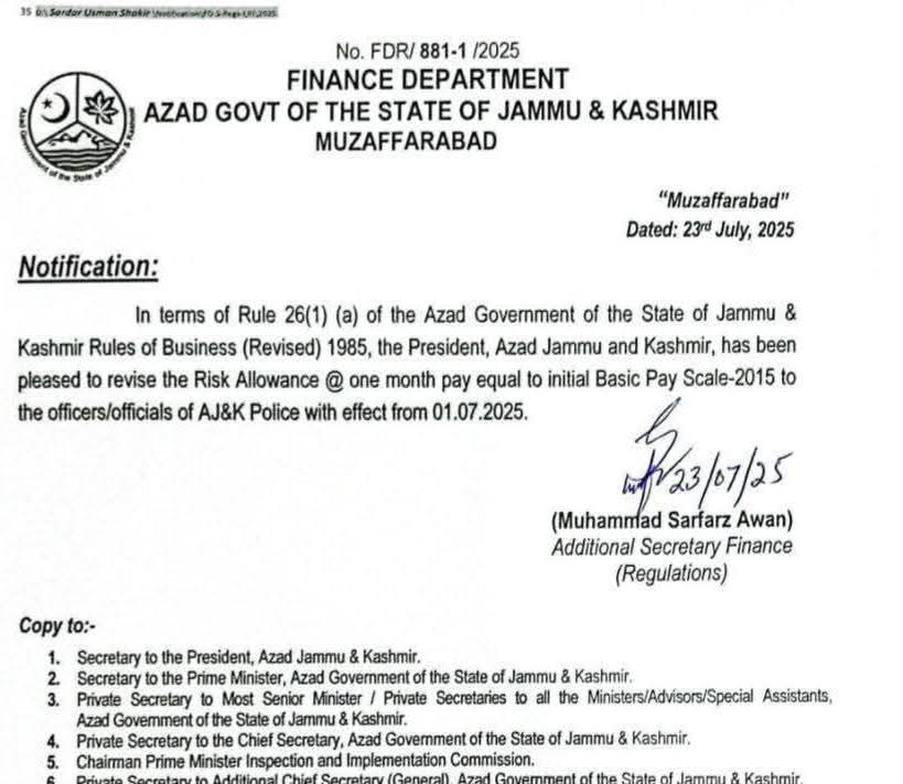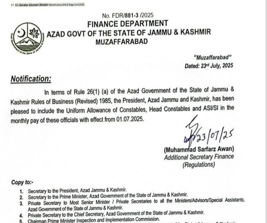 حکومت آزاد کشمیر نے ضروری خدمات کے9 محکموں کو پیٹرول ایمرجنسی پروگرام سے نکال دیا