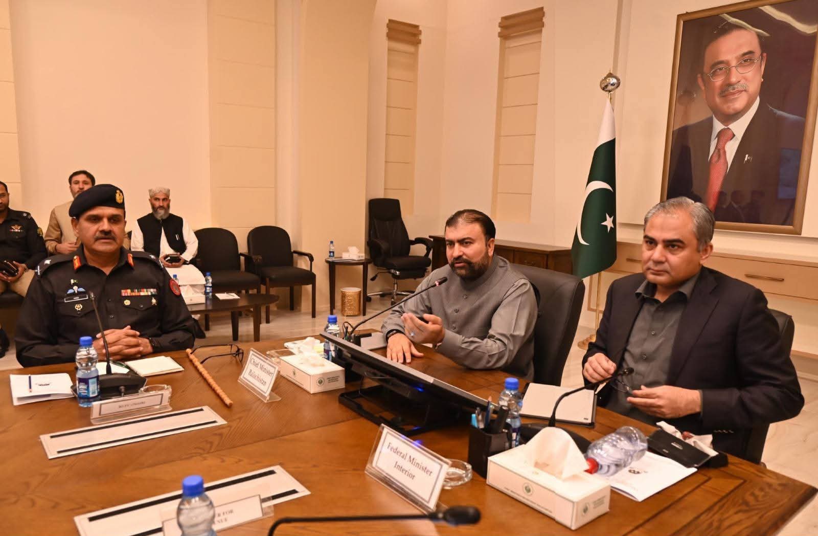 وزیر اعلیٰ میر سرفراز بگٹی نے اجلاس کو امن و امان کی موجودہ صورتحال، سیکیورٹی اداروں کی حکمت عملی، اور صوبائی ایکشن پلان پر عملدرآمد کے حوالے سے بریفنگ دی۔ اجلاس میں اس بات کا تفصیلی جائزہ لیا گیا کہ ایکشن پلان کی راہ میں کون سی رکاوٹیں حائل ہیں اور ان کا تدارک کیسے ممکن ہے وزیر اعلیٰ سرفراز بگٹی نے کہا کہ یہ جنگ صرف سیکیورٹی فورسز کی نہیں بلکہ پوری قوم کی جنگ ہے۔ سب ورژن اور دہشتگردی میں ملوث عناصر کے خلاف کارروائیاں مزید تیز کر دی گئی ہیں۔ بلوچستان میں امن و امان کے قیام کے لیے ریاستی ادارے مکمل ہم آہنگی اور سنجیدگی کے ساتھ سرگرم عمل ہیں۔ انہوں نے زور دیا کہ سیکیورٹی فورسز اور عوام کی قربانیاں رائیگاں نہیں جائیں گی اور حکومت ہر قیمت پر صوبے میں امن قائم کرے گی۔ وزیر اعلیٰ نے کہا کہ دشمن کے ناپاک عزائم کو ناکام بنانے کے لیے قوم میں مکمل اتحاد اور اعتماد موجود ہے وفاقی وزیر داخلہ محسن نقوی نے اجلاس سے خطاب کرتے ہوئے کہا کہ فتنہ الہندوستان کے دہشتگردوں کا انجام عبرتناک موت ہے۔ انہوں نے کہا کہ بھارتی اسپانسرڈ دہشتگرد اور ان کے سہولت کار پاکستان میں کسی جگہ محفوظ نہیں، انہیں ہر حال میں منطقی انجام تک پہنچایا جائے گا۔ ریاستی رٹ کو چیلنج کرنے والوں کے ساتھ آہنی ہاتھوں سے نمٹا جائے گا محسن نقوی نے اس موقع پر بلوچستان میں قیام امن کے لیے وفاقی حکومت کی جانب سے مکمل تعاون کی یقین دہانی کراتے ہوئے کہا کہ دہشتگردی کے خلاف جنگ میں بلوچستان حکومت کے ساتھ کھڑے ہیں۔ انہوں نے واضح کیا کہ پاکستان دشمن عناصر کے لیے زمین تنگ کر دی گئی ہے اور اس ضمن میں وفاق اور صوبائی حکومت کے درمیان مکمل ہم آہنگی موجود ہے۔