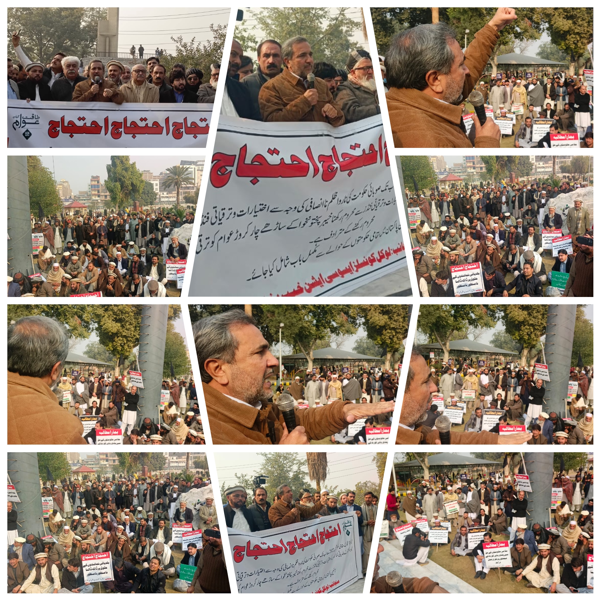 خیبرپختونخوا میں مضبوط مستحکم فعال بلدیاتی نظام، مقامی حکومتوں کے حل طلب مسائل کے حل کے لیے, پی ٹی آئی صوبائی حکومت کیطرف سے بار بار کیے گئے وعدوں سے انحراف کیخلاف لوکل کونسلز ایسوسی ایشن خیبرپختونخوا صدر ایسوسی ایشن مئیر مردان حمایت اللہ مایار کی زیر قیادت بلدیاتی نمائندوں کا بھرپور احتجاج ریکارڈ جس میں خیبرپختونخوا کے مختلف اضلاع سے بلدیاتی نمائندوں نے شرکت کرتے ہوئے بلدیاتی حل طلب مسائل اور صوبائی حکومت کی عدم دلچسپی پر اظہار خیال کیا۔پرامن بھرپور احتجاج سے خطاب کرتے ہوئے مئیر مردان حمایت اللہ مایار، عزیز اللہ مروت،کوارڈنیٹر لوکل کونسلز ایسوسی ایشن انتظار خلیل، ارباب وصال، رفیع اللہ، محمد حمزہ، نور قدیم شاہ، مفتی غلام اللہ خان، مفتی کفیل، ہارون صفت، حاجی کلیم اللہ، ظہور احمد، سید بارشاہ، سعود خان و دیگر نے گزشتہ چار سال سے مفلوج بلدیاتی نظام، مقامی حکومتوں کیساتھ جاری بدترین ناروا ظلم پر اظہار خیال کرتے ہوئے کہنا تھا کہ خیبرپختونخوا میں مقامی حکومتوں کا نظام مفلوج ہے صوبائی حکومت نے گزشتہ چار سال سے خیبرپختونخوا کے مقامی حکومتوں کو مفلوج بنائے رکھا ہے۔ لوکل کونسلز ایسوسی ایشن خیبرپختونخوا کی قیادت میں متعدد بار پرامن احتجاج کیے مختلف احتجاجوں کے موقع پر صوبائی حکومت کی ایما پر بلدیاتی نمائندوں پر شدید لاٹھی چارج کی گئی، بلدیاتی نمائندوں کو گرفتار کیا گیا، بلدیاتی نمائندے زخمی ہوئے مگر بلدیاتی نمائندوں کے حوصلے اج بھی چٹان کیطرح مضبوط ہیں۔ بلدیاتی نمائندوں کا احتجاج میٹروپولیٹن سے مئیر حمایت اللہ مایار کی قیادت میں جناح پارک میں جاری رہا نماز ظہر کے بعد احتجاج شرکاء نے صوبائی اسمبلی کیطرف پرامن واک کرتے ہوئے شدید احتجاج ریکارڈ کیا گیا۔