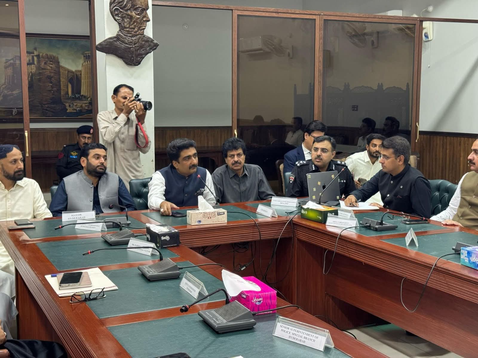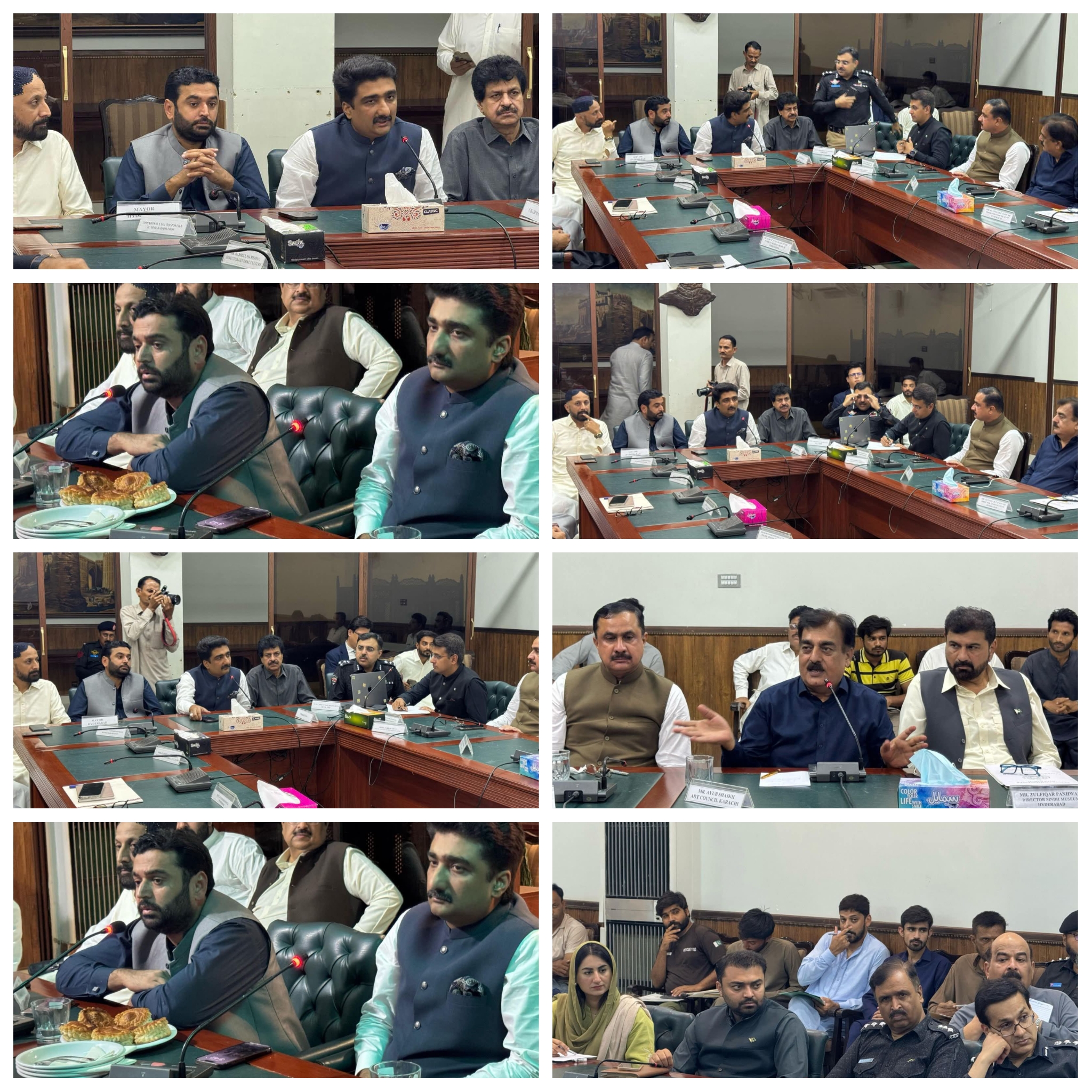 میئر حیدرآباد کاشف علی شورو نے یومِ آزادی 14 آگست 2025 اور “مارکۂ حق” کی تقریبات کے حوالے سے اہم اجلاس میں شرکت کی۔ اجلاس کی صدارت صوبائی وزیر برائے ثقافت، سیاحت، نوادرات و آرکائیوز حکومت سندھ نے کی۔اجلاس میں سندھ حکومت کے معاونِ خصوصی برائے محکمہ خوراک عبدالجبار خان، ڈی آئی جی پولیس حیدرآباد رینج، ڈپٹی کمشنر حیدرآباد، ایس ایس پی حیدرآباد، میونسپل کمشنر بلدیہ اعلیٰ حیدرآباد سمیت دیگر متعلقہ افسران نے بھی شرکت کی۔