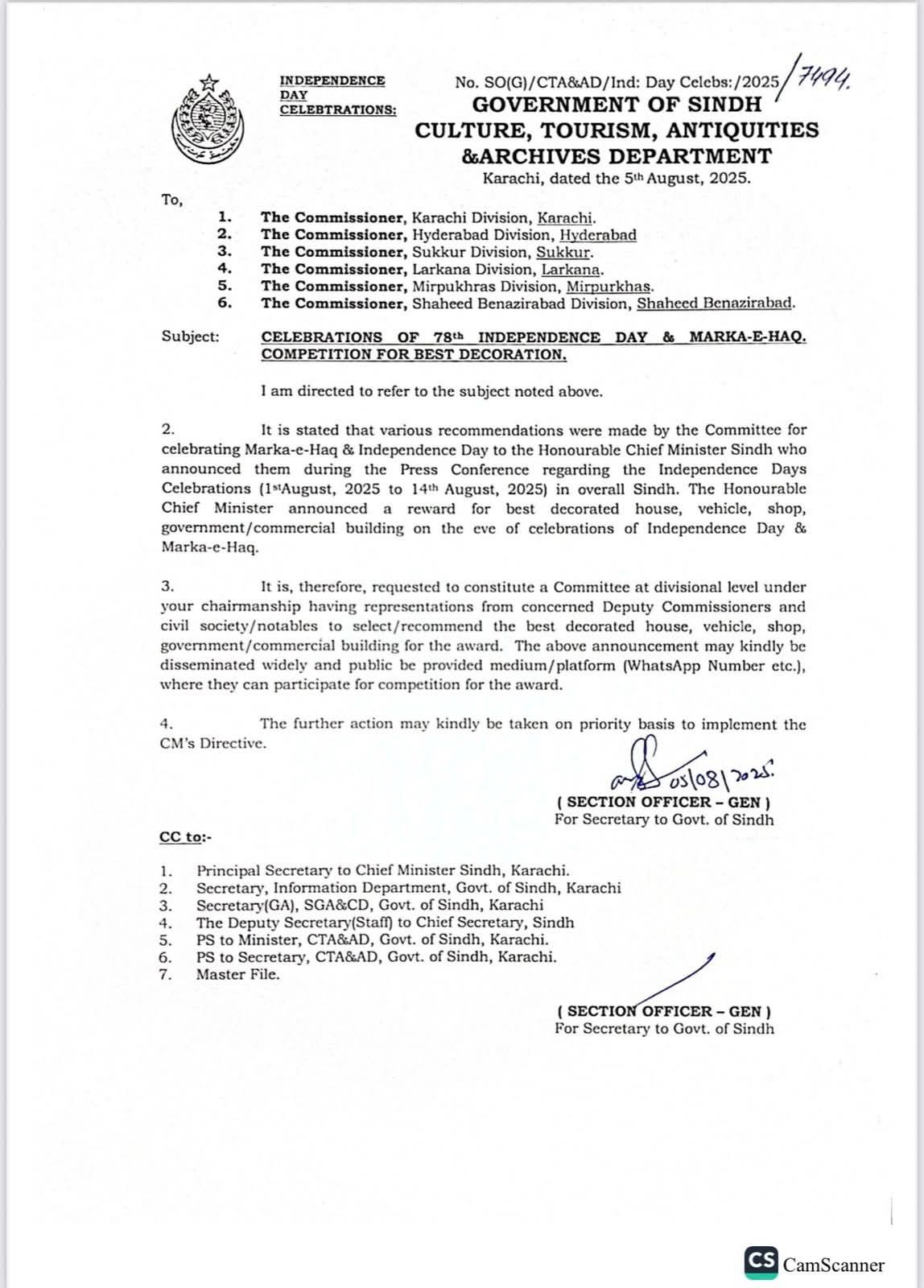 جشن آزادی معرکہ حق وزیراعلٰی سندھ کے اعلان پر محکمہ ثقافت و سیاحت کا اہم اقدام،جشن آزادی کے موقع پر بہترین ملی نغمہ پیش کرنے گھر گاڑی دکان بلڈنگ بہتر سجانے پر سندھ حکومت کی جانب سے انعام دیا جائے گا۔صوبائی وزیر ثقافت و سیاحت سید ذوالفقار علی شاہ کی ہدایت پر محکمہ ثقافت و سیاحت نے نوٹیفکیشن جاری کردیا۔