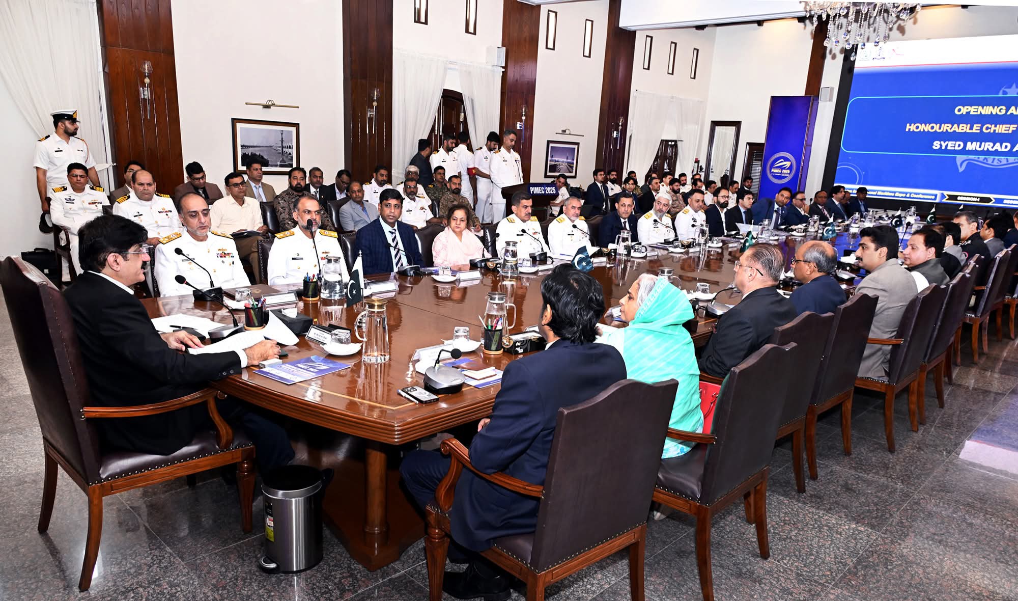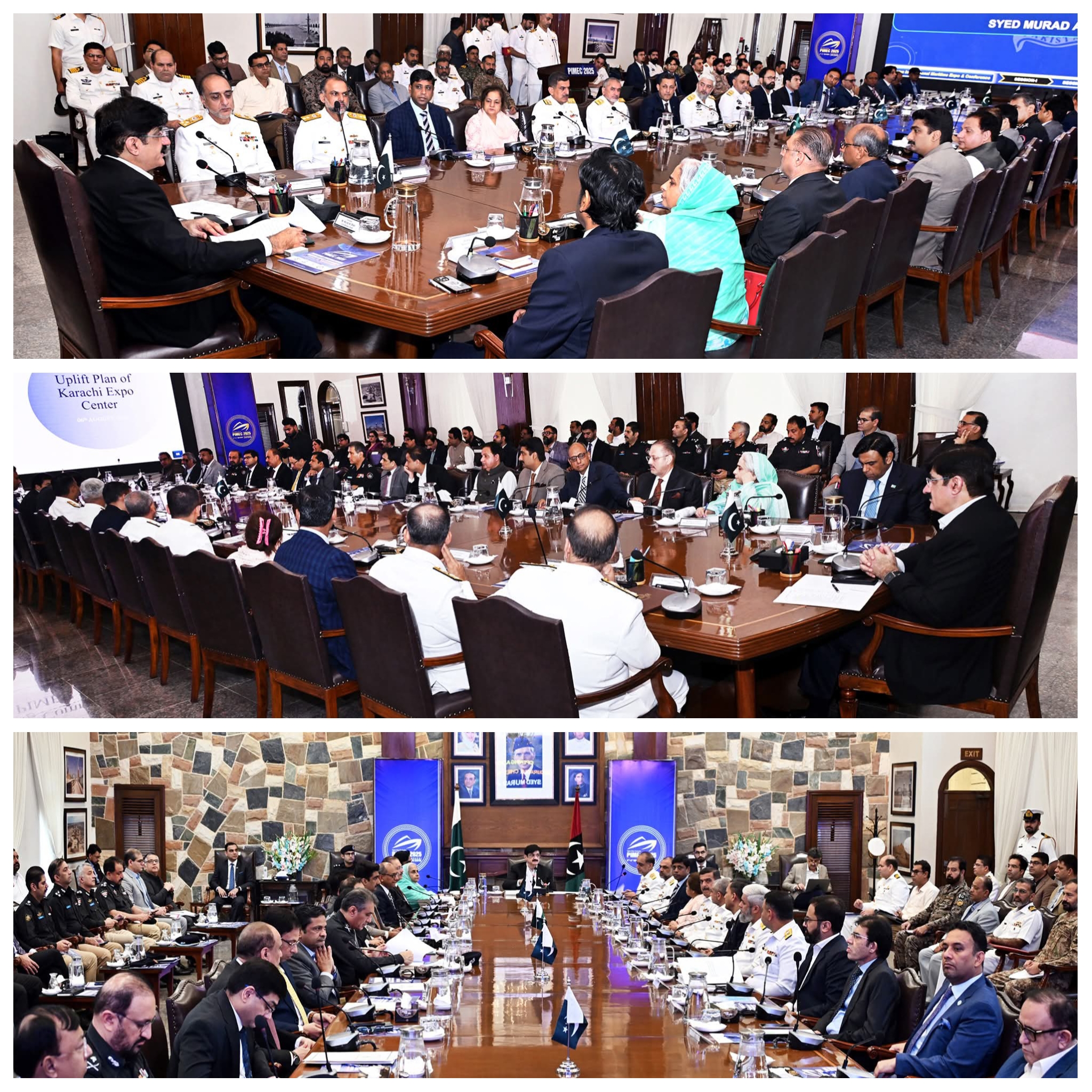 وزیراعلیٰ نے 2023 میں منعقدہ پہلی PIMEC کی کامیابی کو سراہتے ہوئے کہا کہ اس سال کی تقریب مزید وسیع پیمانے پر منعقد کی جائے گی، جس میں ملکی و غیر ملکی صنعتوں، تعلیمی اداروں اور حکومتی اداروں کی بھرپور شرکت متوقع ہے۔ انہوں نے اسے پاکستان کی میری ٹائم ڈپلومیسی، سرمایہ کاری کے ماحول اور ٹیکنالوجیکل خود انحصاری کو فروغ دینے کا سنگ میل قرار دیا۔وزیراعلیٰ نے تمام متعلقہ محکموں بشمول بلدیاتی حکومت (KMC)، واٹر بورڈ، قانون نافذ کرنے والے ادارے، ضلعی انتظامیہ اور ٹریفک پولیس کو ہدایت دی کہ ایونٹ کی مناسبت سے انفراسٹرکچر کی بہتری، سیکیورٹی انتظامات اور شہر کی خوبصورتی کے لیے فوری اقدامات کیے جائیں۔اجلاس میں شرکاء نے متفقہ طور پر PIMEC 2025 کی کامیابی کے لیے مکمل ادارہ جاتی تعاون کی یقین دہانی کراتے ہوئے اسے پاکستان کی مثبت شناخت اور معاشی ترقی کے لیے اہم قرار دیا۔