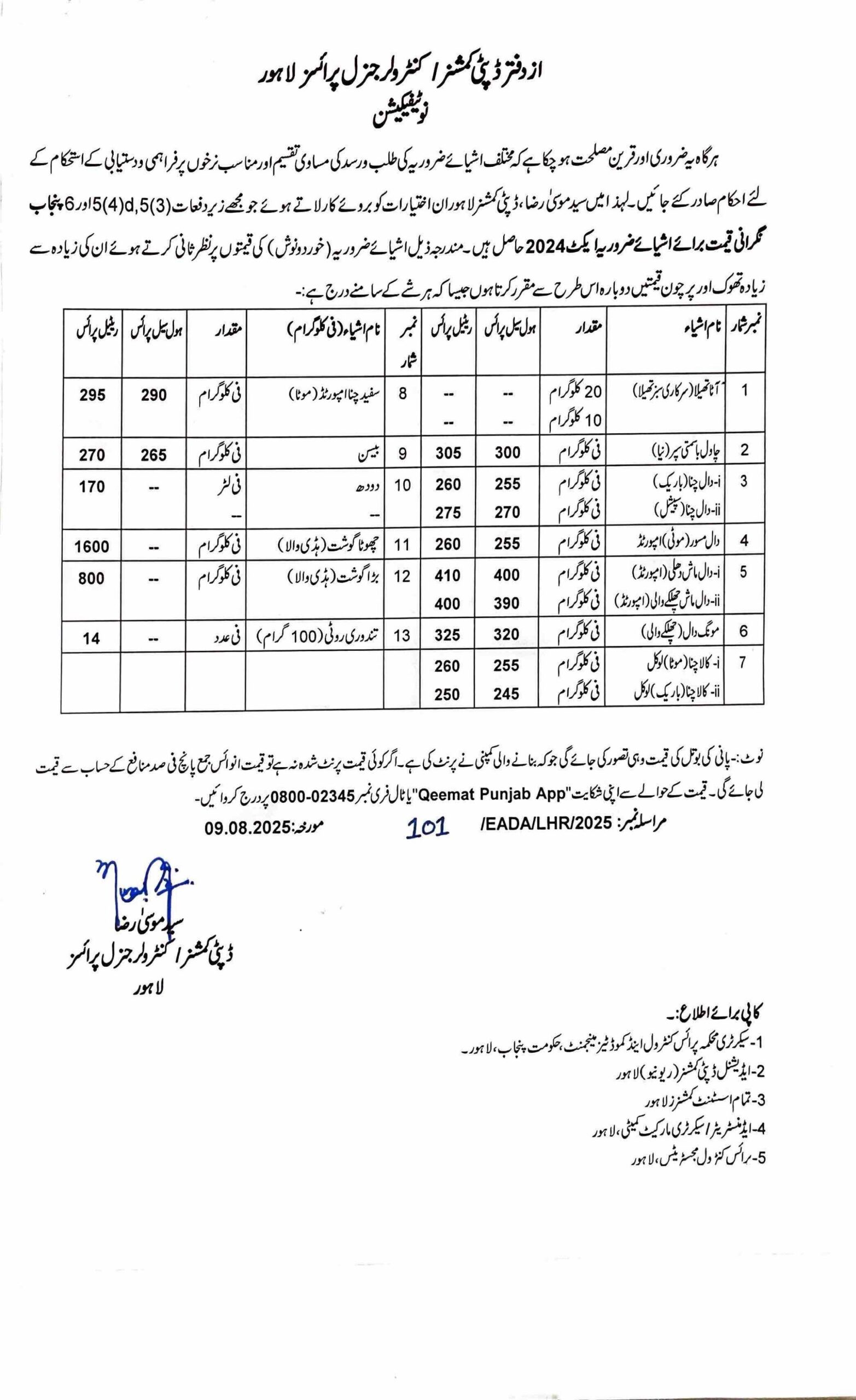 ڈپٹی کمشنر لاہور سید موسیٰ رضا کی زیرقیادت ضلعی انتظامیہ نے اپنی مؤثر حکمت عملی کے ذریعے شہریوں کو ریلیف فراہم کرنے میں قابل ذکر کامیابی حاصل کی ہے۔ انتظامیہ کی جانب سے جاری کردہ نئے نوٹیفکیشن کے تحت متعدد اشیائے ضروریہ کی قیمتوں میں نمایاں کمی کی گئی ہے جس سے لاہور کے لاکھوں شہریوں کو فوری ریلیف حاصل ہوا ہے۔ طلب و رسد میں توازن برقرار رکھنے کی مؤثر پالیسی کے نتیجے میں دال مونگ کی قیمت میں 60 روپے فی کلو کی سب سے بڑی کمی کرتے ہوئے اسے 325 روپے فی کلو مقرر کیا گیا ہے۔ اسی طرح دال ماش دھلی ہوئی 40 روپے سستی ہو کر 410 روپے فی کلو، بیسن 30 روپے کمی سے 270 روپے فی کلو، دال چنا اسپیشل 20 روپے کم ہو کر 275 روپے فی کلو اور کالا چنا موٹا 20 روپے کمی کے ساتھ 260 روپے فی کلو کر دیا گیا ہے۔ سفید چنا بھی 15 روپے سستا ہو کر 295 روپے فی کلو مقرر کیا گیا ہے۔ ڈپٹی کمشنر سید موسیٰ رضا نے واضح کیا کہ شہریوں کو ریلیف کی فراہمی انتظامیہ کی اولین ترجیح ہے۔ انہوں نے تمام دکانداروں کو ہدایت جاری کرتے ہوئے کہا کہ نئی قیمتوں کی فہرست نمایاں جگہ پر لازمی آویزاں کی جائے اور مقرر کردہ قیمتوں پر عملدرآمد ہر صورت یقینی بنایا جائے گا۔ ڈپٹی کمشنر نے زور دیتے ہوئے کہا کہ شہریوں کے حقوق کا تحفظ ضلعی انتظامیہ کی بنیادی ذمہ داری ہے اور اس سلسلے میں کوئی کمی برداشت نہیں کی جائے گی۔ دال مسور، دودھ، مٹن، بیف اور روٹی کی قیمتیں مستحکم رکھی گئی ہیں تاہم چاول کی قیمت میں معمولی اضافہ کیا گیا ہے۔ ضلعی انتظامیہ کی اس بروقت کارروائی سے نہ صرف مہنگائی کے خلاف جنگ میں ایک اہم پیش قدمی ہوئی ہے بلکہ عوام کو یقین دلایا گیا ہے کہ حکومتی مشینری ان کی بہبود کے لیے ہر وقت فعال ہے۔