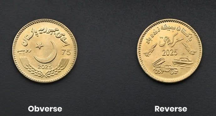 سکے کا وزن 13.5 گرام اور قطر 30 ملی میٹر ہے جبکہ تانبہ 79 فیصد، زنک 20 فیصد اور نکل ایک فیصد ہے۔سکّے کے سامنے کے رخ پر وسط میں بڑھتا ہوا ہلال اور پانچ نوکوں کا ابھرتا ہوا ستارہ ہے جس کا رخ شمال مغرب کی طرف ہے۔ ستارے اور ہلال کے اوپر سکّے کے کنارے کے ساتھ ساتھ اردو میں ’اسلامی جمہوریہ پاکستان‘ کے الفاظ کندہ ہیں۔چاند کے نیچے اور گندم کی اوپر کی طرف خمیدہ دو بالیوں کے اوپرعددی صورت میں اجرا کا سال 2025 درج ہے۔ ستارے اور ہلال کے دائیں اور بائیں جانب بالترتیب سکّے کی مالیت جلی اعداد میں ’’75 ‘‘ اور اردو رسم الخط میں ’’روپیہ‘‘ تحریر ہے۔پچھلے رخ پر وسط میں اردو میں ’’معرکہ حق‘‘ اور ہندسوں میں ’’2025 ‘‘کے الفاظ درج ہیں۔سکّے کے بالائی کناروں پر اردو میں ’پاکستان ہمیشہ زندہ باد‘ رقم ہے۔ سکّے کے پچھلے رخ پر (دائیں اور بائیں جانب ) دو لڑاکا طیارے، بحری جہاز، ملٹی پل راکٹ لانچر سسٹم ابھرے ہوئے دکھائی دیتے ہیں۔یادگاری سکّہ اسٹیٹ بینک بینکنگ سروسز کارپوریشن کے فیلڈ دفاتر کے ایکسچینج کاونٹرز پر آج 15 اگست 2025 سے دستیاب ہیں ۔