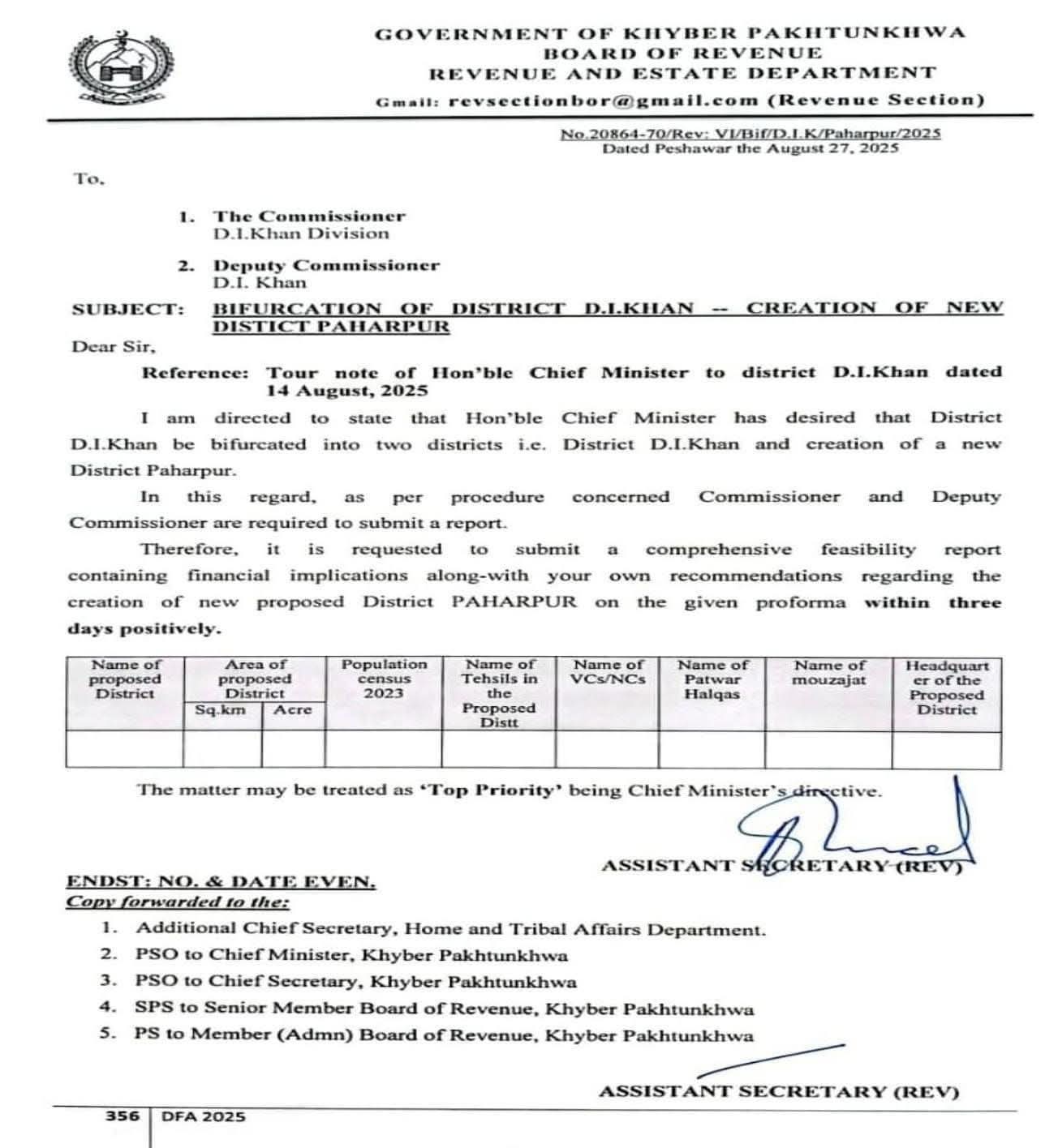 اسسٹنٹ ڈائریکٹر محکمہ بلدیات و دیہی ترقی تحصیل حسن خیل پشاور ملک ارشد خان کی جانب سے تمام ویلیج کونسل سیکرٹریز کو ہدایت جاری