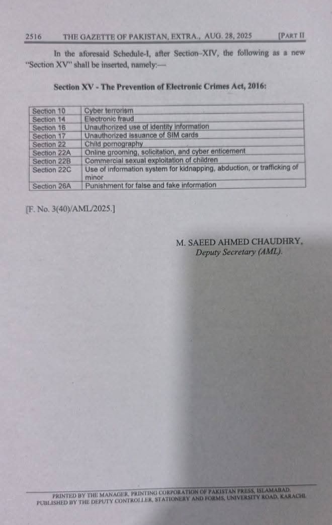 جھوٹی اور فیک معلومات پھیلانے والوں کے خلاف بھی کارروائی اینٹی منی لانڈرنگ ایکٹ کے تحت ممکن ہوگی۔گزٹ نوٹیفکیشن جاری کر دیا گیا ہے۔