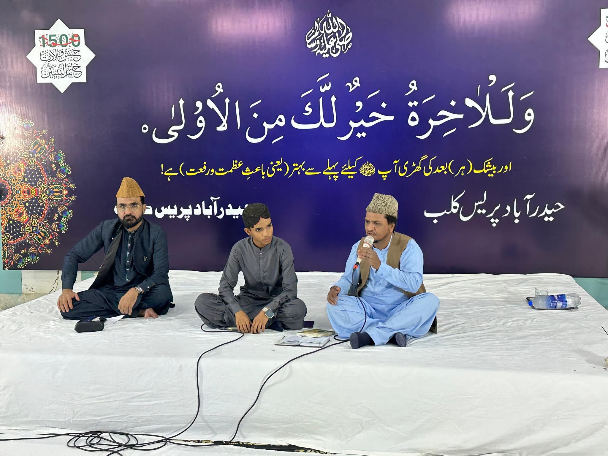 میئر حیدرآباد کاشف خان شورو نے بھی محفل سے خطاب کرتے ہوئے کہا کہ میلادالنبی ﷺ کا پیغام پوری انسانیت کے لیے ہدایت و روشنی ہے، ہمیں اپنی انفرادی و اجتماعی زندگی کو اسوۂ رسول ﷺ کے مطابق گزارنے کی ضرورت ہے۔