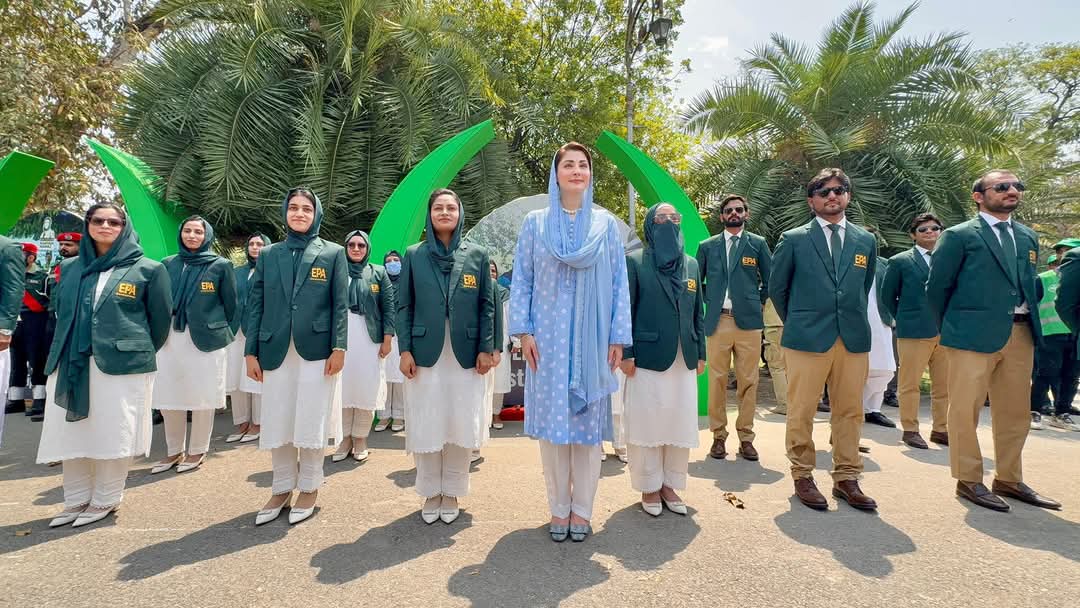 وزیراعلیٰ پنجاب مریم نوازشریف نے پاکستان کے پہلے اور منفرد انوائرمنٹ پروٹیکشن فورس سکواڈ کی بنیاد رکھ دی ہے۔ وزیراعلیٰ مریم نوازشریف نے انوائرمنٹ پروٹیکشن فورس پہلی پاسنگ آؤٹ پریڈ میں شرکت کی۔وزیراعلیٰ مریم نوازشریف نے انوائرمنٹل اپرول مینجمنٹ سسٹم اور گاڑیوں کے لئے ایمیشن ٹیسٹنگ سسٹم لانچنگ کی۔ ایمیشن ٹیسٹ سسٹم کے تحت جانچ پڑتال کے بعد وزیراعلیٰ مریم نوازشریف نے اپنی گاڑی کو پہلا ای ٹی ایس سٹیکر بھی لگایا۔ وزیراعلی پنجاب مریم نواز شریف نے انوائرمنٹ پروٹیکشن اتھارٹی کے جھنڈے کی پرچم کشائی کی۔ سینئر صوبائی وزیر مریم اورنگزیب نے انوائرمنٹ پروٹیکشن فورس کے اقدامات پر تفصیلی روشنی ڈالی اور ای ایم ایس سسٹم سے آگاہ کیا۔ انوائرمنٹ پروٹیکشن فورس کا ای بائیکس سکواڈ ایکوفرینڈلی یونٹ کے طور پر کام کرے گا۔ گرین سکواڈ اربن ایریا میں اینٹی پلاسٹک کمپین، ڈسٹ اور ڈینگی کنٹرول کے لئے کام کرے گا۔ انوائرمنٹ پروٹیکشن فورس کا بلیو سکواڈ آبی ذخائرکو محفوظ بنانے کے لئے کاوشیں کرے گا۔ گاڑیوں کے فیول کی ٹیسٹنگ اور زہریلے دھویں کے خلاف بلیک سکواڈ کا م کرے گا۔ انوائرمنٹ پروٹیکشن فورس کا ریڈ سکواڈ صنعتی علاقے اور ہسپتالوں میں مضر صحت مواد سے بچاؤکے لئے کام کرے گا۔ ہاک آئی سکواڈ 360 ڈگری لائیو کیمرہ بردار گاڑیوں اوراندھیرے میں دیکھنے والے 11تھرمل ڈرون کے ساتھ ماحولیاتی نگرانی کرے گا۔ ماحولیاتی خطرات سے بچاؤ کے لئے خصوصی اربن پٹرولنگ اینڈ ویجی لینس سکواڈ کام کرے گا۔ انوائرمنٹ پروٹیکشن فورس کا برک کلن سکواڈ 8خصوصی ڈبل کیبن گاڑیوں پر بھٹوں کی نگرانی کرے گا۔ اینٹی پلاسٹک اور فیوجیٹو ڈسٹ سکواڈ پلاسٹک اور ڈسٹ آلودگی کے خاتمے کے لئے کوشاں ہوگا۔ پوائنٹ سورس پلوشن مانیٹرنگ سکواڈماحولیاتی آلودگی پھیلانے والے عناصر کی مانیٹرنگ کرے گا۔ موبائل ایئر کوالٹی مانیٹرنگ سٹیشن کے ذریعے متعلقہ علاقوں میں ایئر کوالٹی پر چیک رکھا جائے گا۔ وزیراعلی مریم نواز شریف تقریب کے بعد انوائرمنٹ فورس کے پاس گئیں اور انوائرمنٹ پروٹیکشن فورس کے نوجوان بچے اور بچیوں کو سراہا۔