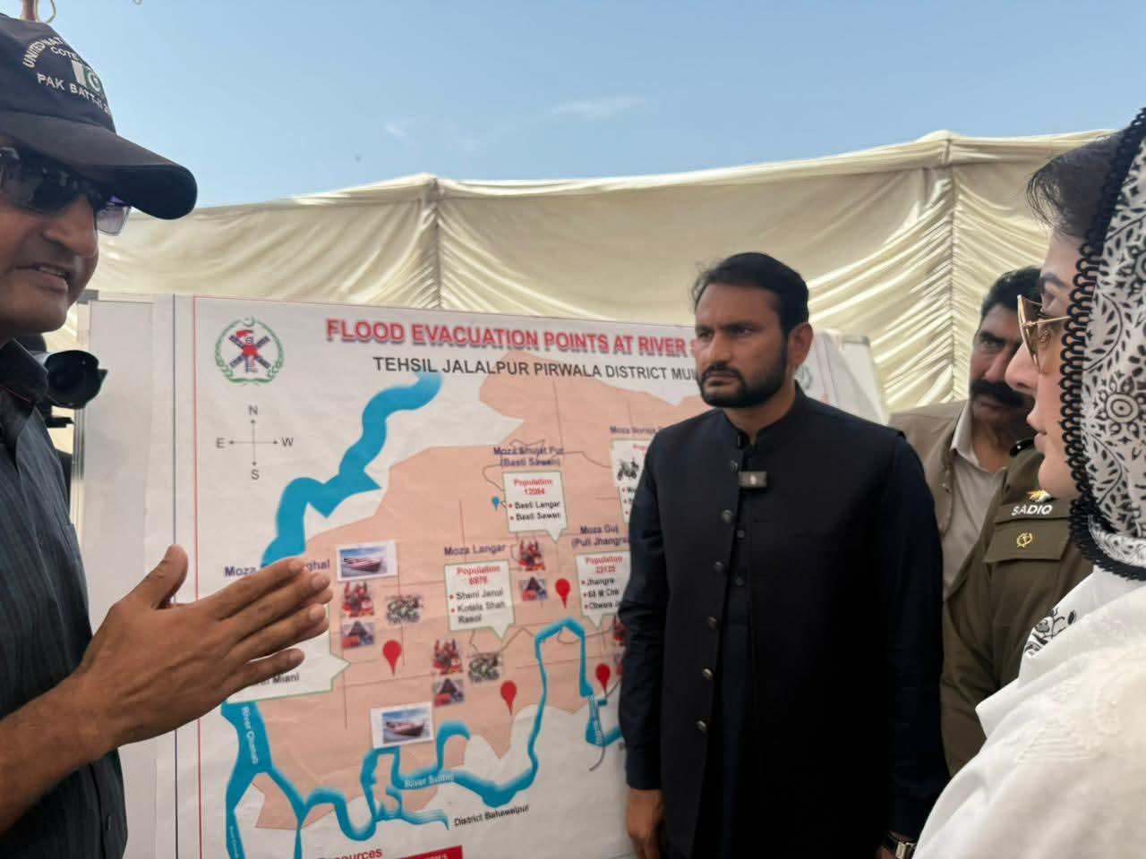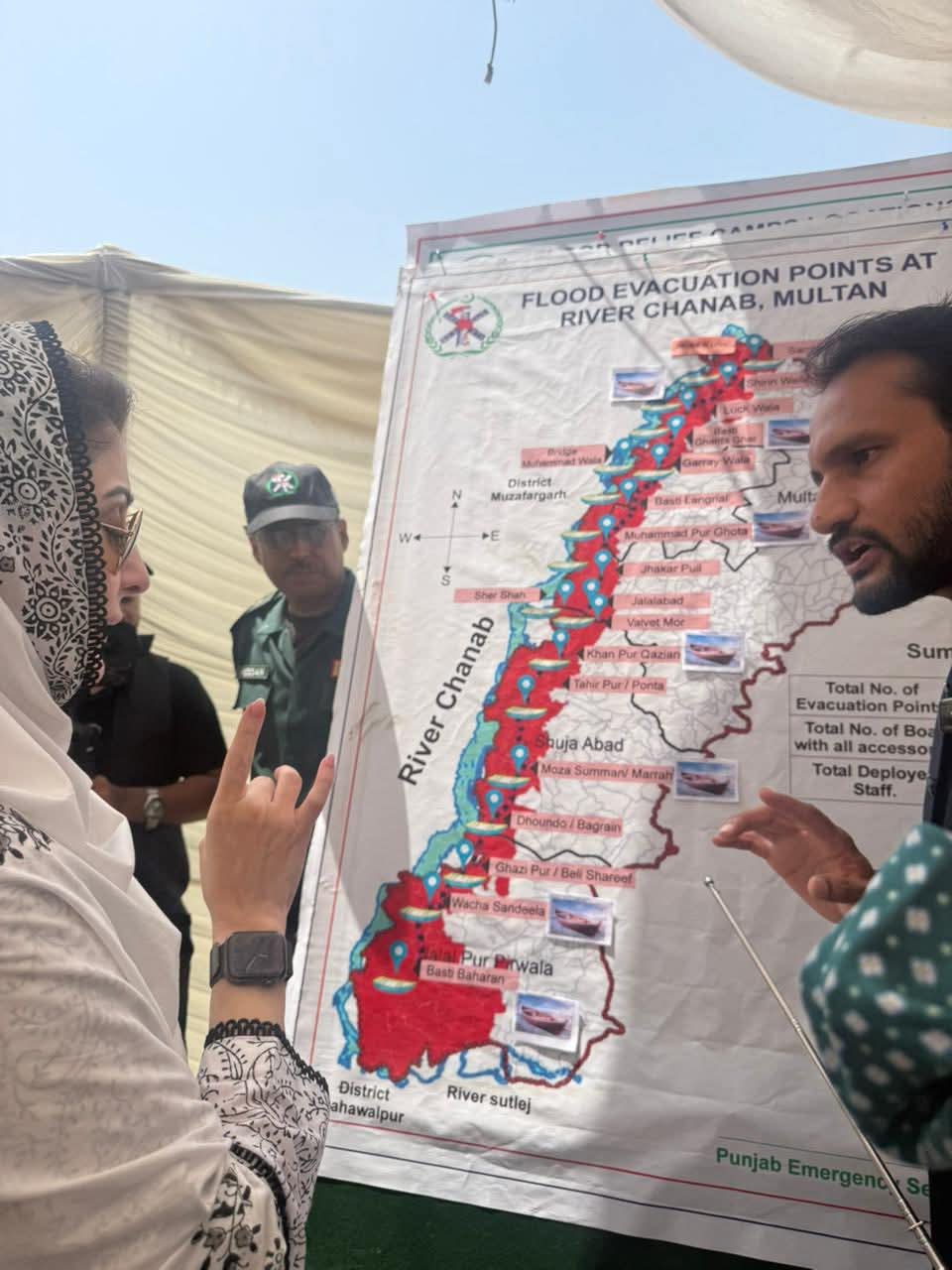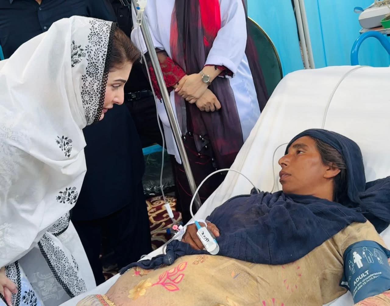 متاثرہ بزرگ خاتون نے وزیراعلیٰ مریم نواز شریف سے گفتگو کرتے ہوئے کہا کہ ”تساں دے مہربانی ایں، ساڈا ہال گہنن اے گئے ہو“۔ وزیراعلیٰ مریم نواز شریف نے متاثرہ خاندان سے کہا کہ میں سیلاب میں پھنسے اپنے بہن بھائیوں کا دکھ درد بانٹنے آئی ہوں۔ مجھے خوشی ہے کہ آپ اور آپ کے مال مویشی خیریت سے باہر آگئے۔وزیراعلیٰ مریم نواز شریف نے تھرمل امیجنگ ڈرون کی مدد سے متاثرین کی نشاندہی کے عمل کا بھی مشاہدہ کیا۔ تھرمل امیجنگ کیمرہ آٹھ کلو میٹر تک مسلسل 45 منٹ تک پرواز کر سکتا ہے۔ وزیراعلیٰ مریم نواز شریف نے پی ڈی ایم اے کی ڈیزاسٹر وین میں بیٹھ کرسیلابی صورتحال کا لائیو مشاہدہ کیا۔ وزیراعلیٰ مریم نواز شریف نے پی ڈی ایم اے کو مزید ڈیزاسٹر وین مہیا کرنے کی ہدایت کی۔ کمشنر ملتان عامر کریم خاں اور ڈپٹی کمشنر وسیم سندھو نے وزیراعلیٰ مریم نواز شریف کو تازہ ترین صورتحال کے بارے میں بریفنگ دی۔ بریفنگ میں بتایا گیا کہ ضلع ملتان تقریباً 150فٹ طویل ایریا براہ راست سیلابی پانی سے متاثرہورہا ہے۔ ملتان کے علاقے میں سیلابی ریلوں سے 138 موضع متاثر ہوئے۔ ملتان میں تین لاکھ 64ہزار افراد متاثر ہوئے۔بریفنگ میں مزید بتایا گیا کہ سیلابی ریلے میں پھنسے ایک لاکھ 20ہزار سے زائد مویشیوں کو بحفاظت ریسکیو کیا۔ ملتان میں سیلاب متاثرین کے لئے 25فلڈ ریلیف کیمپ میں 7862متاثرین مقیم ہیں۔فلڈ ریلیف کیمپوں میں صبح، دوپہر اور شام کا کھانا دیا جاتا ہے، 24 گھنٹے ڈاکٹر اور طبی عملہ موجود رہتا ہے۔ وزیراعلیٰ مریم نواز شریف نے فلڈ ریلیف کیمپوں میں مچھر مار اور جراثیم کش ادویات کے سپرے کے بارے میں بھی دریافت کیا۔ وزیراعلیٰ مریم نواز شریف نے فلڈ ریلیف کیمپ میں مقیم بچوں کی دودھ اور دیگر ضروریات پوری کرنے کی بھی ہدایت کی۔