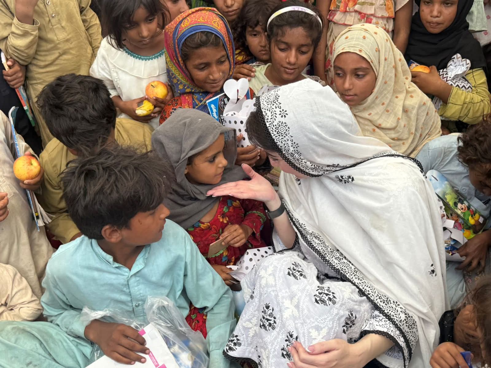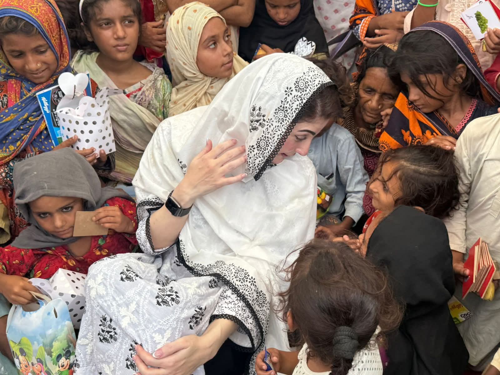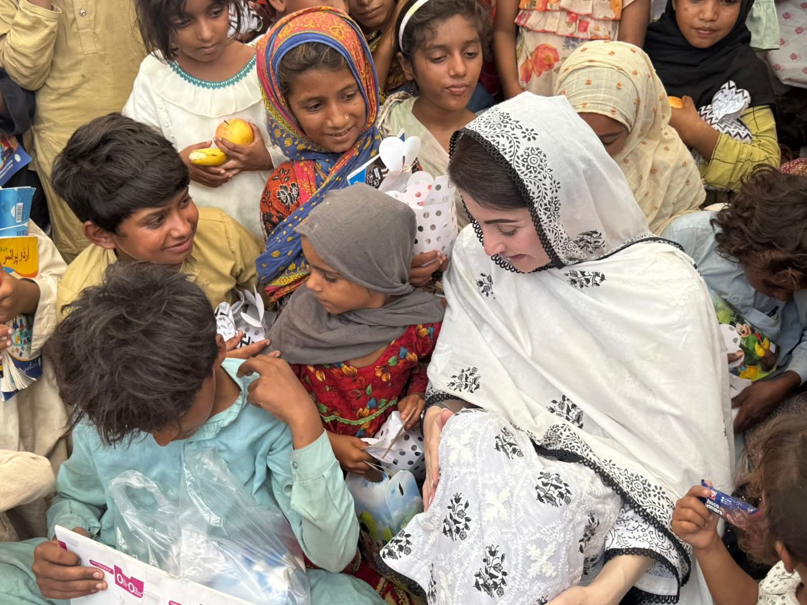 متاثرہ بزرگ خاتون نے وزیراعلیٰ مریم نواز شریف سے گفتگو کرتے ہوئے کہا کہ ”تساں دے مہربانی ایں، ساڈا ہال گہنن اے گئے ہو“۔ وزیراعلیٰ مریم نواز شریف نے متاثرہ خاندان سے کہا کہ میں سیلاب میں پھنسے اپنے بہن بھائیوں کا دکھ درد بانٹنے آئی ہوں۔ مجھے خوشی ہے کہ آپ اور آپ کے مال مویشی خیریت سے باہر آگئے۔وزیراعلیٰ مریم نواز شریف نے تھرمل امیجنگ ڈرون کی مدد سے متاثرین کی نشاندہی کے عمل کا بھی مشاہدہ کیا۔ تھرمل امیجنگ کیمرہ آٹھ کلو میٹر تک مسلسل 45 منٹ تک پرواز کر سکتا ہے۔ وزیراعلیٰ مریم نواز شریف نے پی ڈی ایم اے کی ڈیزاسٹر وین میں بیٹھ کرسیلابی صورتحال کا لائیو مشاہدہ کیا۔ وزیراعلیٰ مریم نواز شریف نے پی ڈی ایم اے کو مزید ڈیزاسٹر وین مہیا کرنے کی ہدایت کی۔ کمشنر ملتان عامر کریم خاں اور ڈپٹی کمشنر وسیم سندھو نے وزیراعلیٰ مریم نواز شریف کو تازہ ترین صورتحال کے بارے میں بریفنگ دی۔ بریفنگ میں بتایا گیا کہ ضلع ملتان تقریباً 150فٹ طویل ایریا براہ راست سیلابی پانی سے متاثرہورہا ہے۔ ملتان کے علاقے میں سیلابی ریلوں سے 138 موضع متاثر ہوئے۔ ملتان میں تین لاکھ 64ہزار افراد متاثر ہوئے۔بریفنگ میں مزید بتایا گیا کہ سیلابی ریلے میں پھنسے ایک لاکھ 20ہزار سے زائد مویشیوں کو بحفاظت ریسکیو کیا۔ ملتان میں سیلاب متاثرین کے لئے 25فلڈ ریلیف کیمپ میں 7862متاثرین مقیم ہیں۔فلڈ ریلیف کیمپوں میں صبح، دوپہر اور شام کا کھانا دیا جاتا ہے، 24 گھنٹے ڈاکٹر اور طبی عملہ موجود رہتا ہے۔ وزیراعلیٰ مریم نواز شریف نے فلڈ ریلیف کیمپوں میں مچھر مار اور جراثیم کش ادویات کے سپرے کے بارے میں بھی دریافت کیا۔ وزیراعلیٰ مریم نواز شریف نے فلڈ ریلیف کیمپ میں مقیم بچوں کی دودھ اور دیگر ضروریات پوری کرنے کی بھی ہدایت کی۔