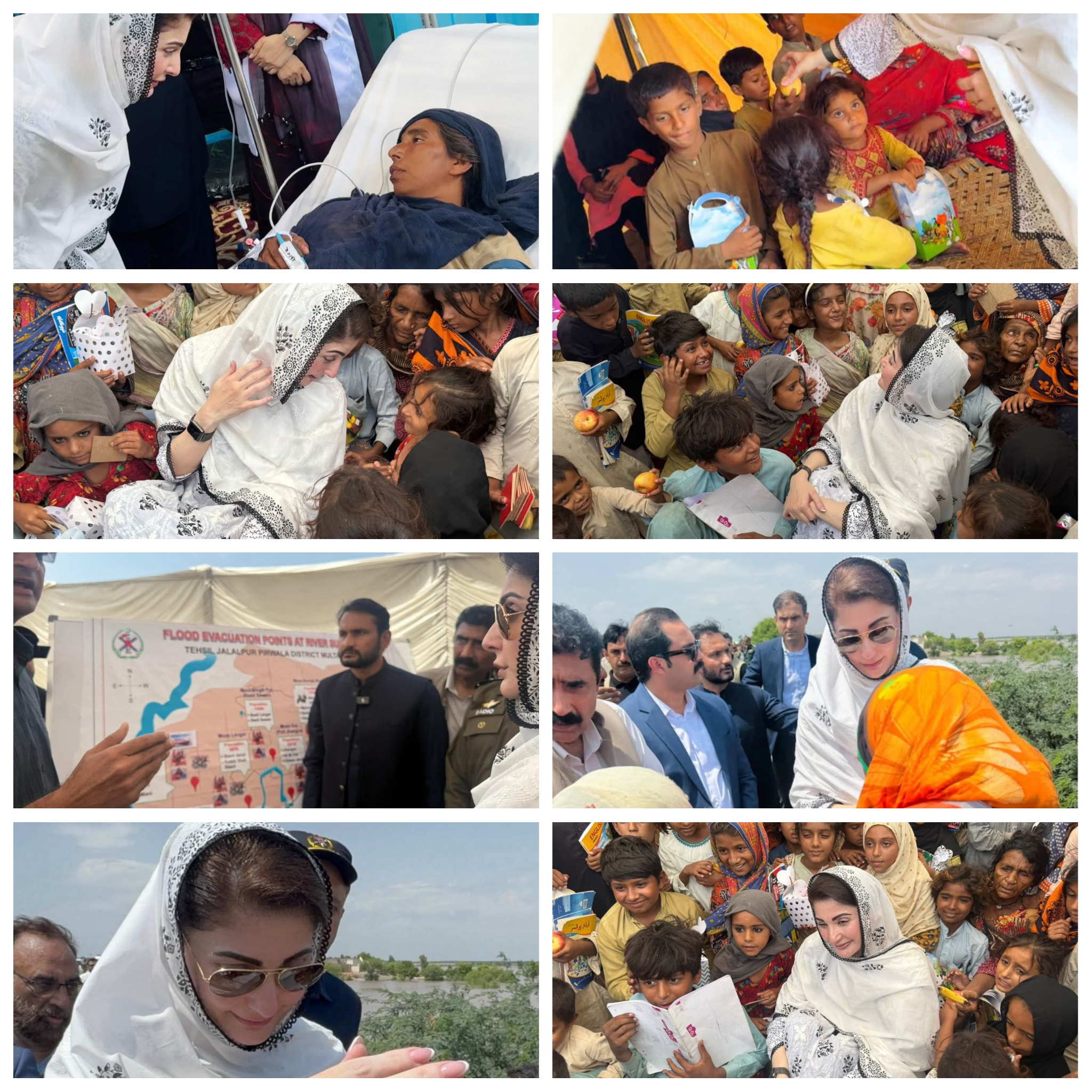 وزیراعلیٰ پنجاب مریم نواز شریف نے ملتان ہیڈ محمد والا بریچنگ پوائنٹ کا دورہ کیا اور سیلاب کی صورتحال کا جائزہ لیا۔ ملتان شہرکو بچانے پر ارکان پارلیمنٹ نے وزیراعلیٰ مریم نواز شریف کو خراج تحسین پیش کیا۔ وزیراعلیٰ مریم نواز شریف نے سیلابی ریلے میں پھنسے ہوئے خاندان کو کنارے سے خود ریسیو کیا۔ریسیکیو1122کی ٹیم دریائی بیلے میں پھنسے خاندان اور ان کے مال مویشیوں کو نکال کر باہر لائی۔ وزیراعلیٰ مریم نواز شریف سے متاثرہ خاندانوں نے اظہار تشکر کیا اور جان بچ جانے پر اللہ تعالیٰ کا شکر ادا کیا۔