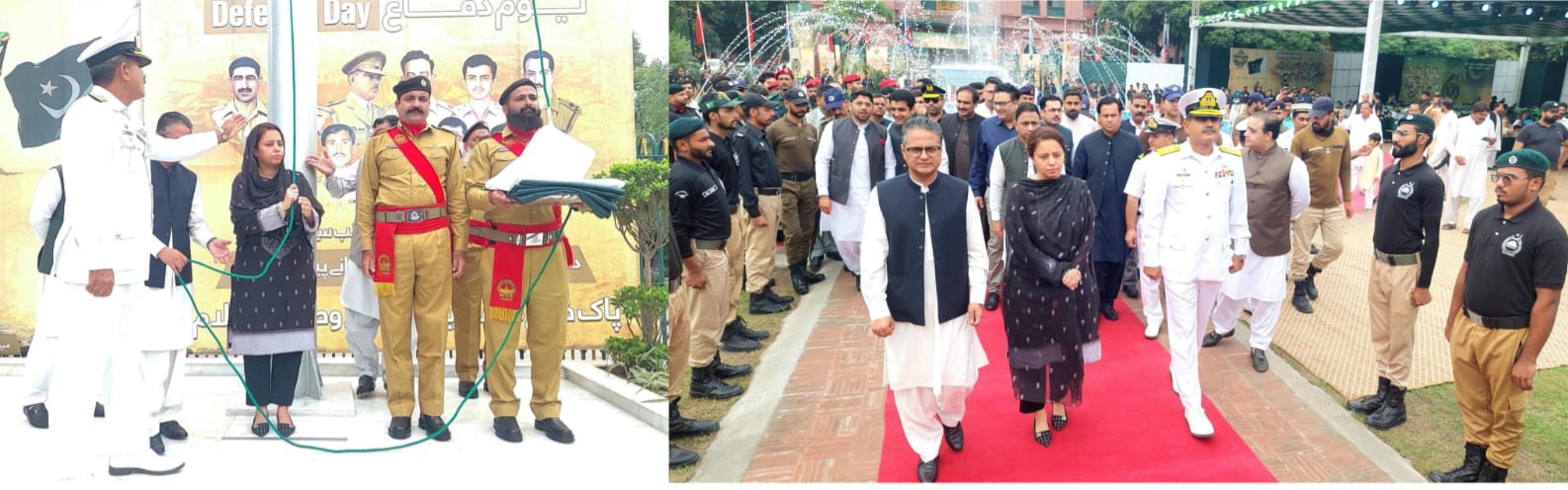 جناح ہال ٹاؤن ہال میں 6 ستمبر یوم دفاع ہلال استقلال پرچم کشائی کی پروقار پرعزم تقریب کا انعقاد کیا گیا۔ کمشنر لاہور مریم خان اور ڈی سی لاہور سید موسی رضا و پاک افواج افسران نے شرکت کی۔ کمشنرلاہور مریم خان اور ڈی سی لاہور سید موسی رضا کو پھولوں کے گلدستے پیش کئے گئے۔ کمشنر لاہور مریم خان نے ہلال استقلال یوم دفاع کا جھنڈا فضا میں لہرایا۔6ستمبر یوم دفاع کے حوالے سے تقریب کے آغاز میں سائرن بجایا گیا اور ایک منٹ کی خاموشی اختیار کی گئی، یوم دفاع تقریب میں پولیس دستہ و بینڈ نے خوبصورت انداز میں سلامی پیش کی، پولیس بینڈ کی دھنوں و مارچ اور نغموں نے فضا کو قومی جزبے سے سرشار کردیا ل۔ یوم دفاع تقریب میں سکاوٹس و سول ڈیفنس نے پریڈ کے ساتھ اللہ اکبر کے پر جوش نعرے لگائے۔ کمشنر لاہور مریم خان نے یوم دفاع پاکستان کے موقع پر کہا کہ پاکستان کی مٹی میں بہادری، محنت اور وفا کا جذبہ موجود ہے، سلام ماؤں کو، والدین کو جنہوں نے وطن کیلئے جان قربان کرنے والے سپوت پیدا کیے، کمشنر لاہور نے کہا کہ پاکستان کو صرف دیانتدای اور محنت کے بل بوتے پر ترقی یافتہ بنایا جاسکتا ہے۔ کمشنر لاہور نے کہا کہ لاہور شہر کیلئے ہلال استقلال عظیم اعزاز ہے، ہلال استقلال یوم دفاع کی تقریب کو ٹاون ہال میں شایان شان طریقے سے منایا گیا۔ ڈی سی لاہور سید موسیٰ رضا نے کہا کہ یہ دن ہمارے شہدا کی عظیم قربانیوں کی یاد دلاتا ہے جو ہمارے شہداء نے ملک کی حفاظت کے لیے پیش کیں، انہوں نے کہا کہ سرکاری سکولوں کے بچوں نے بھی ہلال استقلال یوم دفاع کی تقریبات میں پرفارم کیا، تقریب میں شہداء اور ان کی فیملیز کو بھرپور خراج عقیدت پیش کیا گیا۔