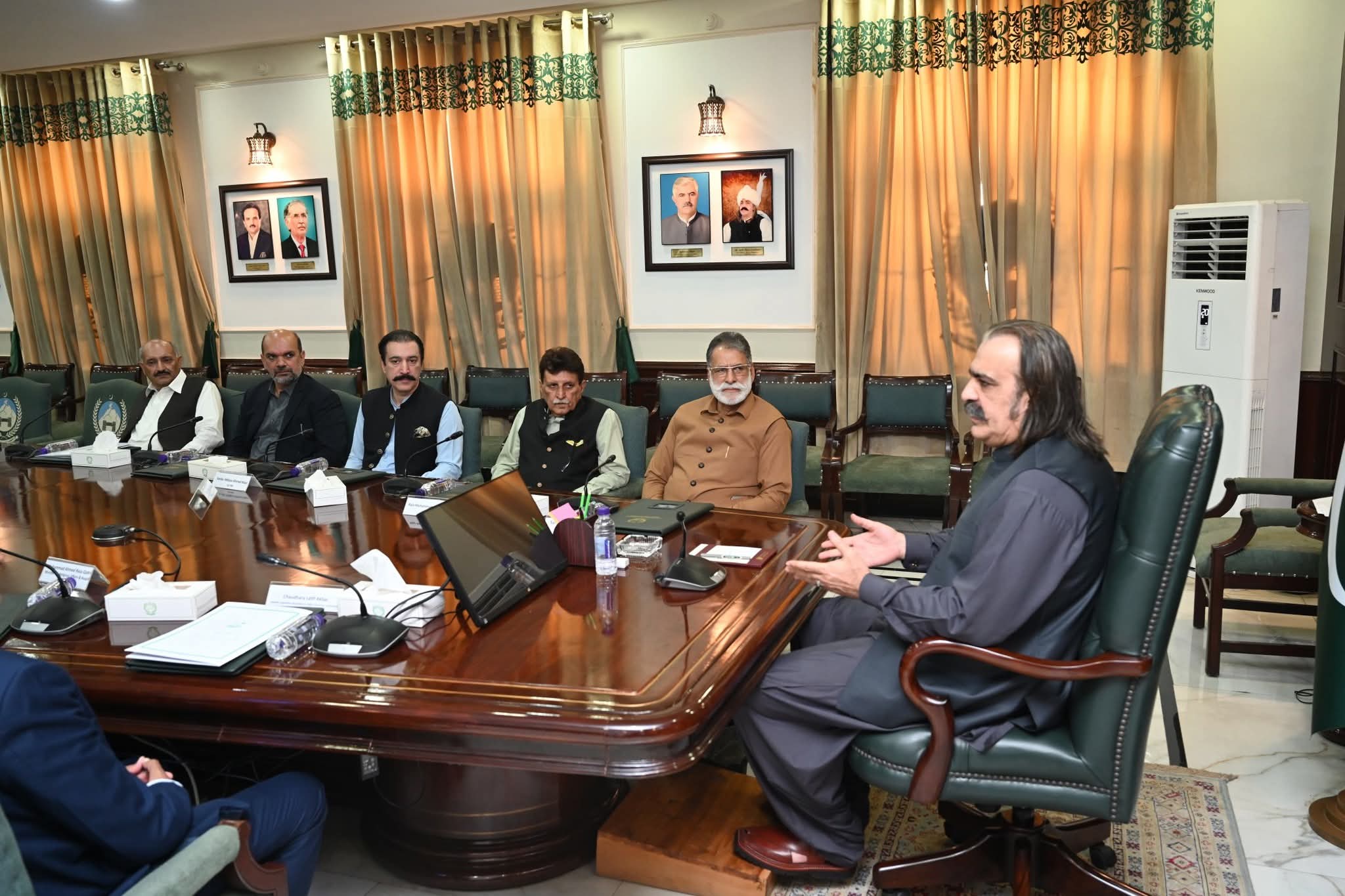 وزیر اعلیٰ خیبر پختونخوا علی امین خان گنڈاپور سے آزاد جموں و کشمیر کی قانون ساز اسمبلی کے وفد نے ملاقات کی۔وفد میں آزاد جموں وکشمیر قانون ساز اسمبلی کے اسپیکر چوہدری لطیف اکبر، سابق وزرائے اعظم راجہ فاروق حیدر، راجہ عتیق احمد خان اور سردار عبدالقیوم نیازی کے علاوہ قانون ساز اسمبلی کے ممبران شامل تھے۔ ملاقات میں کشمیر کے مسئلے کو بھر پور انداز میں بین الاقوامی سطح پر اجاگر کرنے سے متعلق معاملات پر گفتگو ہوئی۔وفد کا کہنا تھا کہ خیبر پختونخوا کے لوگوں نے ہمیشہ کشمیر کے لوگوں کا بھر پور ساتھ دیا ہے، کشمیر کاز کی بھر پور حمایت پر کشمیر کے عوام خیبر پختونخوا کے عوام اور حکومت کے شکرگزار ہیں۔بھارت نے یک طرفہ طور پر مقبوضہ کشمیر کی خصوصی حیثیت ختم کرکے ریاستی دہشتگردی کا مظاہرہ کیا ہے، پاکستان اور بھارت کے درمیان حالیہ جنگ میں پاکستان کو شاندار کامیابی ملی، اس جنگ سے کشمیر کا مسئلہ ایک دفعہ پھر بین الاقوامی سطح پر اجاگر ہوگیا، یہ ایک سنہرا موقع ہے اور ہم اس موقع کا بھر پور فائدہ اٹھا کر کشمیر کاز کو مؤثر انداز میں آگے بڑھائیں۔ مسئلہ کشمیر پر یکسوئی کے لئے ہمیں صوبوں اور وفاق کا مزید تعاون درکار ہے، اس سلسلے میں پاکستان کی چاروں صوبائی اسمبلیوں اور قومی اسمبلی میں کشمیر کاز کے حوالے سے متفقہ قراردادیں منظور کرائی جائیں۔