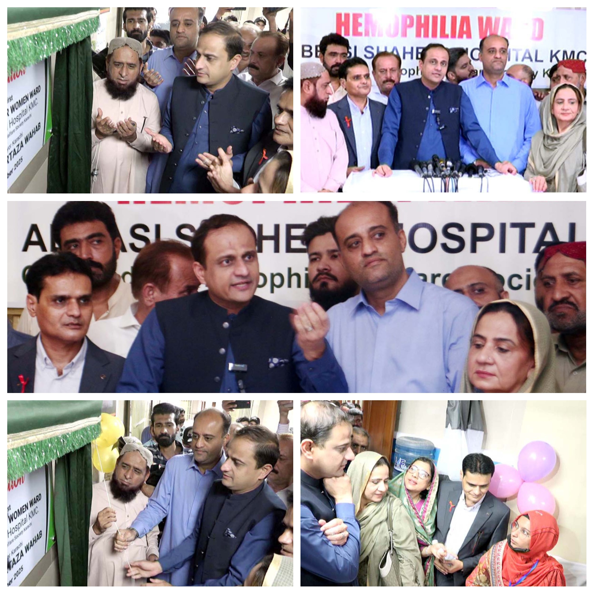 ڈپٹی میئر کراچی سلمان عبداللہ مراد، سٹی کونسل میں ڈپٹی پارلیمانی لیڈر دل محمد، جمن دروان، سینئر ڈائریکٹر میڈیکل سروسز، ڈاکٹرز اور پیرامیڈیکل اسٹاف بھی ان کے ہمراہ تھے، میئر کراچی نے کہا کہ ہیموفیلیا صرف مردوں کو ہی نہیں بلکہ خواتین کو بھی متاثر کر سکتا ہے لہٰذا اس وارڈ کا قیام ایک اہم اور مثبت قدم ہے،ایمرجنسی کی صورت میں فوری علاج کی سہولت بھی مہیا کی گئی ہے جس سے ہیموفیلیا مریض خواتین کو بہتر اور بروقت جدید اور مفت طبی امداد میسر آسکے گی، یہ سہولت عوام کے لیے امید کی نئی کرن ہے کیونکہ ہیموفیلیا جیسا مہنگا علاج اب ایک عام شہری کی دسترس میں آ گیا ہے، میئر کراچی بیرسٹر مرتضیٰ وہاب نے کہا کہ میں پاکستان ہیموفیلیا سوسائٹی اور خصوصاً عظمت اللہ لوند کا شکر گزار ہوں جنہوں نے بلدیہ عظمیٰ کراچی کے ساتھ پبلک پرائیویٹ پارٹنرشپ کے تحت اس نیک کام میں حصہ لیا، ہیموفیلیا کے علاج پر لاکھوں روپے اخراجات آتے ہیں جو ایک عام آدمی کی پہنچ سے باہر ہے، لوگ اکثر اس کے لیے دیسی ٹوٹکوں کا سہارا لیتے ہیں لیکن ان سے مسئلہ حل نہیں ہوتا، ایسے میں یہ وارڈ ایک بڑی سہولت ہے جہاں مریضوں کو معیاری علاج کے ساتھ ساتھ آگاہی بھی فراہم کی جائے گی،میئر کراچی نے کہا کہ چھ ماہ قبل پاکستان ہیموفیلیا سوسائٹی کے عہدیداران نے بلدیہ عظمیٰ کراچی سے رابطہ کیا اور کے ایم سی کے اسپتالوں میں ہیموفیلیا وارڈز کے قیام کی تجویز دی جبکہ اس مقصد کے لیے کے ایم سی نے جگہ فراہم کی اور علاج کی تمام سہولتیں عوام کو مہیا کی گئیں، اس سے قبل میل وارڈ کا قیام عمل میں لایا گیا تھا جس سے ہزاروں مریض مستفید ہو چکے ہیں اور اب خواتین کے لیے علیحدہ وارڈ قائم کردیا گیا ہے،انہوں نے کہا کہ ہیموفیلیا کے مریض صرف ضلع وسطی ہی نہیں بلکہ شہر کے ہر علاقے جیسے لیاری، آرام باغ، اسکیم 33، بنارس، اورنگی، لیاقت آباد، ملیر سمیت اندرون سندھ کے شہروں لاڑکانہ اور حیدرآباد سے بھی علاج کے لیے یہاں آتے ہیں، پرائیویٹ اسپتالوں میں جو سہولت لاکھوں اور کروڑوں روپے میں دستیاب ہے وہ اب عباسی شہید اسپتال میں مفت فراہم کی جا رہی ہے،میئر کراچی نے اس موقع پر مریضوں اور ان کے اہل خانہ سے ملاقات کی اور ان کی رائے معلوم کی، مریضوں اور ان کے اہل خانہ نے کہا کہ وہ یہاں کے علاج سے مطمئن ہیں اور انہیں عزت و سکون کے ساتھ بہترین طبی سہولت میسر آ رہی ہے، میئر کراچی بیرسٹر مرتضیٰ وہاب نے کہا کہ عباسی شہید اسپتال میں خواتین کے لیے ہیموفیلیا وارڈ کے ساتھ ساتھ مزید سہولیات بھی فراہم کی جا رہی ہیں تاکہ مریضوں اور شہریوں کو معیاری اور مفت طبی سہولتیں ایک ہی چھت کے نیچے میسر آ سکیں،انہوں نے کہا کہ ہیموفیلیا کے مریضوں کے لیے درکار لیبارٹری ٹیسٹ چونکہ مہنگے ہوتے ہیں اس لیے فیصلہ کیا گیا ہے کہ عباسی شہید اسپتال میں اس ٹیسٹ کی سہولت مفت فراہم کی جائے گی، اس اقدام سے ایک ون ونڈو آپریشن ممکن ہو گا اور مریضوں کو پرائیویٹ لیبارٹریز جانے کی ضرورت نہیں پڑے گی،میئر کراچی نے کہا کہ عباسی شہید اسپتال میں ایک نیا گائنی وارڈ بھی قائم کیا جا رہا ہے تاکہ خواتین مریضوں کو خصوصی سہولت فراہم کی جا سکے،ہماری ماؤں اور بہنوں کو علاج کے دوران کسی تکلیف یا پریشانی کا سامنا نہ کرنا پڑے، اسی مقصد کے لیے یہ قدم اٹھایا گیا ہے، انہوں نے کہا کہ یہ سہولت صرف عباسی شہید اسپتال تک محدود نہیں رہے گی بلکہ کے ایم سی کے تمام اسپتالوں میں بھی بتدریج فراہم کی جائے گی تاکہ ہر ضلع میں عوام کو ان کے قریب ترین اسپتال میں یہ علاج میسر آ سکے،میئر کراچی نے کہا کہ ڈاکٹرز کی جانب سے ایک تجویز دی گئی ہے کہ شادی سے قبل بچیوں اور بچوں کے ہیموفیلیا ٹیسٹ کو لازمی قرار دیا جائے تاکہ بیماری کا بروقت پتہ چل سکے اور مستقبل کی پیچیدگیوں سے بچا جا سکے، انہوں نے کہا کہ قانون سازی کے ذریعے اس پر جلد کام کیا جائے گا، عوامی آگاہی کے لیے میڈیا کا کردار نہایت اہم ہے، انہوں نے کہا کہ اگر کسی کو یہ مرض لاحق ہے تو بروقت ٹیسٹ اور علاج کرانا ناگزیر ہے بصورت دیگر مشکلات کا سامنا کرنا