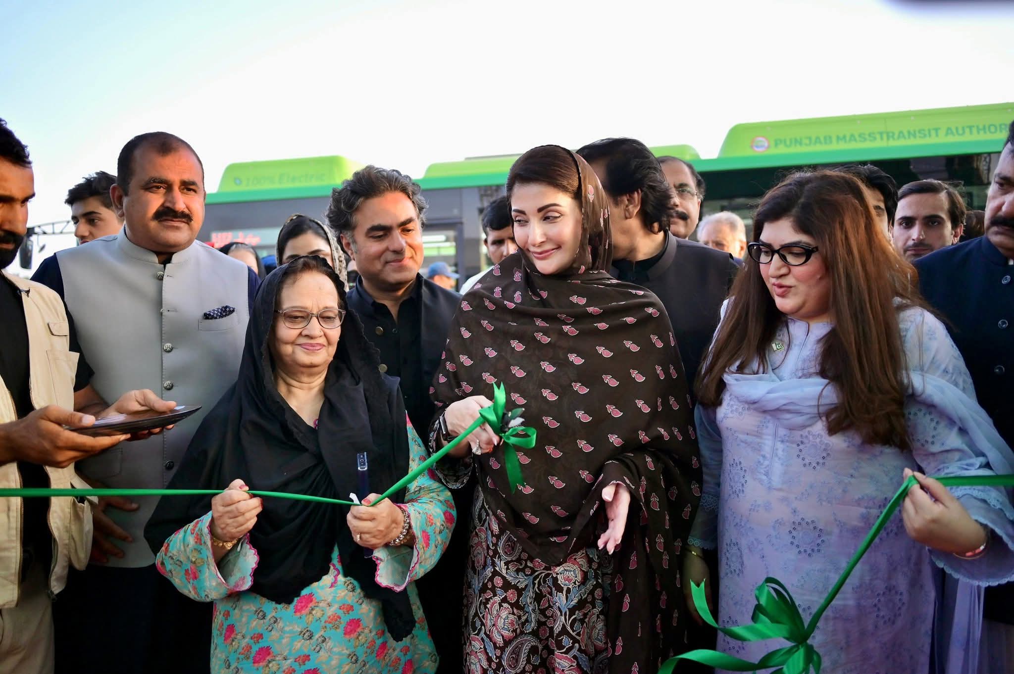 وزیر اعلیٰ پنجاب مریم نواز شریف نے میانوالی میں الیکٹرک بس پراجیکٹ کی افتتاحی تقریب سے خطاب میں خواتین،بزرگوں اورطلباء کیلئے بس میں فری سفر کا اعلان کیا ہے۔وزیراعلیٰ مریم نوازشریف نے کہا کہ الیکٹرک بس میں بیٹھ کر جہاں مرضی جائیں کرایہ صرف 20روپے ہوگاکیونکہ لوگ زیادہ کرایہ دیکر کر مشکل سے سفر کرتے ہیں۔الیکٹرک بس فری ہونے کی وجہ سے ماحول دوست ہوگی۔میانوالی کی مضافات سے کام پر جانیوالے لوگ کل سے الیکٹرک بس میں سفر کریں گے۔الیکٹرک بس میں خواتین کیلئے الگ کمپارٹمنٹ ہے، جہاں نگرانی کیلئے کیمرے بھی موجود ہیں۔میانوالی کے لوگوں نے ایک شخص کو اقتدار کی سب سے بڑی کرسی پر بٹھایالیکن اس نے کچھ نہیں کیا۔آج میانوالی میں نوازشریف کی بیٹی عوام کیلئے الیکٹرک بس لائی ہے۔وزیراعلیٰ پنجاب ہونے کے ناطے عوام کے جان و مال کی حفاظت اورسہولت میرا فرض ہے۔پنجاب کیلئے 1500الیکٹر ک بسیں آرہی ہیں،200الیکٹر ک بسیں پہنچ چکی ہیں۔الیکٹرک بس کا آغاز سب سے پہلے میانوالی سے کیاہے۔ووٹ دیں یا نہ دیں،ہم خدمت کرتے رہیں گے۔لوگ حیران ہیں کہ میانوالی سے الیکٹرک بس کا آغاز کیوں کیا؟یورپ میں شاندار بسیں دیکھ کر میرا بھی دل چاہتا ہے کہ ہمارے پاس ایسی ٹرانسپورٹ ہو۔میانوالی میں عوام کا جوش و خروش اورجذبہ میرے لئے حیران کن ہے۔لوگ تقریب کیلئے کئی کئی گھنٹے پہلے آکر بیٹھ گئے۔