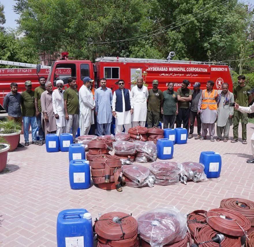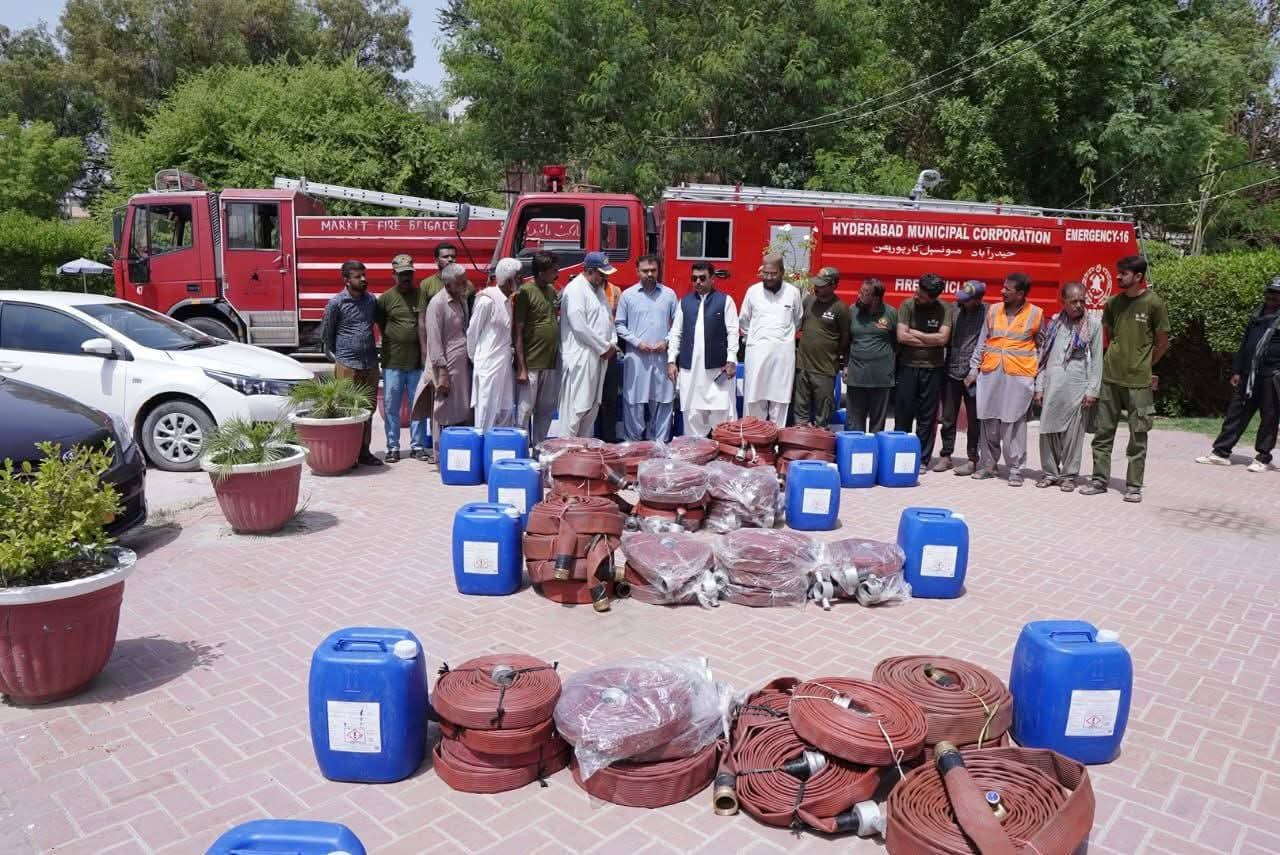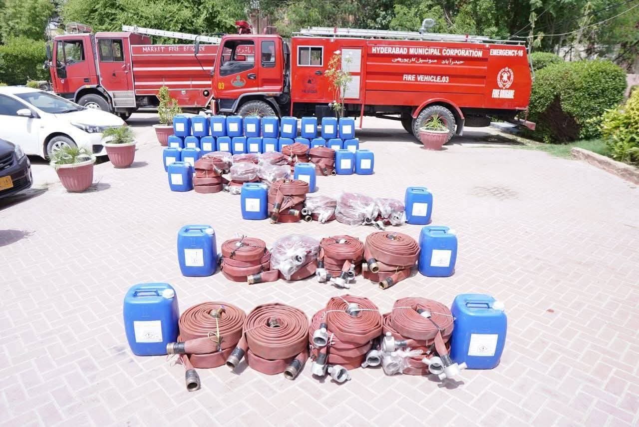 دیئے جانے والے سامان میں ڈھائی انچ ڈایا کا ڈیورا انگلینڈ برانڈ کی 2000فٹ لائنیں۔ڈیڑھ انچ ڈایا کی ڈیورا انگلینڈ برانڈ کا 6000فٹ لائنیں۔مارک جرمن کاAFFF لیکوڈ فوم کے 25 لیٹر کے 40 عدد کین کل 1000 لیٹر فوم شامل ہے ۔اس موقع پر اپنے خیالات کا اظہار کرتے ہوئے میئر حیدرآباد کاشف علی شورو نے کہا کہ فائر فائٹر ز معاشرہ کے وہ بہادر اور جانباز ہیں جو اپنی جان کی پرواہ کئے بغیر دوسروں کی زندگیاں بچانے کے لئے آگ کے دریا میں کود جاتے ہیں۔انہوں نے کہا کہ شعبہ فائر کو جن مسائل کا سامنا ہے ہمیں ان کا پوری طرح ادراک ہے،اور ہم اپنے ادارے کو بہتر سے بہتر بنانے اور فائر فائٹنگ کے شعبے کو جد ید تقاضوں کے مطابق ہم آہنگ کرنے کا عزم رکھتے ہیں۔اس سلسلے میں اپنی تمام تر توانائی بروئے کار لا رہے ہیں اور اس سے قبل ہم نے فائر فائٹنگ وہیکل کی مرمت کاکام انجام دیا ہے۔ اور آج یہ آگ بجھانے سے متعلق کے سامان بھی ہمارے اسی عزم کی کڑی ہے اور انشاء اللہ آئندہ بھی ہم اپنے فائر سیکشن کو مزید فعال و بہتر بنانے کیلئے اپنی کاوشیں جاری رکھیں گے۔