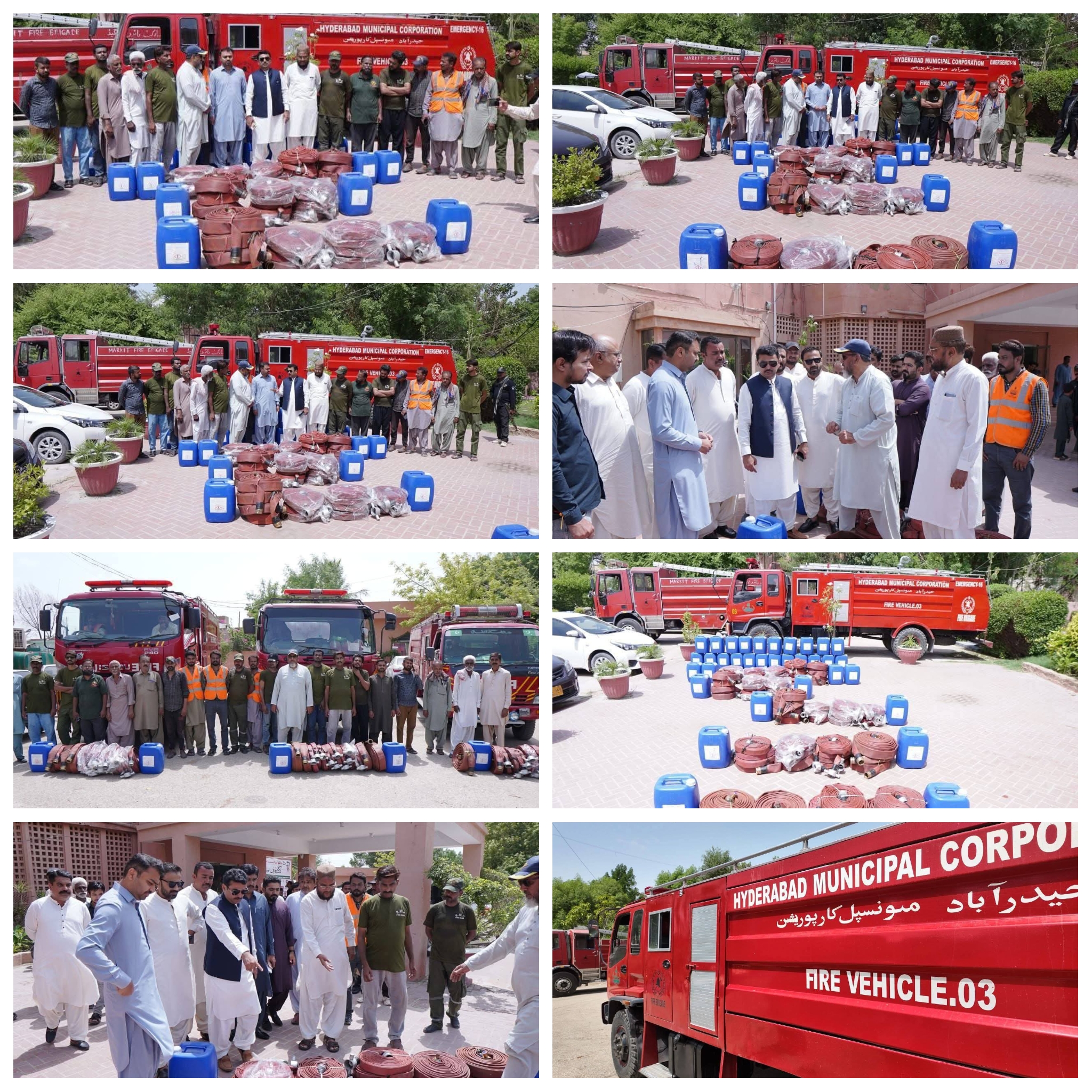 میئر سیکریٹریٹ سوک سینٹر میں شعبہ فائر بر یگیڈ کو آگ بجھانے کے سامان کی تقسیم کے سلسلے میں تقریب کا انعقاد کیا گیا۔تقریب میں میونسپل کمشنر ظہور احمد لکھن ،چیف فائر آفسیر شہاب اکرام اور بلدیہ اعلیٰ کے افسران اور شعبہ فائر کے تمام فائر اسٹیشنز کے فائر فائٹرز کثیر تعداد میں شریک تھے۔تقریب میں میئر حیدرآباد کاشف علی شورو اور میونسپل کمشنر ظہور احمد لکھن نے چیف فائر آفیسر اور فائر اسٹاف کو آگ بجھانے کا سامان ہینڈ اوور کیا