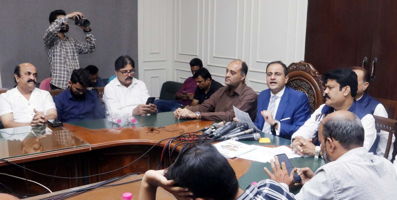 اس معاملے پر ہم تین نومبر کو کیس کی پیروی کے لئے جائیں گے۔کراچی شہر میں بلا تفریق ترقیاتی کام جاری ہے تاہم ترقی کے مخالف عناصر کی غلط بیانی اور منافقت سے تنگ آ گیا ہوں،اللہ پاک ہم سب کو توفیق دے کہ اس شہر کو منافقت سے پاک کریں۔ اس موقع پر ڈپٹی میئر کراچی سلمان عبداللہ مراد، سٹی کونسل میں پارلیمانی لیڈر کرم اللہ وقاصی، ڈپٹی پارلیمانی لیڈر دل محمد، جمن دروان اور دیگر منتخب نمائندے بھی موجود تھے۔ میئر کراچی بیرسٹر مرتضیٰ وہاب نے کہاکہ ایم یو سی ٹی 2008 میں لگا، ماضی میں ایم یو سی ٹی کی مد میں ساڑھے پندرہ کروڑ روپے کے ایم سی کے اکاؤنٹ میں آتے تھے،ہم نے صنعتوں اور مارکیٹوں کا ٹیکس کم کر کے چار سو اور کم سے کم ٹیکس بیس روپے رکھ دیا تھاجس کے نتیجے میں ٹیکس کلیکشن کئی گنا اضافہ ہوا۔ گزشتہ اگست میں اس مد میں 35 کروڑ روپے جمع ہوئے ہیں، یہ رقم شفاف انداز میں شہر کے گلی محلوں کو ٹھیک کرنے اور دیگر بہتری کے کاموں پر خرچ ہورہی ہے۔تجارت سے تعلق رکھنے والے کچھ دوستوں سے پوچھتا ہوں کہ کیا ایف بی آر پوچھ کر ٹیکس بڑھاتی ہے،میں نے پانچ ہزار سے کم کرکے چار سو کا ٹیکس کیا ان سے پوچھ کرمقرر کیا تھا،ہر سال فائر بریگیڈ کے محکمے پر کے ایم سی دو ارب خرچ کرتی ہے،760 آگ لگنے کے واقعات گزشتہ سال صنعتی علاقوں اور کمرشل مارکیٹوں میں ہوئے،477 گھروں میں آتشزدگی کے واقعات اور 402 چھوٹی آگ لگنے کے واقعات گزشتہ برس رونما ہوئے، 8 کروڑ 80 لاکھ بجلی کا بل کے ایم سی نے خود ادا کیا پہلے یہ بل سندھ حکومت دیتی تھی،میں لوگوں کو حقائق بتانا چاہتا ہوں، ہم نے بتایا 27 ارب جماعت اسلامی کے 9 ٹاؤن کو دیئے گئے،14 ارب روپے ٹاؤن نے روڈ کٹنگ کی مد میں لئے مگرایک سال ہوگیا ان پیسوں سے سڑکوں کی مرمت شروع نہ ہو سکی،سندھ حکومت کی جانب سے جماعت اسلامی کو پانچ اعشاریہ سات ارب روپے دیے گئے ہیں 45 اسکیموں کے لئے مگرکوئی کام شروع نہیں ہوا،وقت آگیا ان کا احتساب کیا جائے گااور ان کے نکمے پن اور منافقت سے لیاقت آباد، ناظم آباد اور نیو کراچی والوں کو آزاد کروائیں گے،ان کے چندے اور انہیں ملنے والے پیسے کا حساب ہونا چاہئے، انہیں یہ اجازت نہیں دی جاسکتی کہ عدالت میں جاکر اپنی معصومیت اور مظلومیت کا کارڈ پیش کرتے رہیں۔ میئر کراچی نے کہاکہ کراچی شہر میں وفاقی حکومت چاہتی ہے بینظیر انکم سپورٹ پروگرام بند ہو جائے،حافظ صاحب بینظیر انکم سپورٹ پروگرام سے متعلق آپ کو ایک بار پھر نظر ثانی کرنی چاہئے،مرتضیٰ وہاب اور سلمان عبداللہ مراد کا گھر بے نظیر انکم سپورٹ پروگرام سے نہیں چلتا،خدارا اپنے اس بغض سے غریبوں کا بھلا ہونے سے نہ روکیں، سیاسی پوائنٹ اسکورنگ میں ایسے فلاحی پروگراموں کو ہدف بنائیں گے تو اس کانقصان کراچی کے عوام کو ہوگا، انہوں نے کراچی میں جاری ترقیاتی کاموں کے حوالے سے کہاکہ میں وزیر اعظم سے مطالبہ کرتا ہوں کراچی شہر میں کام کریں آپ کی مدد کرینگے،بڑے پیمانے کا کام کے ایم سی کے ذریعے ہو چھوٹے پیمانے کا کام ڈسٹرکٹ لیول سے ہو، انہو ں نے کہاکہ بی آر ٹی والوں کی جانب سے خط ملنے پر ہمارے چیف انجینئر نے جوابی خط لکھا،2017 سے 2025 میں آگئے ہیں اور چاہتے ہیں میئر کراچی سوال بھی نہ پوچھے، انہوں نے کہاکہ ہماری 106 سڑکوں کی بحالی پر کام شروع ہو گیا ہے،60 روز کا ٹارگٹ رکھا ہے ہم نے تاکہ شہر کی سڑکوں کو بہتر کیا جائے،جناح ایونیو کو بنانے کے لیے دس کروڑ روپے مختص کیے ہیں،اختیار یا وسائل ایشو نہیں ہیں وقت آ گیا ہے لوگوں کو ریلیف دینا ہے،ہم چاہتے ہیں معمولات ٹھیک ہوں اس شہر میں بہتری آئے، میں امید کرتا ہوں کہ کل جماعت اسلامی اپنی پریس کانفرنس میں پانچ اعشاریہ سات ارب روپے کا حساب دے گی۔ انہوں نے سعودی عرب کے قومی دن پر انہیں مبارکباد پیش کرتے ہوئے کہاکہ سعودی عرب نے ہمیشہ پاکستان کا ساتھ دیا ہے،شہزادہ شاہ محمد سلمان کے شکرگزار ہیں، ہم نے سعودیہ کے قومی دن کے موقع پر اپنی عمارتوں پر سعودی پرچم لہرائے ہیں۔