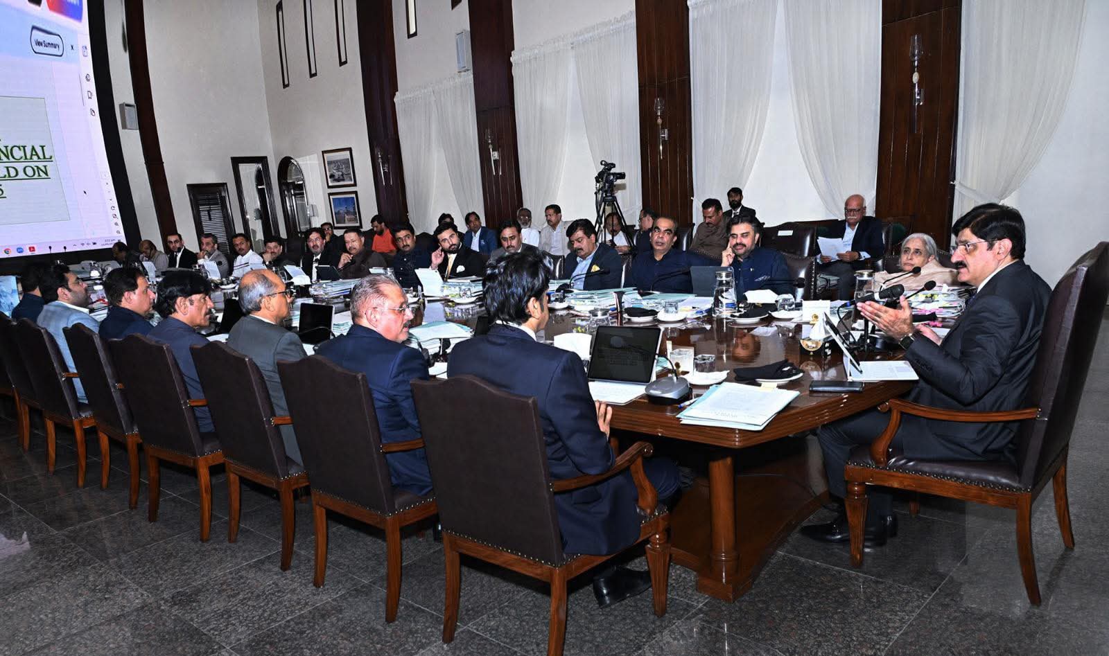 وزیر اعلیٰ سندھ سید مراد علی شاہ کی زیر صدارت کابینہ کے ایک اہم اجلاس میں صوبے کی سیلابی صورتحال کا جائزہ لیا گیا۔ وزیر اعلیٰ نے محکموں کی مربوط کاوشوں کو سراہا جبکہ کابینہ نے مالیاتی نظم و نسق، اصلاحی مراکز، عدالتی عمل، ثقافتی فروغ، زرعی معائنہ، ٹیکسیشن اصلاحات اور سڑکوں کی حفاظت کے حوالے سے بڑی اصلاحات کی منظوری دی۔اجلاس وزیر اعلیٰ ہاؤس میں منعقد ہوا جس میں صوبائی وزراء، مشیران، معاونین خصوصی، چیف سیکریٹری آصف حیدر شاہ، پرنسپل سیکریٹری آغا واصف، چیئرمین منصوبہ بندی و ترقی نجم شاہ اور دیگر اعلیٰ افسران شریک ہوئے۔وزیر اعلیٰ نے اجلاس کے آغاز میں سیلابی صورتحال پر بریفنگ دیتے ہوئے بتایا کہ سندھ گزشتہ چھ ہفتوں سے خطرے میں رہا۔ پہلی لہر کے دوران 24 اگست کو گڈو بیراج پر 5 لاکھ 34 ہزار کیوسک پانی آیا جس کے بعد سکھر پر 4 لاکھ 81 ہزار اور کوٹری پر 2 لاکھ 73 ہزار کیوسک پانی ریکارڈ ہوا۔ دوسری لہر 15 ستمبر کو 6 لاکھ 35 ہزار کیوسک پر پہنچی۔ پیش گوئی کے مطابق گیارہ لاکھ کیوسک تک پانی آنے کا امکان تھا لیکن بروقت اقدامات سے صورتحال قابو میں رہی۔528 منصوبہ بند ریلیف کیمپوں میں سے صرف 17 فعال کیے گئے جنہوں نے ایک لاکھ 92 ہزار 122 افراد کو پناہ دی۔ محکمہ صحت نے 145 میڈیکل کیمپوں میں ایک لاکھ 34 ہزار 240 مریضوں کا علاج کیا جبکہ محکمہ لائیو اسٹاک نے 16 لاکھ مویشیوں کو ویکسین فراہم کی۔ وزیر اعلیٰ نے وزیر آبپاشی جام خان شورو، سیکریٹری آبپاشی ظریف کھیڑو، وزراء، اراکین صوبائی اسمبلی اور ضلعی انتظامیہ کی میدان میں موجودگی اور اجتماعی کوششوں کو سراہا۔ انہوں نے خبردار کیا کہ ماحولیاتی تبدیلی کے باعث آئندہ مون سون پہلے سے زیادہ شدید ہو سکتے ہیں اس لیے ’’ماحولیاتی حقائق‘‘ کے مطابق تیاری ناگزیر ہے۔کابینہ نے سندھ فنانشل رولز 2023 اور ڈیلیگیشن آف فنانشل پاورز رولز میں ترامیم کی منظوری دی۔ ان ترامیم کے تحت بقایاجات کے دعوؤں کی جانچ اب متعلقہ محکماتی کمیٹیاں کریں گی جس سے تاخیر کم ہوگی تاہم 10 سال سے زائد پرانے دعوؤں کی منظوری اب بھی محکمہ خزانہ ہی دے گا۔