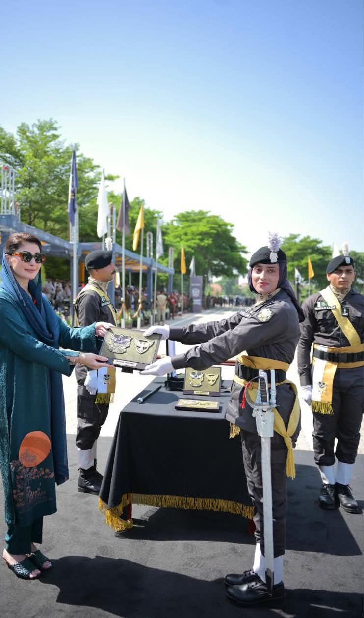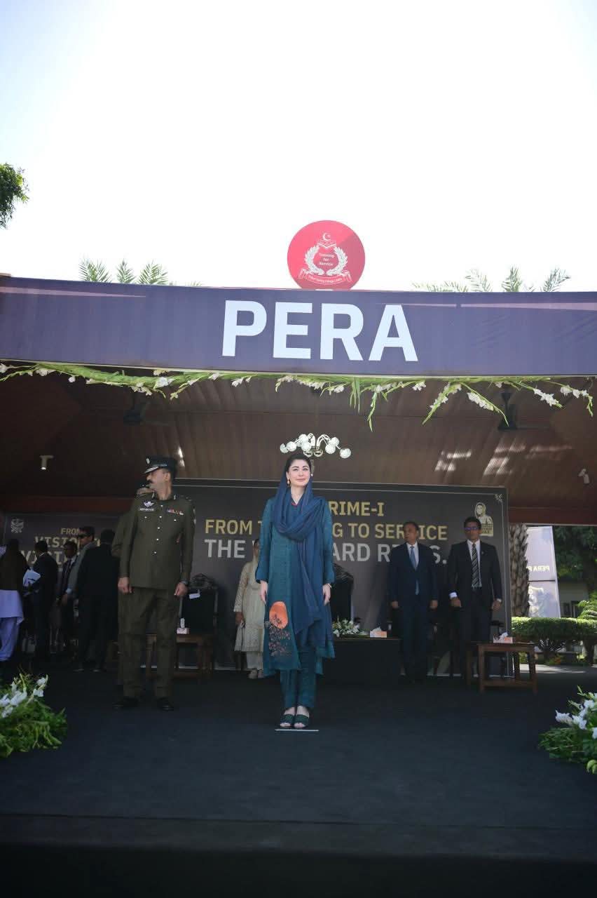 وزیر اعلیٰ مریم نواز شریف نے پنجاب انفورسمنٹ اینڈ ریگولیٹری اتھارٹی کی پاسنگ آؤٹ پریڈ میں شرکت کی۔ پیرافورس کے انفورسمنٹ اور انوسٹی گیشن آفیسر کی ٹریننگ مکمل ہونے پر پاسنگ آؤٹ کی پروقار تقریب منعقد کی گئی۔ تقریب میں وزراء، ارکان اسمبلی،افسران، جوان اور انکے اہل خانہ نے بھی شرکت کی۔ وزیر اعلیٰ مریم نواز شریف نے پولیس ٹریننگ کالج چوہنگ میں پیرا فورس کا پاسنگ آؤٹ میں جنرل سلامی لی اور جیپ پر سوار ہوکر پریڈ کا معائنہ کیا۔ وزیراعلیٰ مریم نواز شریف نے پیرا فورس کے جوانوں سے”انصاف، شفافیت اور دیانتداری“پر حلف لیا۔ وزیر اعلیٰ مریم نواز شریف نے پیرا ٹریننگ کے دوران نمایاں کارکردگی پر میڈل اور اعزازات تقسیم کیے۔ رابعہ عارف، وحید اعظم،عبداللہ صفدر،سلمان حمید، رانا آفاق احمد اور دیگر کو میڈل اور اعزازات دئیے گئے۔ ڈی جی پیرا کیپٹن(ر) فرخ عتیق نے وزیر اعلیٰ مریم نواز شریف کی آمد کا خیر مقدم کیا۔ پاسنگ آؤٹ کی تقریب میں پیرا فورس نے پریڈ مارچ پاسٹ کیا۔