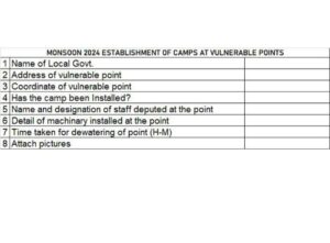 مون سون 2024 کے پیش نظر کمزور مقامات / نشیبی علاقوں میں کیمپ لگانے کے لیے براہ کرم منسلک نمونہ تلاش کریں۔