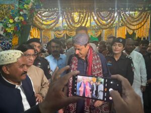 Dargah Manager Punooh Khan presented Topi and Ajrak to Mayor Karachi Barrister Murtaza Wahab.