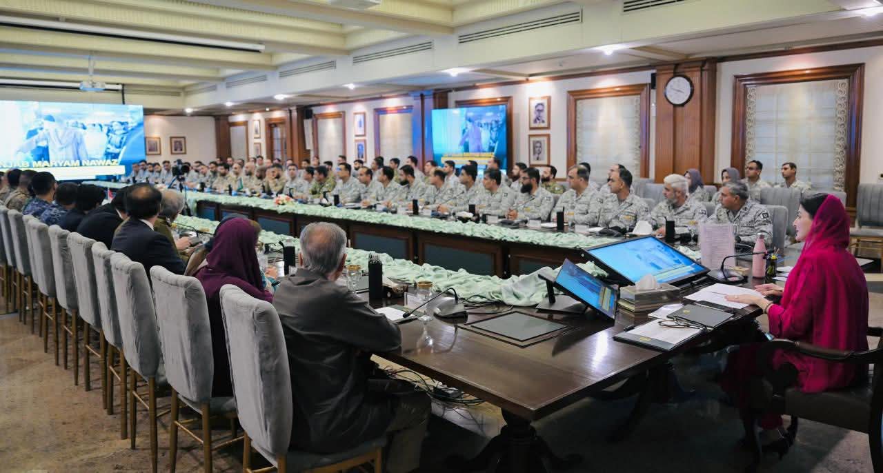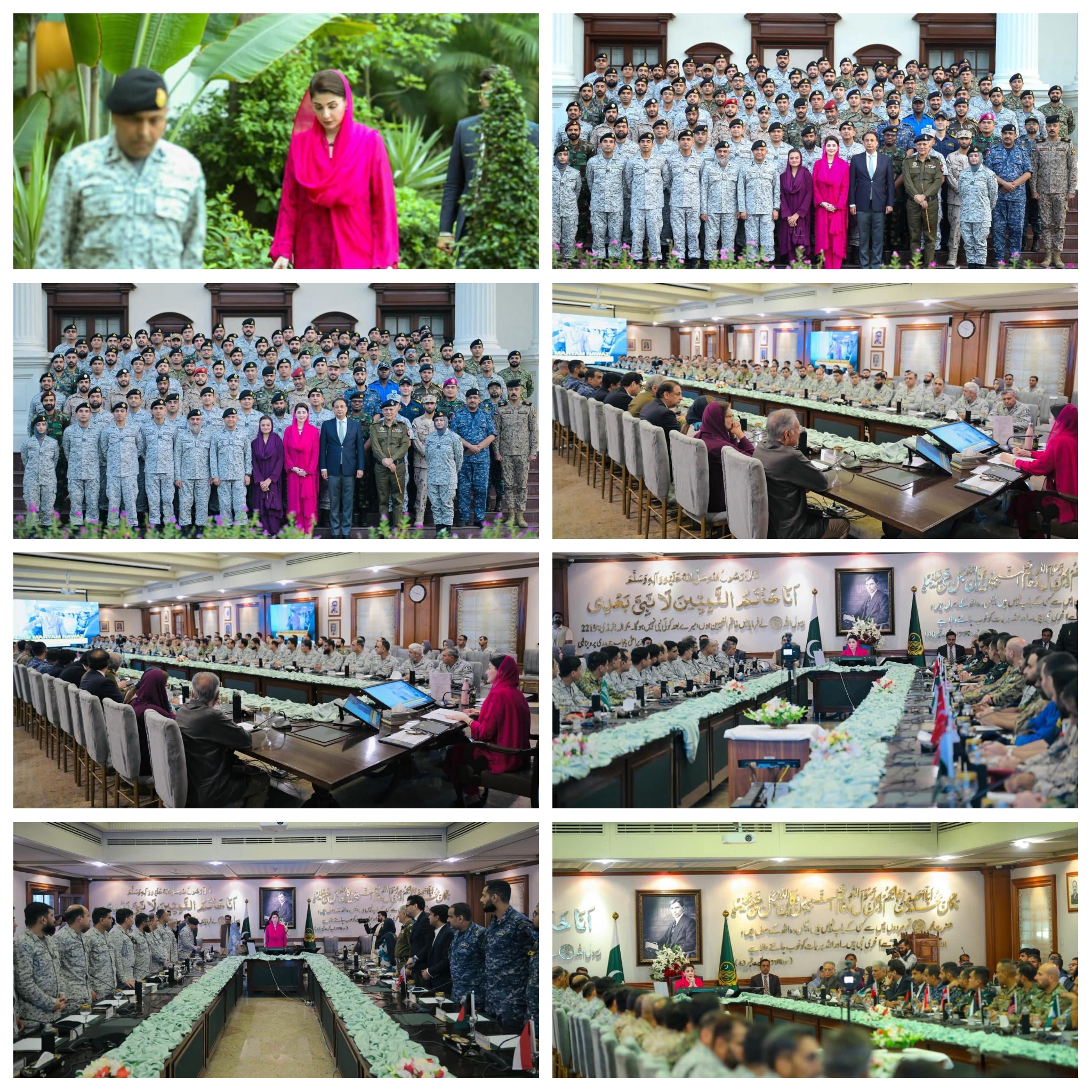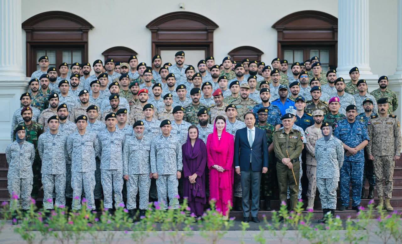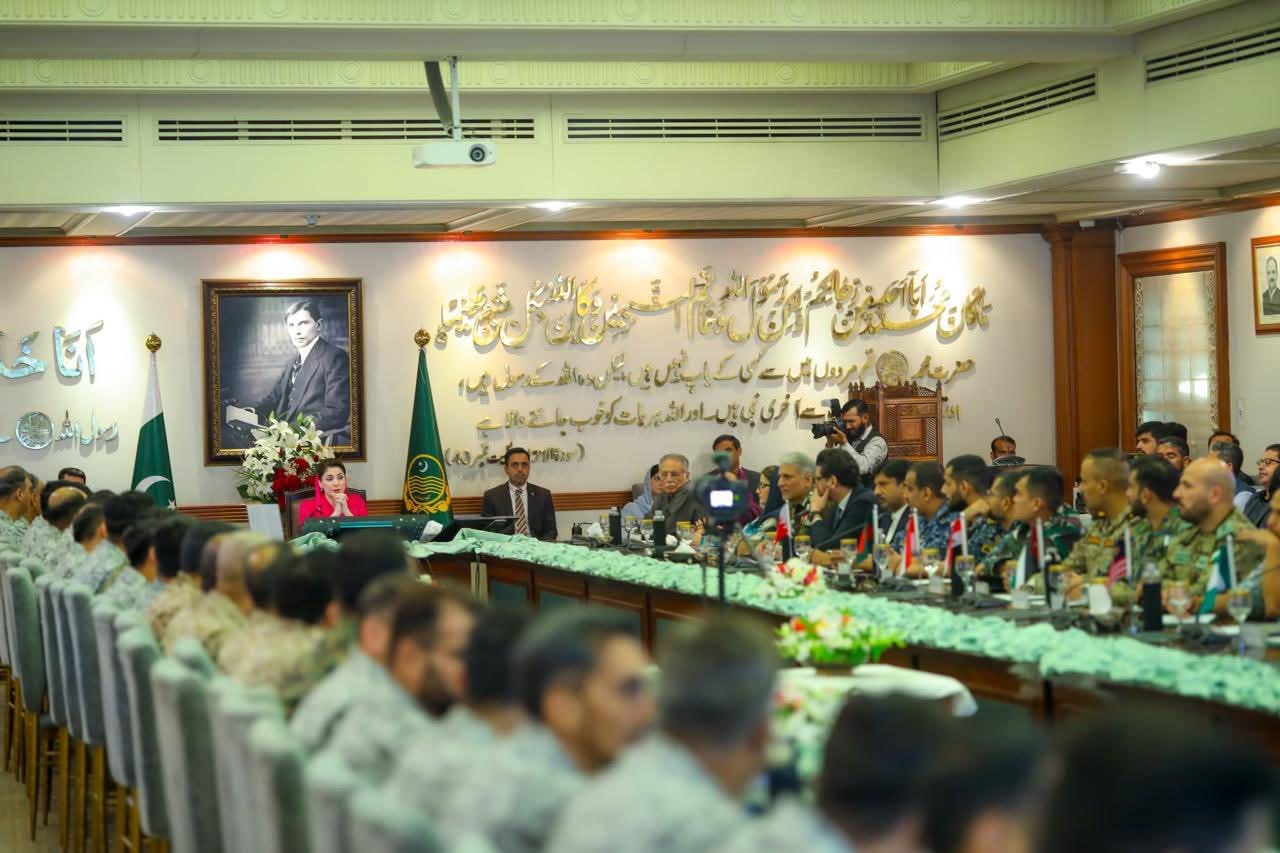 وزیراعلیٰ پنجاب مریم نواز شریف سے پاکستان نیوی وار کالج کے 55 ویں اسٹاف کورس کے شرکا نے ملاقات کی-وفد میں پاکستان کی تینوں مسلح افواج کے افسران اور 15 دوست ممالک کی مسلح افواج کے افسران شریک تھے -پاکستانی نیوی وار کالج کے وفد کی قیادت ریئر ایڈمرل سہیل احمد عزمی نے کی -وزیراعلیٰ مریم نواز شریف نے پاکستان نیوی وار کالج کے وفد کی آمد کا خیر مقدم کیا-وزیراعلیٰ مریم نوازشریف نے فلسطینیوں کیلئے حمایت کے اعلان کا اعادہ کیا-