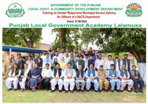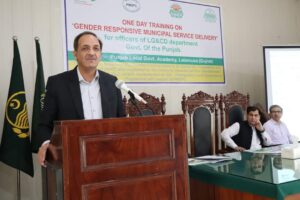 A training on Gender Responsive Municipal Service Delivery was organized on June 27-28, 2024, at the Punjab Local Government Academy in Lalamusa. Officers from the LG&CD Department attended the session. Shakeel Ahmad Mian, Secretary LG&CDD, graced the event as chief guest and addressed the participants, emphasizing the importance of such training and its impact on enhancing staff’s ability to be gender-responsive in their professional duties. Mahmood Masood Tamana, GM ID, PMDFC, also attended and discussed the objectives and benefits of the training.