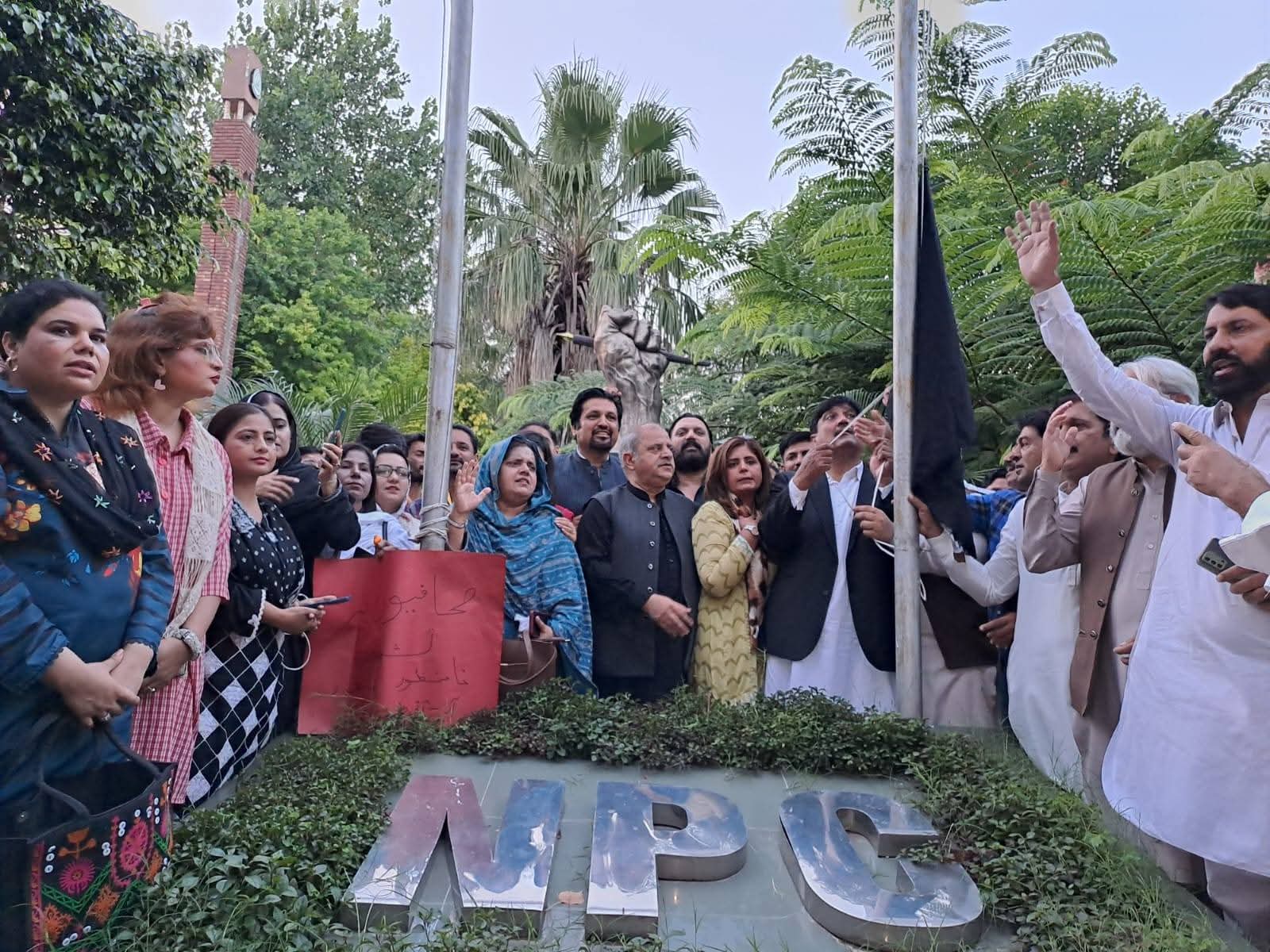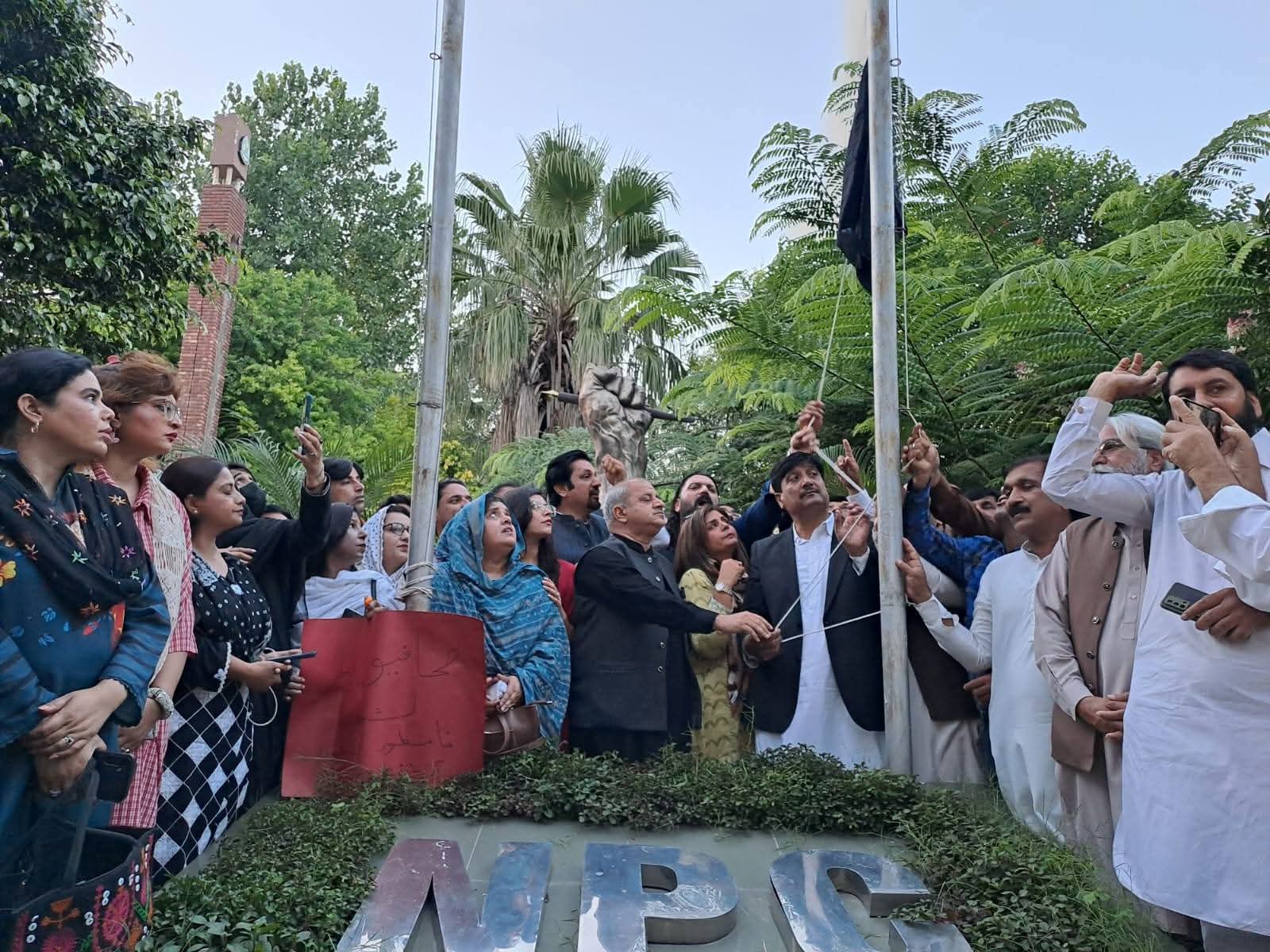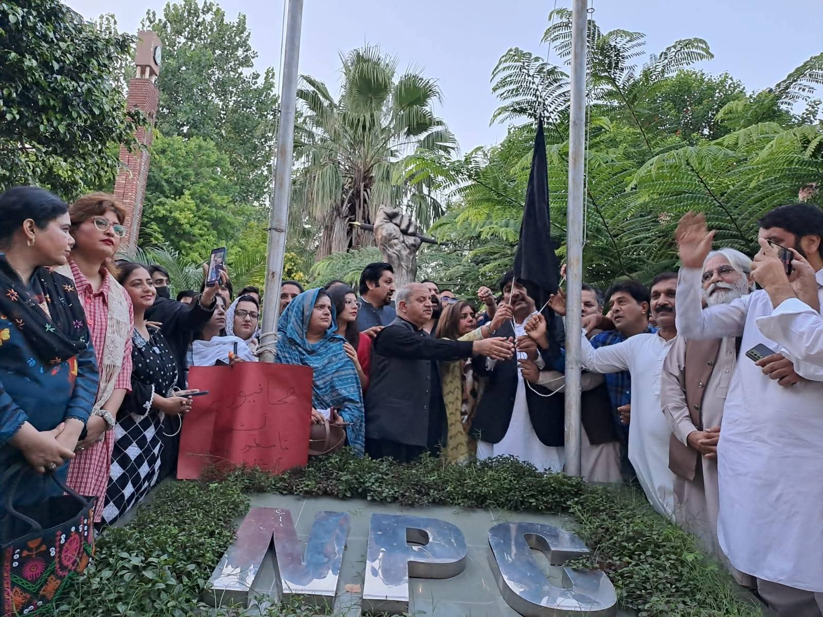 پی ایف یو جے کی کال پر راولپنڈی اسلام آباد یونین آف جرنلسٹس کے زیر اہتمام نیشنل پریس کلب اسلام آباد پر اسلام آباد پولیس کے حملے ، صحافیوں پر بہیمانہ تشدد اور این پی سی میں توڑ پھوڑ کیخلاف یوم سیاہ منایا گیا،نیشنل پریس کلب میں سیاہ پرچم لہرا گیا پریس کلب سے بلیوایریا تک احتجاجی ریلی نکالی گئی اس موقع پر جمعیت علماء اسلام کے سربراہ مولانا فضل الرحمن بھی صحافیوں سے اظہار یکجہتی کے لیے نیشنل پریس کلب پہنچ گئے، صحافیوں پر پولیس گردی کی مذمت ،صحافی پرامن لوگ ہیں پولیس نے صحافیوں کے گھر پر حملہ کیا ہے ہم صحافیوں کے شانہ بشانہ کھڑے ہیں، حتجاجی مظاہرین سے خطاب میں مقررین کا کہنا تھا کہ پریس کلب پر حملہ صحافیوں کے گھر کی چادر اور چار دیواری کا تقدس پامال کرنا ہے جس کو کسی صورت برداشت نہیں کیا جا سکتا پریس کلب پر حملہ ایک سوچ سمجھی سازش کے تحت کیا گیا ہے،نیشل پریس کلب آزادی صحافت کا سب سے بڑا مورچہ ہے پاکستان بھر کے صحافی اس حملے کے خلاف سراپا احتجاج ہیں