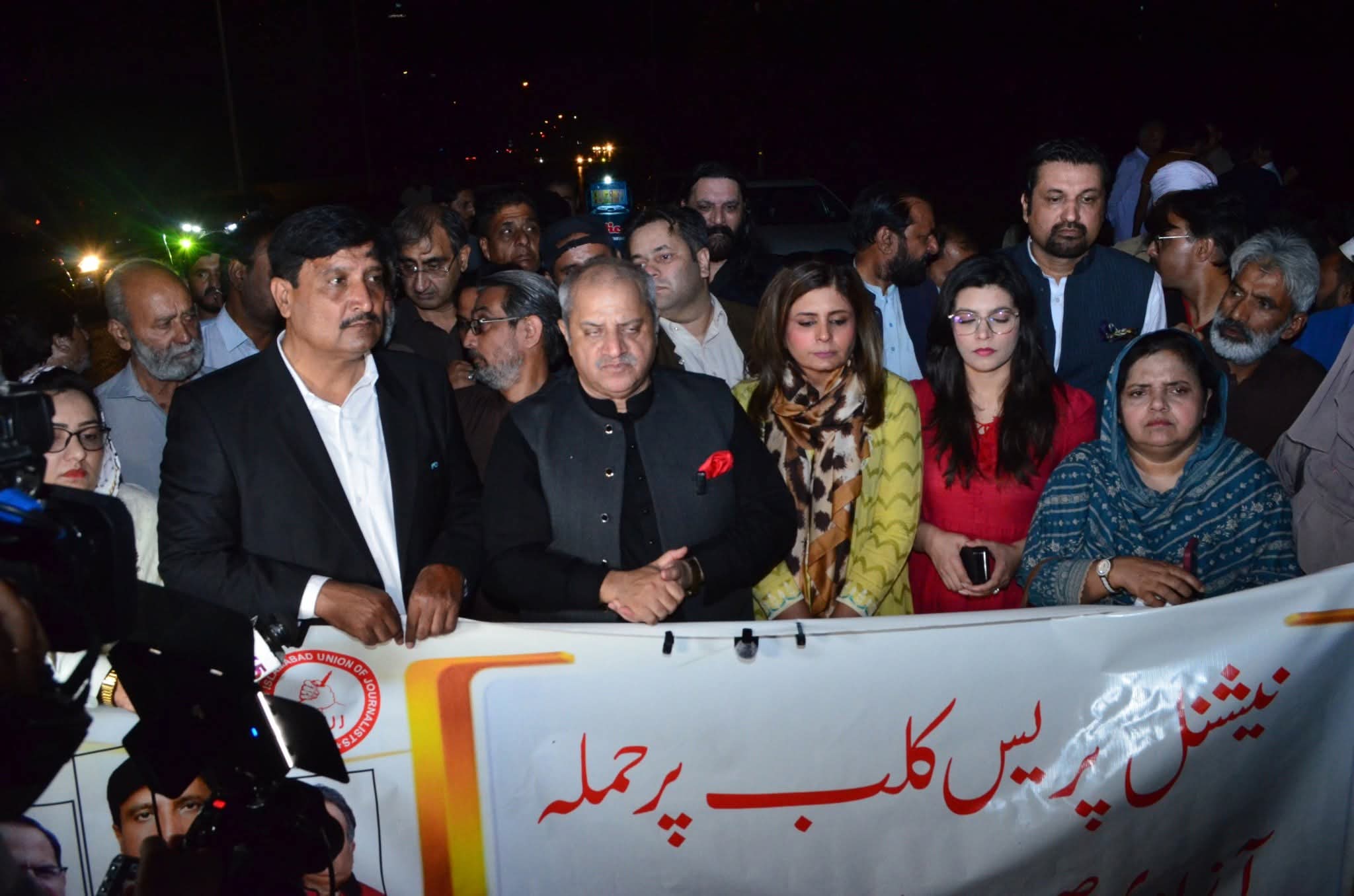 اس حملے کے خلاف صحافیوں نے نیشنل اسمبلی کی پریس گیلری سے واک آؤٹ کیا اس حوالے سے مشاورت کے بعد حکومت کے سامنے اپنے مطالبات رکھیں گے کہ اس کے بعد آئندہ کوئی کسی بھی پریس کلب کے تقدس کو پامال نہ کر سکے ان خیالات کا اظہار پی ایف یو جے کے صدر افضل بٹ ،آر آئی یو جے کے صدر طارق علی ورک، جنرل سیکرٹری آصف بشیر چوہدری ،نیشنل پریس کلب کے قائم مقام صدر احتشام الحق ، سیکرٹری نیئر علی،پی آر اے کے صدر ایم بی سومرو و دیگر نے کیاتفصیلات کے مطابق نیشنل پریس کلب اسلام آباد پر اسلام آباد پولیس کے حملے ، صحافیوں پر بہیمانہ تشدد اور این پی سی کیفے ٹیریا میں توڑ پھوڑ کیخلاف جڑواں شہوں کے صحافیوں نے یوم سیاہ منایا،نیشنل پریس کلب میں سیاہ پرچم لہرایا گیا،جڑواں شہروں کے سینکڑوں صحافیوں کی پی ایف یو جے کے صدر افضل بٹ کی قیادت میں پریس کلب سے بلیو ایریاتک احتجاجی ریلی نکالی گئی، جمعیت علماء اسلام کے سربراہ مولانا فضل الرحمٰن بھی صحافیوں سے اظہار یکجہتی کے لیے نیشنل پریس کلب پہنچ گئے، صحافیوں پر پولیس گردی کی شدید مذمت کرتے ہوئے مولانا فضل الرحمٰن کا کہنا تھا کہ پریس کلب میں صحافیوں کے ساتھ پولیس گردی کا مظاہرہ کیا گیاجس کی میں شدید الفاظ میں مذمت اور تمام صحافتی تنظیموں کے ساتھ اظہار یکجہتی کرتا ہوں ،ہر چار دیواری کا ایک تقدس ہوتا ہے، صحافی پرامن لوگ اور جمہوریت کا حصہ ہیں،پولیس نے صحافیوں کے گھر میں داخل ہوکر ان کو مارا،صحافیوں کے شانہ بشانہ کھڑے ہیں، احتجاجی مظاہرے سے خطاب کرتے ہوئے پی ایف یو جے کے صدر افضل بٹ کا کہنا تھا کہ پریس کلب پر حملہ صحافیوں کے گھروں کی چادر اور چار دیواری پر حملہ ہے،پوری صحافت کا تقدس پامال کیا گیا ہے،ملک بھر کے پریس کلبوں کے عہدیداران اور یو جیز کے صدور نے ہم سے رابطہ کیا ہے، نیشنل اسمبلی میں پی آر اے نے واک آؤٹ کیا ،تمام مکاتب فکر صحافیوں سے اظہار یکجہتی کر رہے ہیں،چاہتے ہیں پریس کلب پر ہونے والا حملہ آخری حملہ ہو،چارٹر آف ڈیمانڈ پر پی ایف یو جے میں مشاورت جاری ہےجوں ہی مشاورت مکمل ہو گی میڈیا کو آگاہ کیا جائے گا،چاہتے ہیں پریس کلبوں میں پولیس کے داخلے کے لیے ایس او پیز بنائی جائیں تاکہ آئندہ کسی بھی پریس کلب پر حملہ نہ ہو ،چارٹر آف ڈیمانڈ جلد حکومت اور عوام کے سامنے لائیں گے، راولپنڈی اسلام آباد یونین آف جرنلسٹس کے صدر طارق علی ورک نے کہا کہ نیشنل پریس کلب آزادی صحافت کا سب سے بڑا مورچہ ہے صحافی اس کو اپنا دوسرا گھر سمجھتے ہیں جس طرح سے کوئی اور ادارہ اپنے اوپر ہونے والے حملے کو برداشت نہیں کرتا اسی طرح سے ہم بھی نیشنل پریس کلب پر ہونے والے حملے کو برداشت نہیں کر سکتے پاکستان میں کبھی کسی پریس کلب کو تالا لگایا جاتا ہے اور کسی کا تقدس پامال کیا جاتا ہے اگر نیشنل پریس کلب وفاقی دارالحکومت میں محفوظ نہیں تو دور دراز کے پریس کلبوں کا کیا حال ہو اب ہمیں ایسا بند باندھنا ہو گا کہ آئندہ کسی کو جرات نہ ہو کسی پریس کلب پر حملہ کرے ،سیکرٹری آر آئی یو جےآصف بشیر چوہدری کا کہنا تھا کہ گزشتہ روز صحافیوں کے قلعے پر حملے کیا گیایہ حملہ آزادی کسی عمارت نہیں بلکہ آزادی اظہار رائے کے قلعے پر کیا گیا ایسا کبھی مارشل لا میں بھی نہیں ہوا،آج پورے ملک میں یوم سیاہ منایا جا رہا ہے،گزشتہ روز پولیس کی جانب سے صحافیوں پر دہشتگردانہ کاروائی کی گئی،پریس کلب کے قائم مقام صدر احتشام الحق نے کہا کہ پاکستان کی تاریخ نہیں کبھی بھی کسی پریس کلب کے تقدس کو پامال اس طرح سے نہیں کیا گیا۔ پریس کلب کے اندر گھس کر اس تشدد کی پوری صحافی کمیونٹی مذمت کرتی ہے اس وقت پاکستان بھر کے تمام پریس کلبوں سے مشاورت کا سلسلہ جاری ہے اور اس پر سخت ترین لائحہ عمل بنائے جائے گا تاکہ آئندہ کبھی کسی کو ایسی جرات نہ ہواین پی سی کی سیکرٹری نیئر علی نے مظاہرے سے خطاب کرتے ہوئے کہا کہ ایک جمہوری معاشرے میں آزاد صحافت ریاست کا چوتھا ستون تصور کی جاتی ہے، اور صحافیوں پر تشدد دراصل آزادیِ اظہار رائے پر حملہ ہے۔یہ افسوسناک واقعہ نہ صرف ملکی قوانین، بلکہ ا